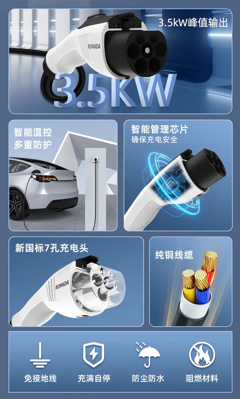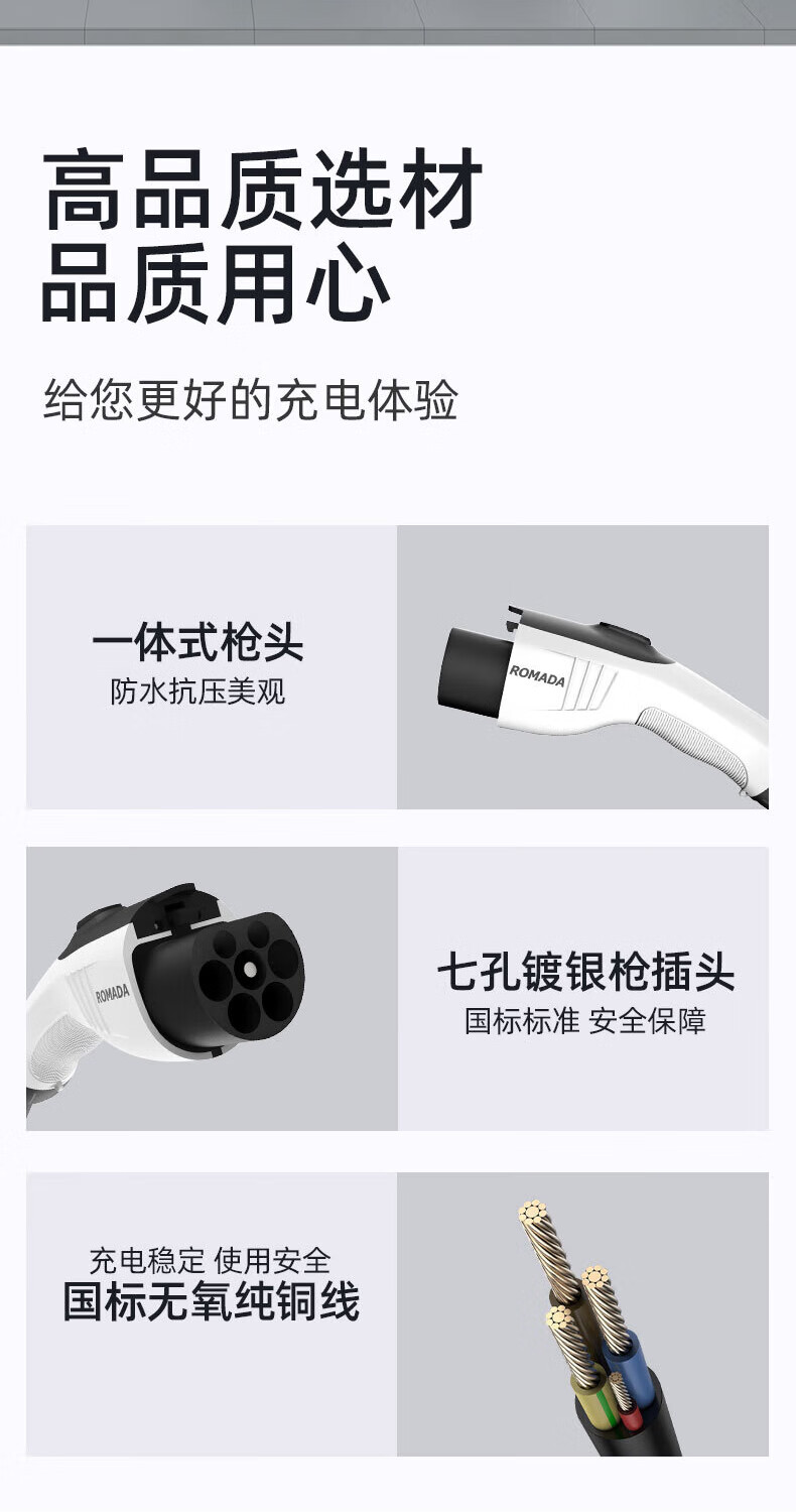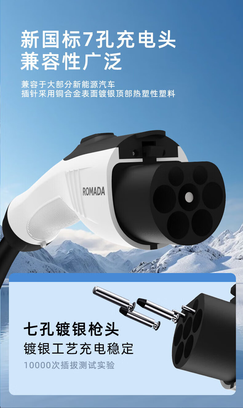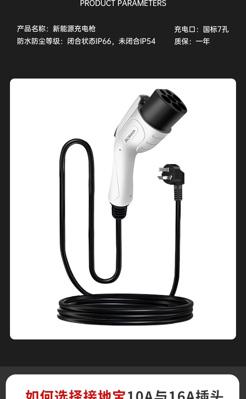ROMADA Zhiji LS6 car charging gun 3.5kw household dual-mode seven-hole charger 7KW new energy 220V electric vehicle portable grounding-free 7KW fast charging model 16A-32A 10 meters