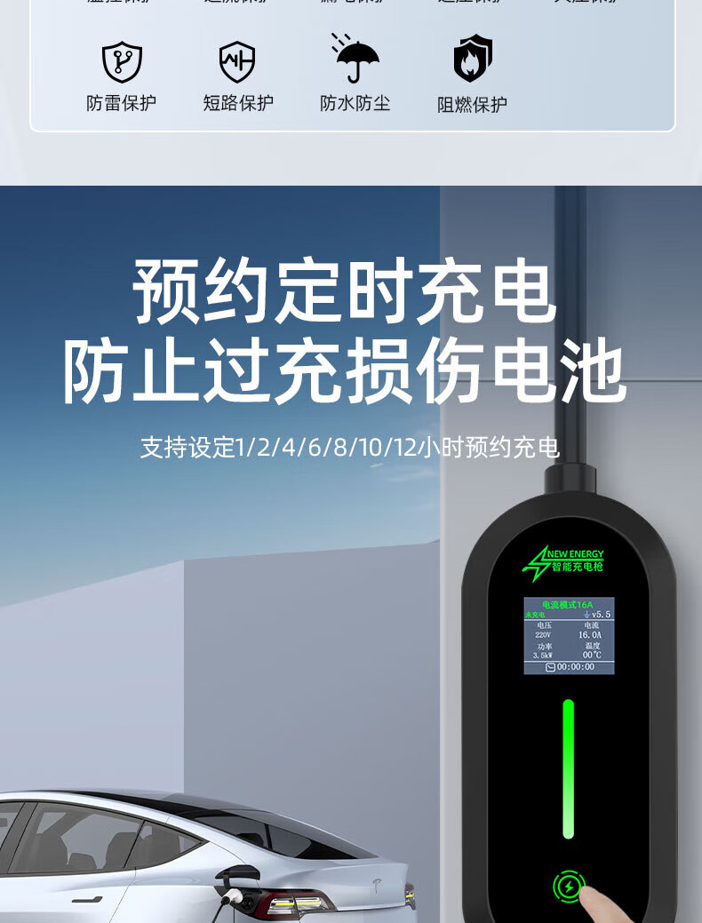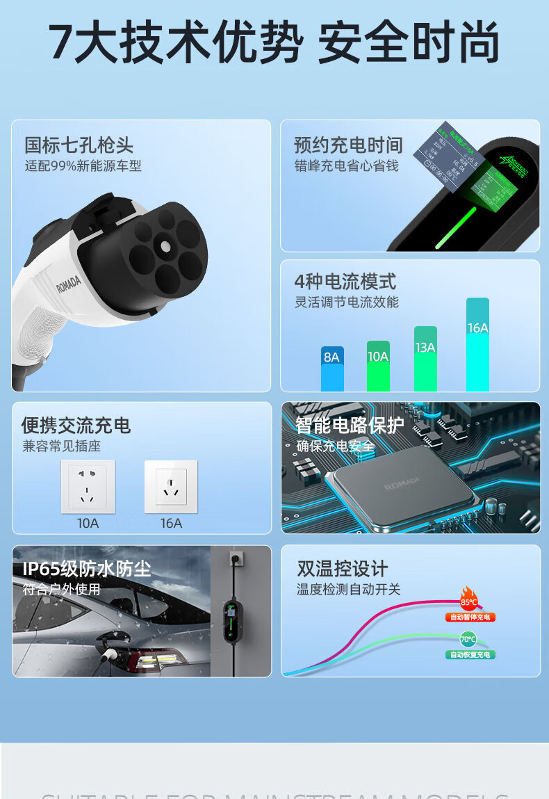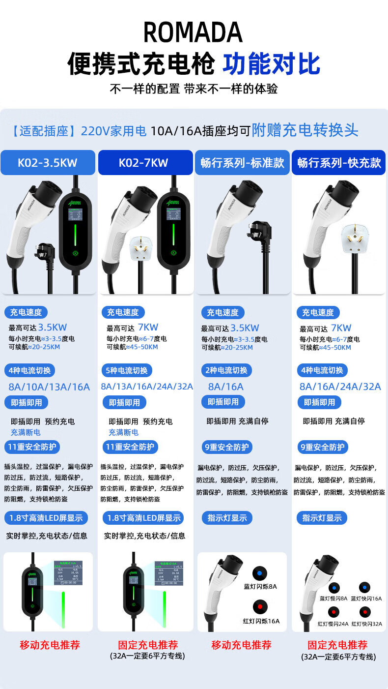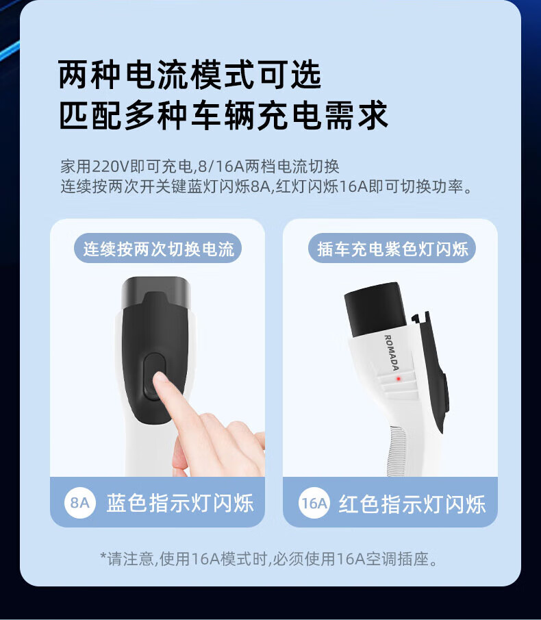 ROMADA Zhiji LS6 car charging gun 3.5kw household dual-mode seven-hole charger 7KW new energy 220V electric vehicle portable grounding-free 7KW fast charging model 16A-32A 10 meters