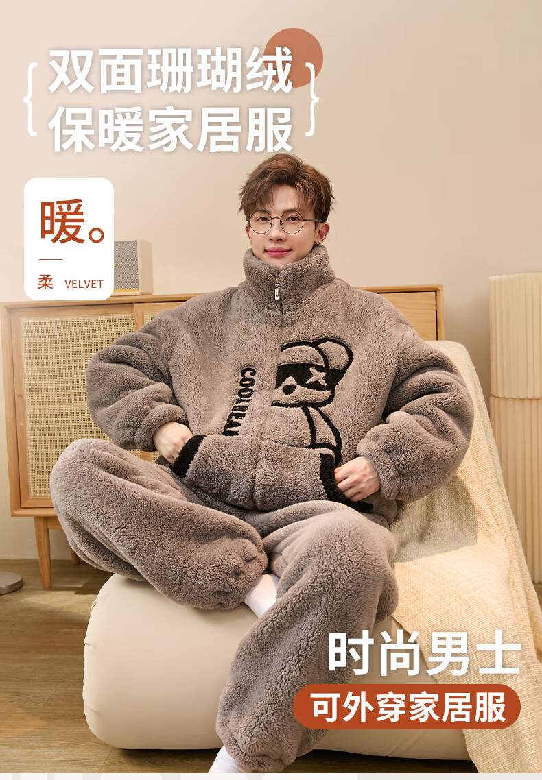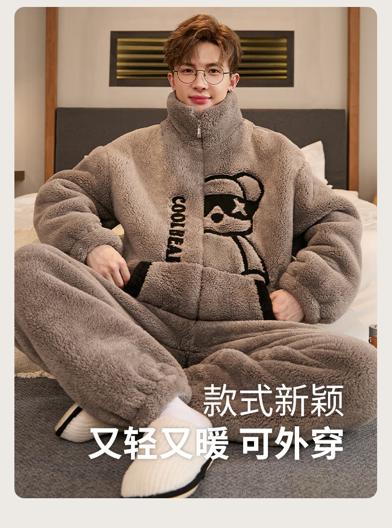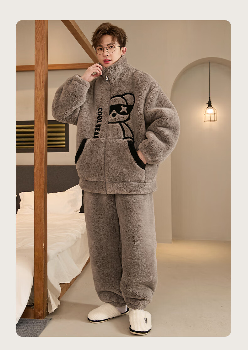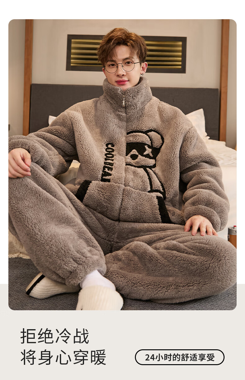Teenage Love Story Men's Pajamas Autumn and Winter Coral Velvet Winter Plus Velvet Thickening Warm Teenagers Large Size Men's Home Clothing Set 140 Crocodile XL Male Height 168-176 Weight 128-150 Jin Jin is equal to 0.5 kg