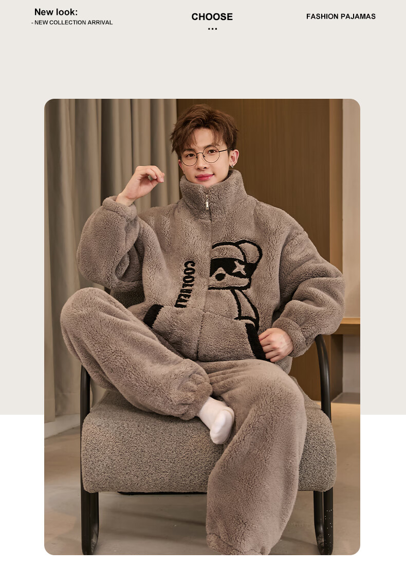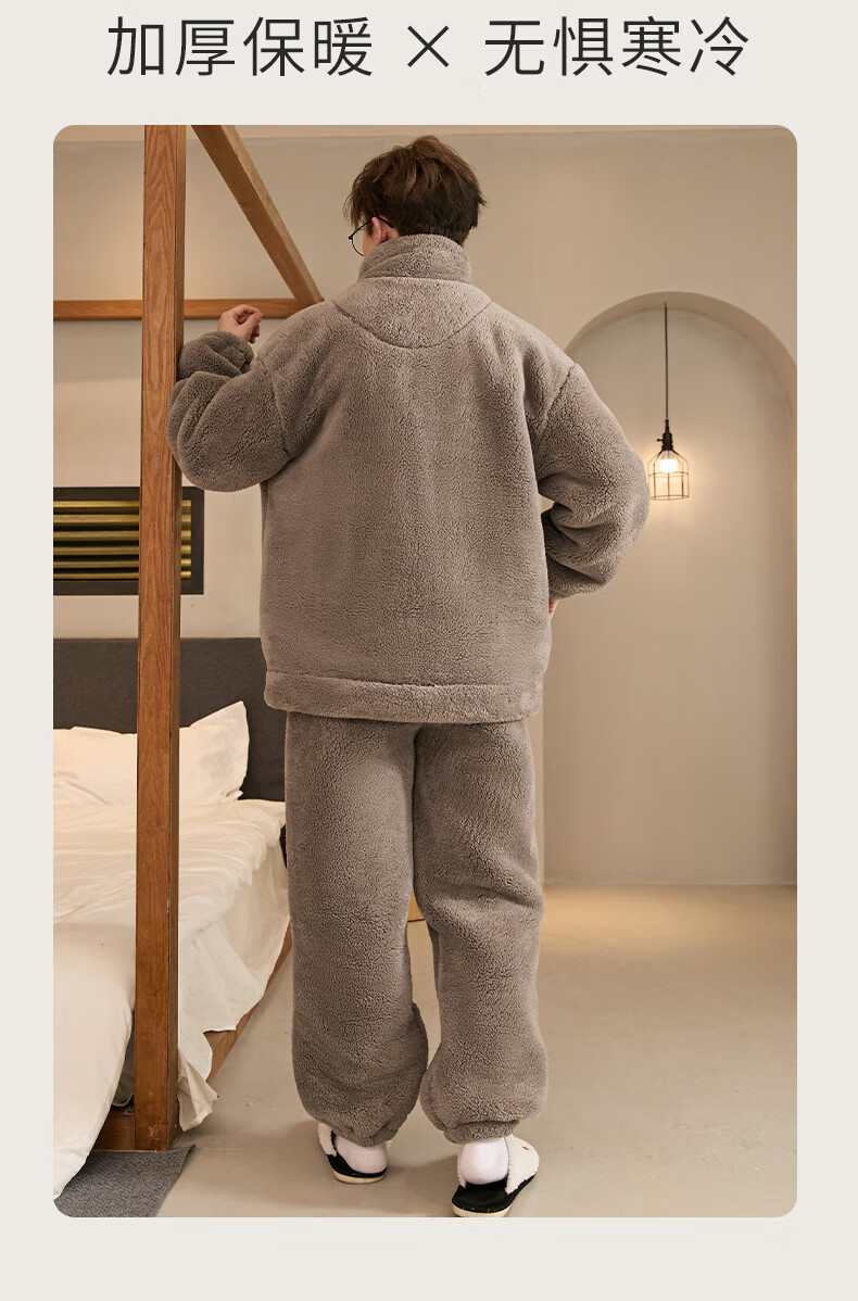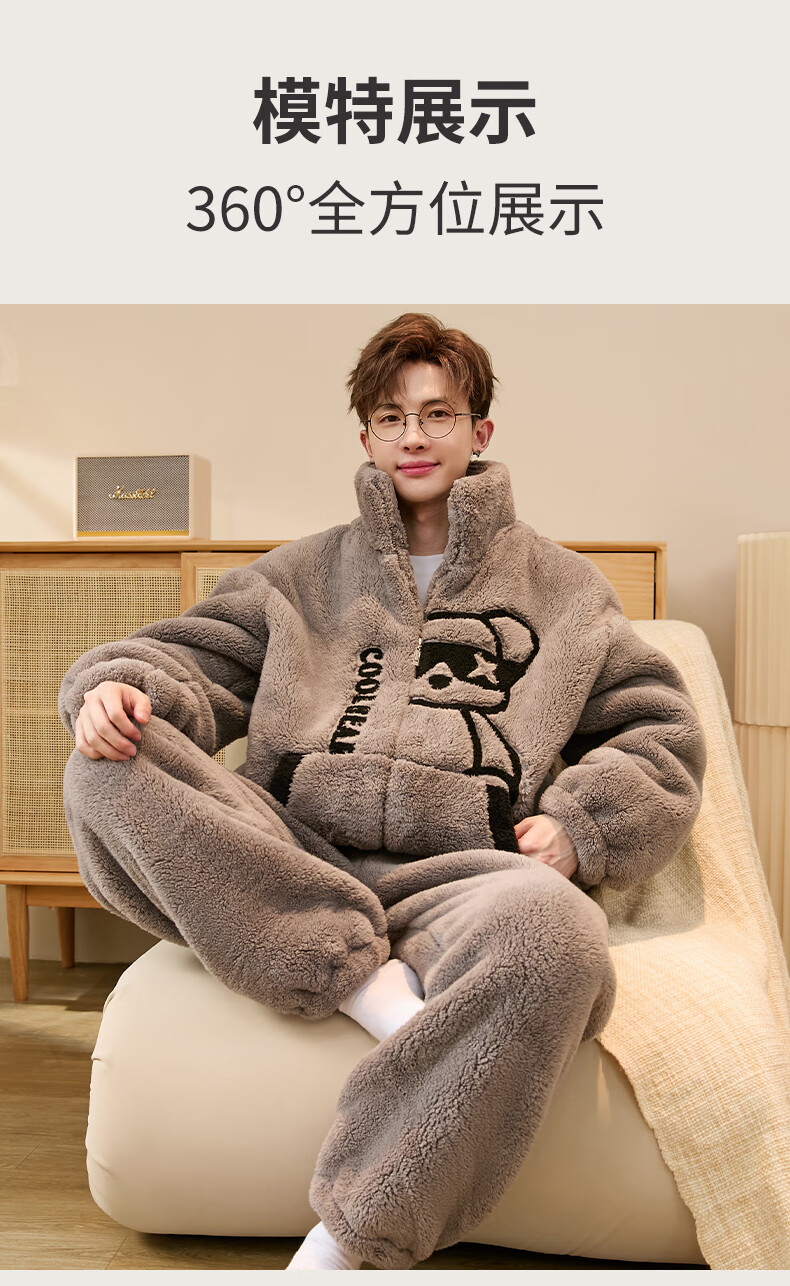 Teenage Love Story Men's Pajamas Autumn and Winter Coral Velvet Winter Plus Velvet Thickening Warm Teenagers Large Size Men's Home Clothing Set 140 Crocodile XL Male Height 168-176 Weight 128-150 Jin Jin is equal to 0.5 kg