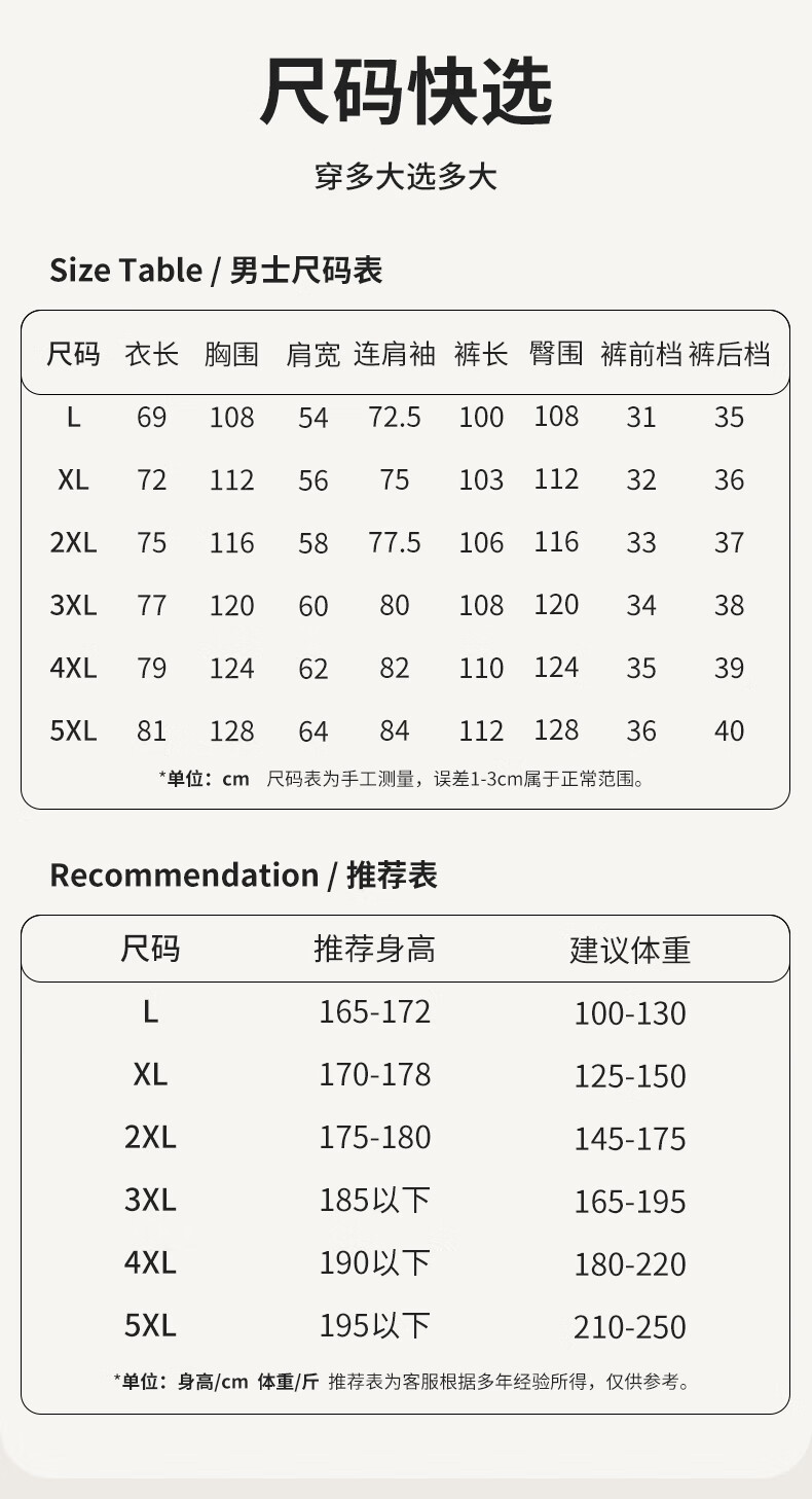 China (cm) 165 / 88-90 170 / 96-98 175 / 108-110 180 / 118-122 185 / 126-130