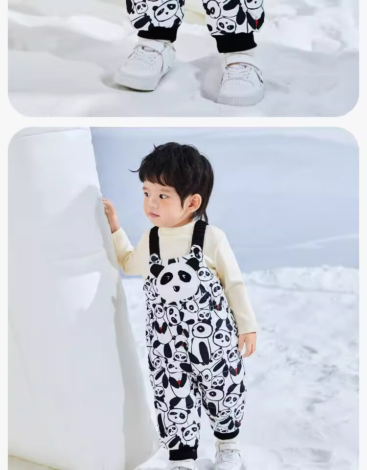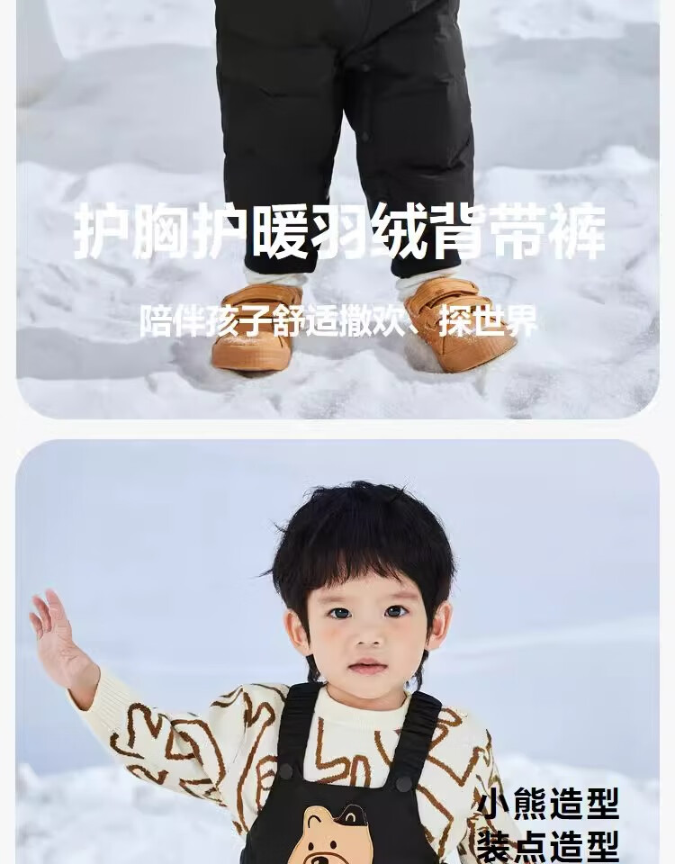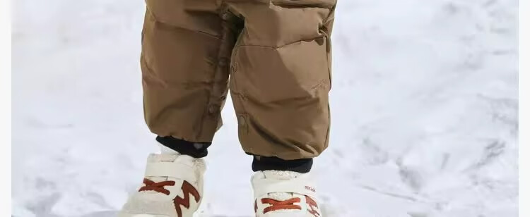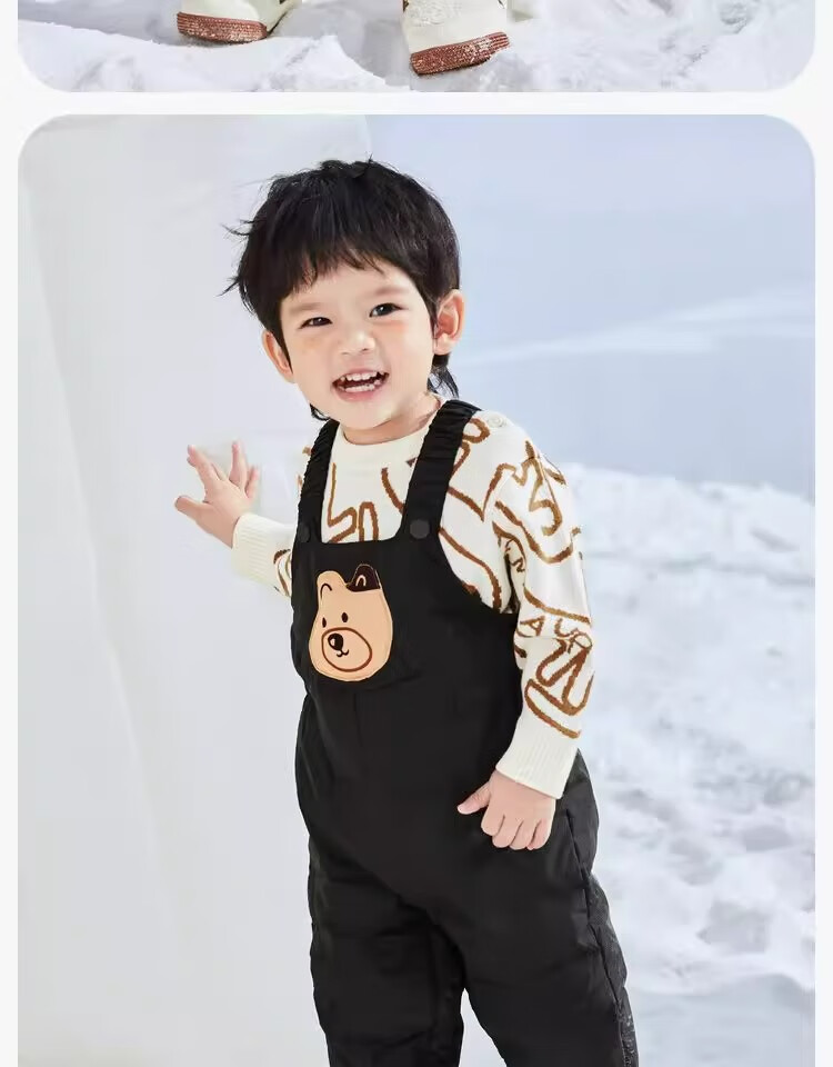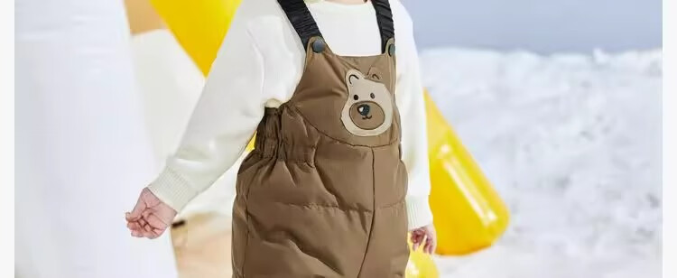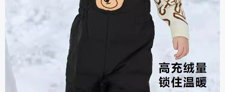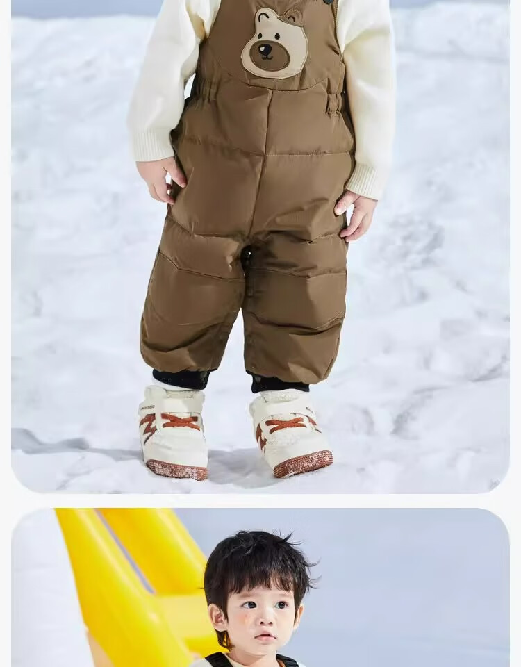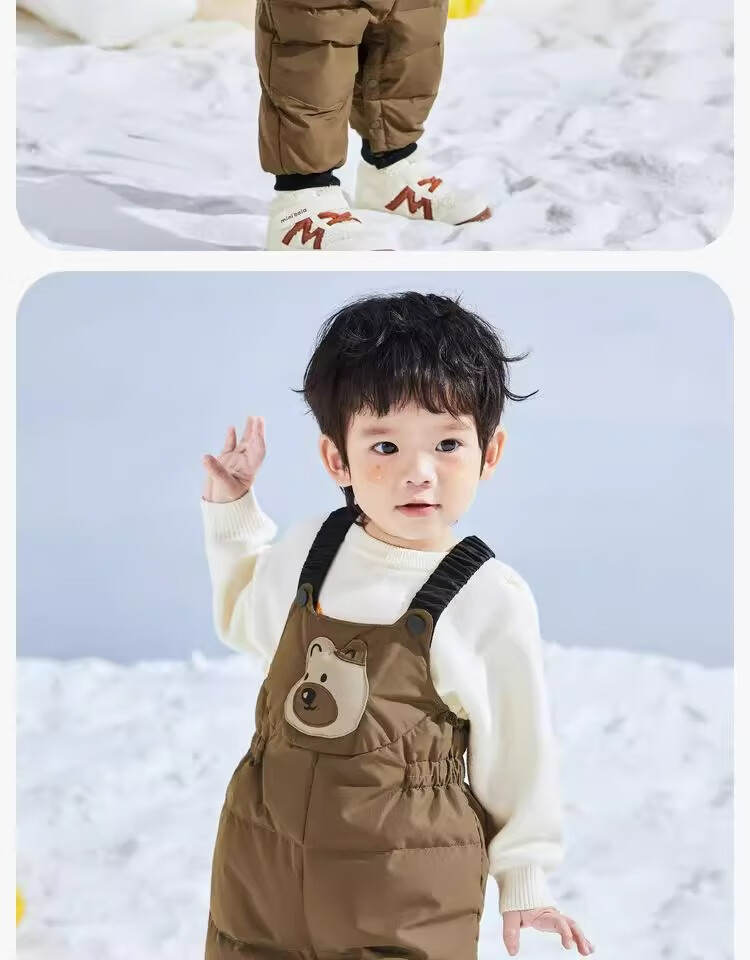 G.DUCKKIDS high-end children's down silk pants boys and girls overalls winter thickened baby down silk pants baby wear inside and outside A coffee color bear 90 cm