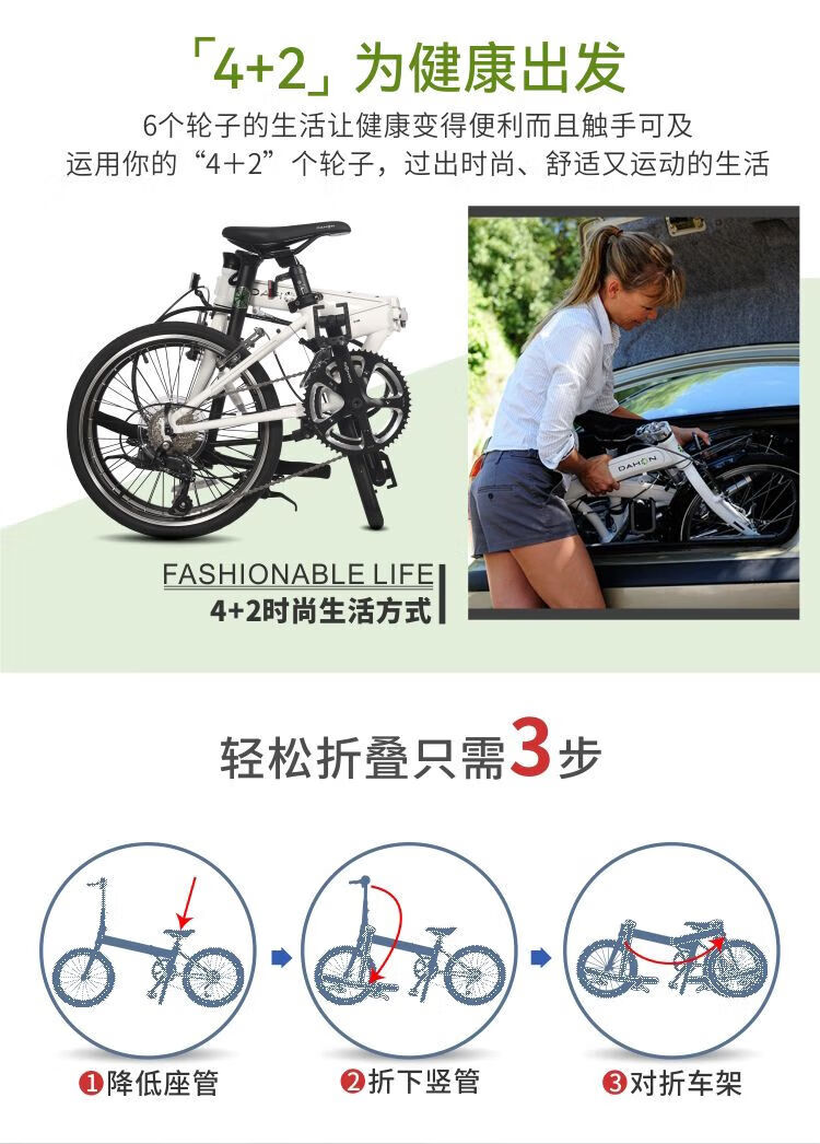 DAHON folding bicycle 20-inch 18-speed SP18 adult men's and women's sports road bicycle competition bicycle KAC083 white pink Shimano-vest line
