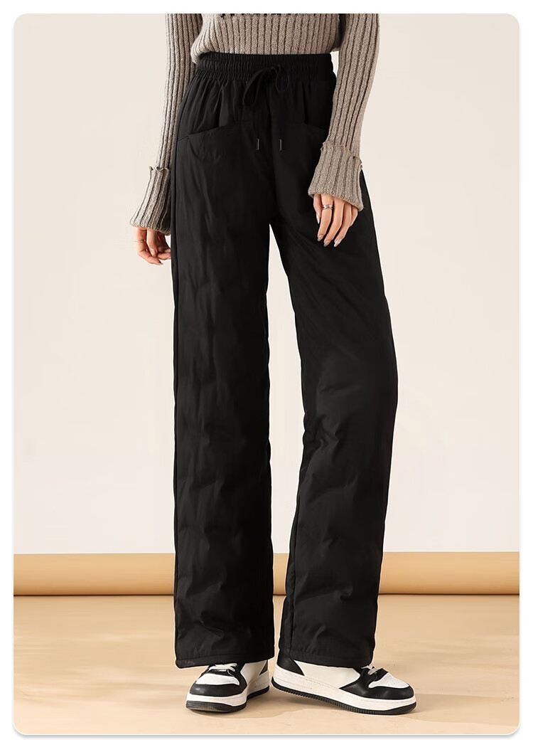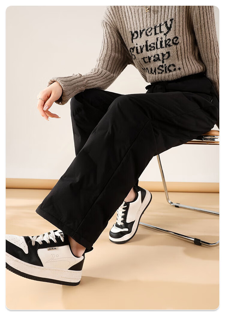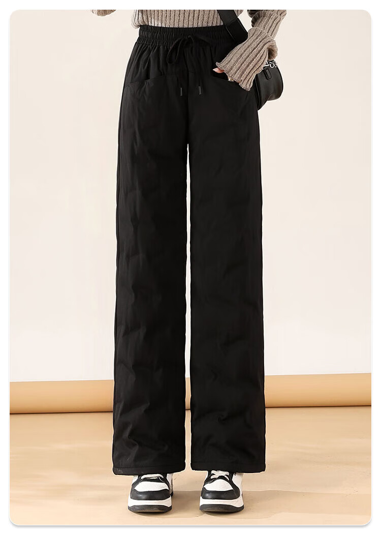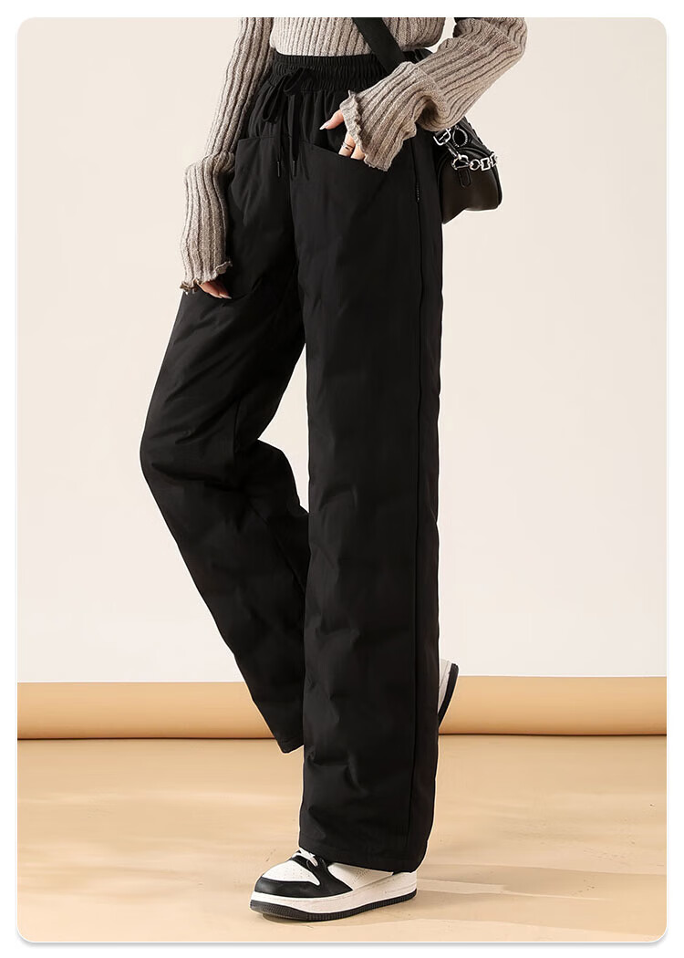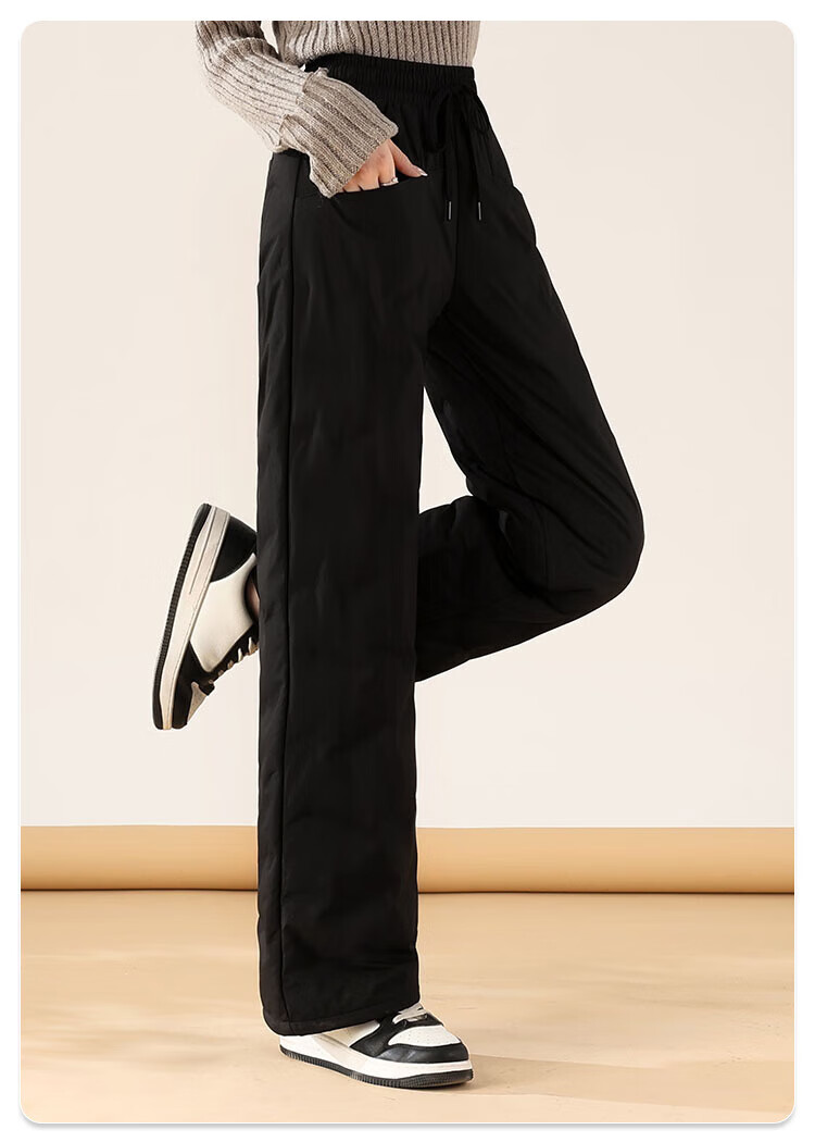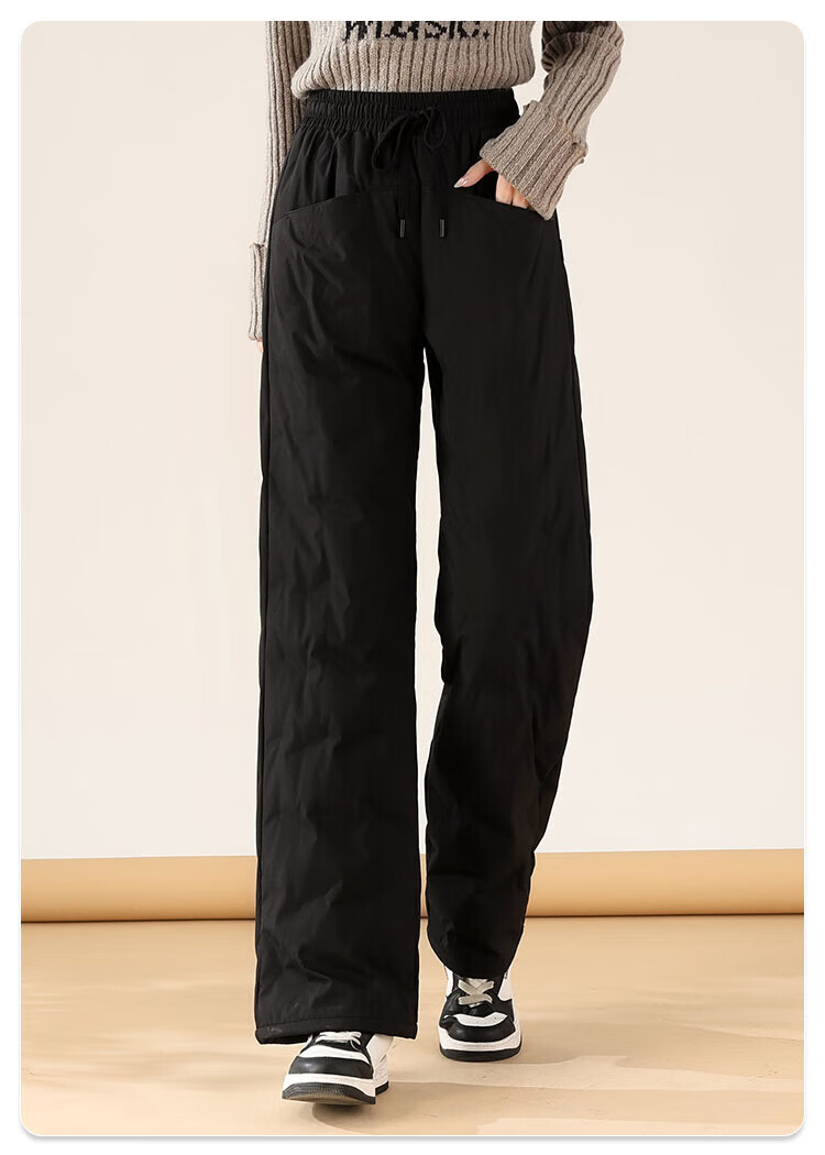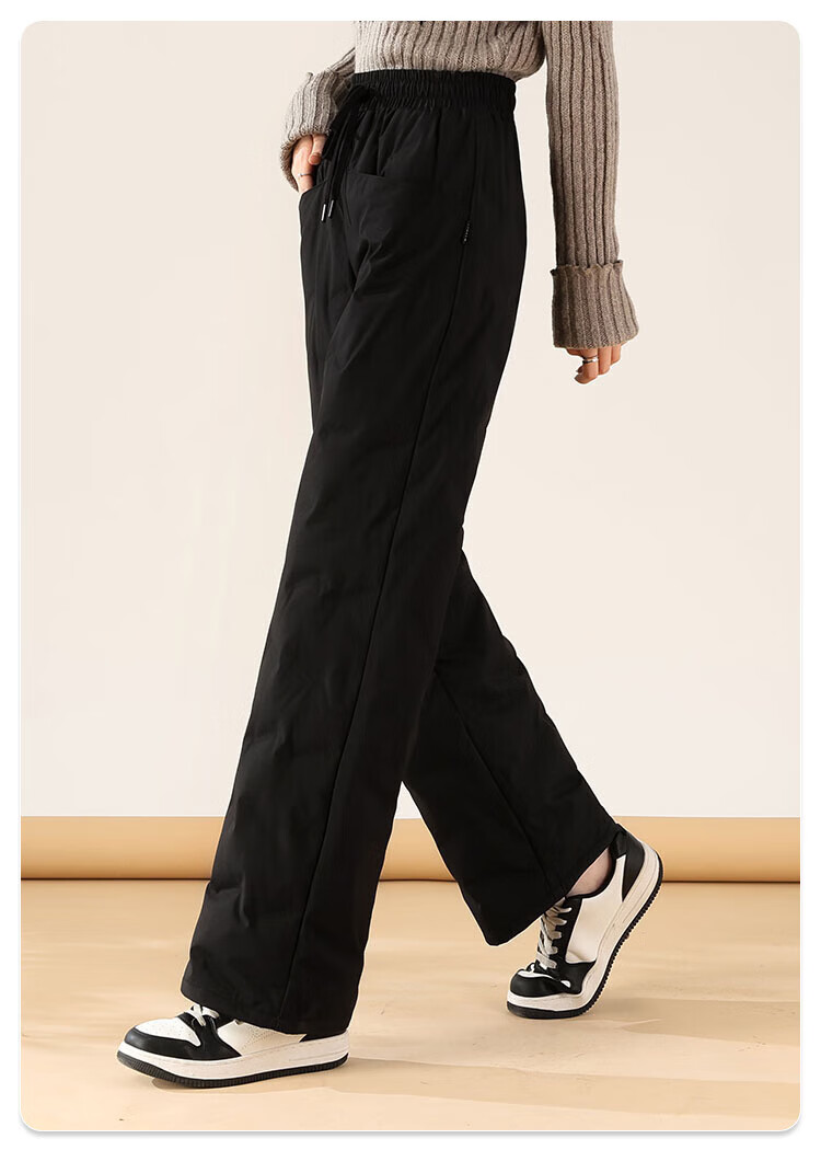 Snowy Women's Winter Outerwear Fashion Versatile Straight Down Pants Warm Plus Velvet Pants Seamless Capsule Slim Pants Black M 165/72A