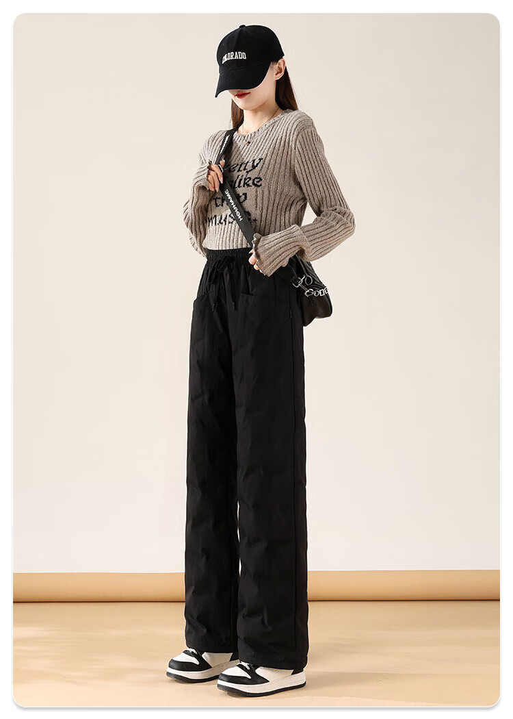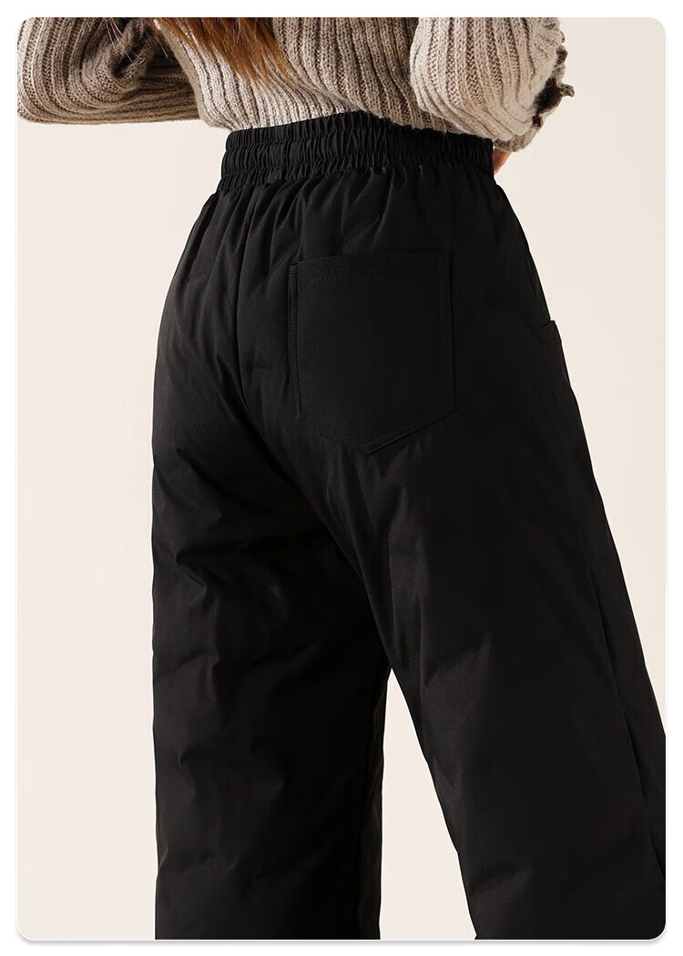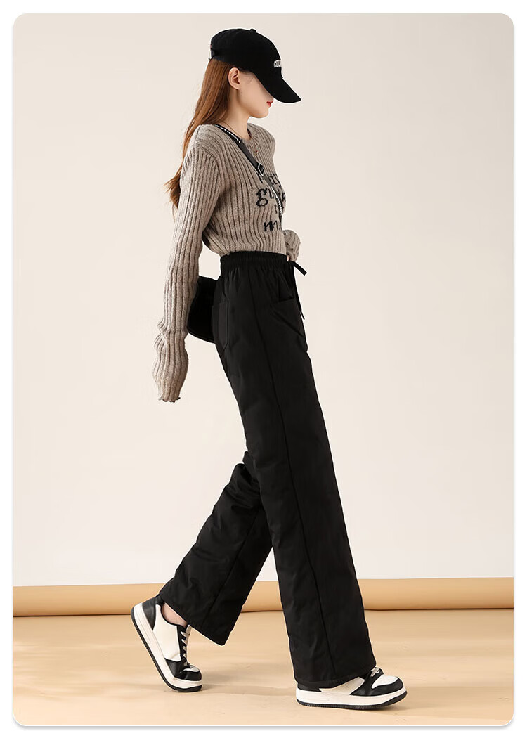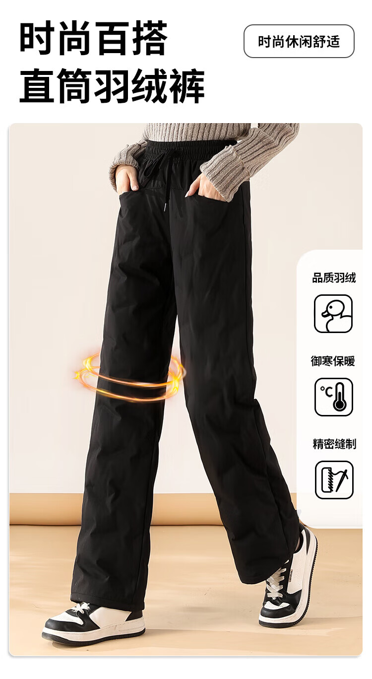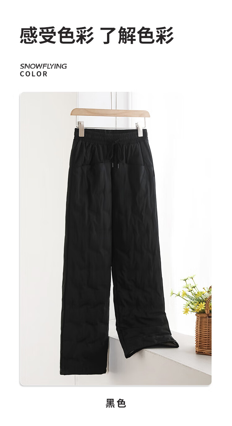 Snowy Women's Winter Outerwear Fashion Versatile Straight Down Pants Warm Plus Velvet Pants Seamless Capsule Slim Pants Black M 165/72A