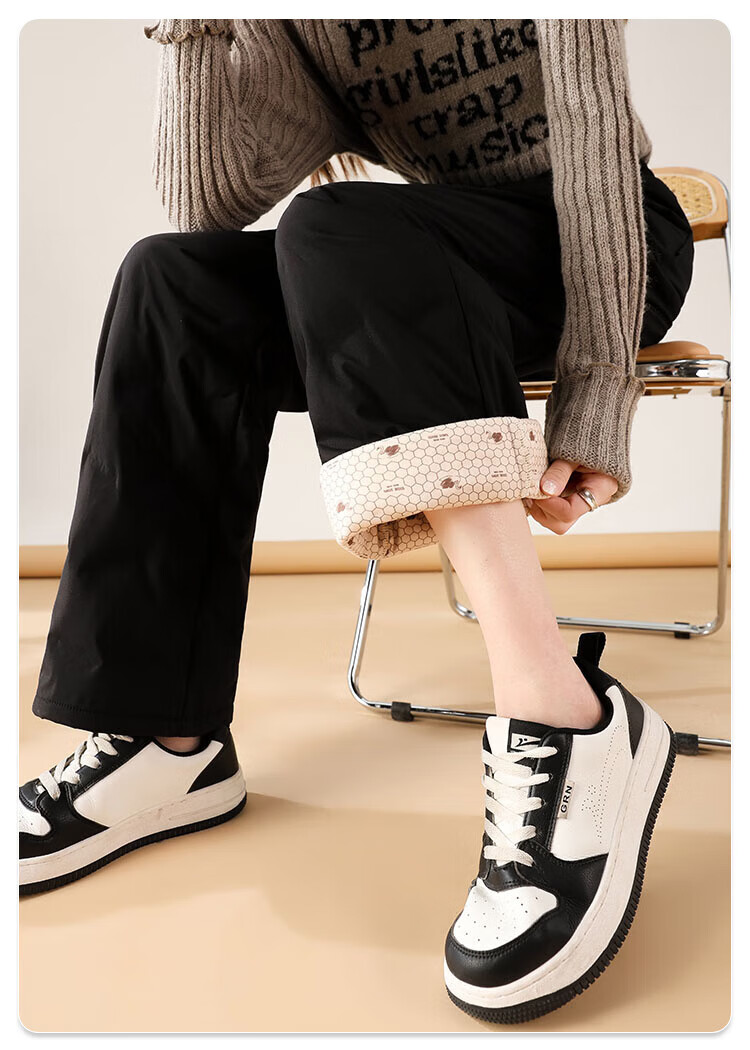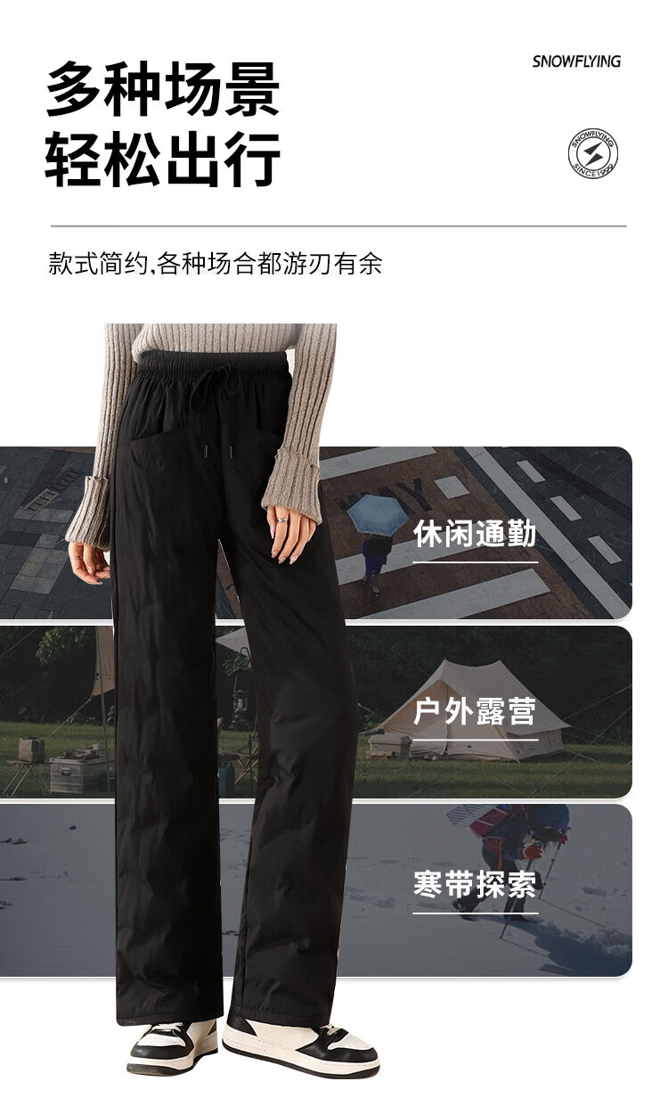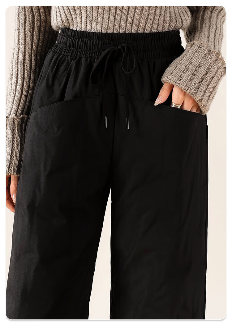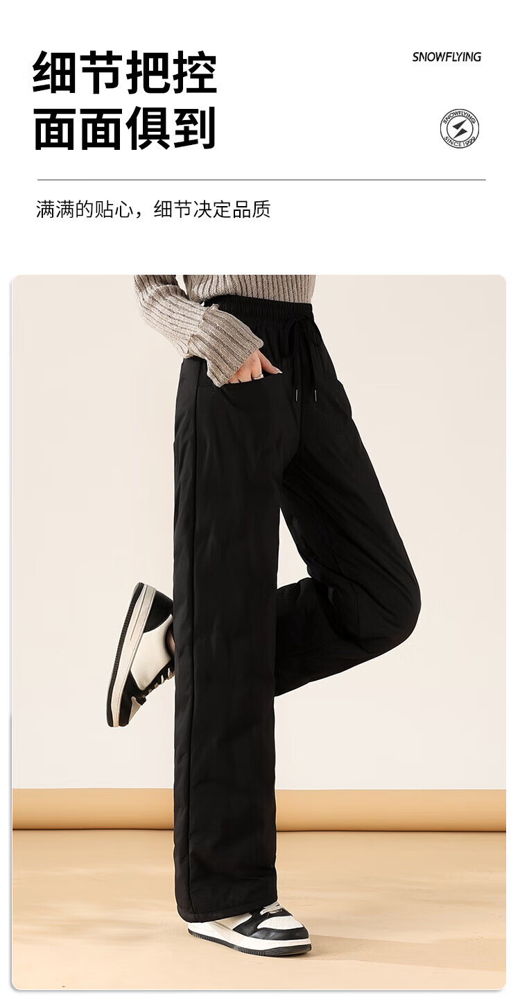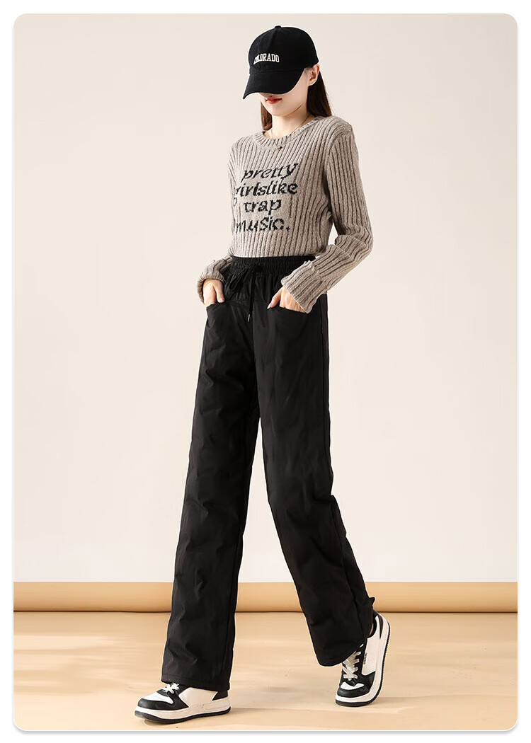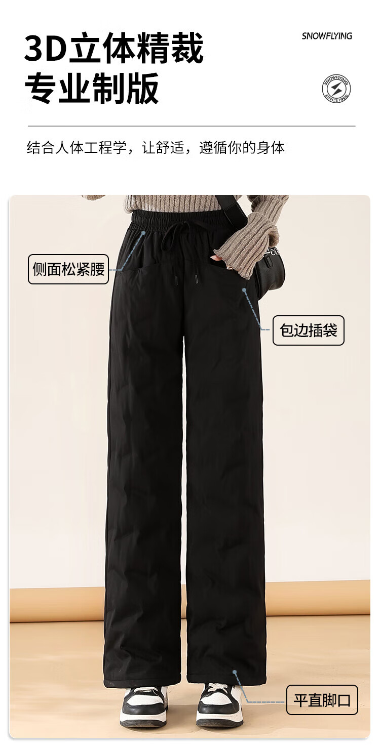 Snowy Women's Winter Outerwear Fashion Versatile Straight Down Pants Warm Plus Velvet Pants Seamless Capsule Slim Pants Black M 165/72A