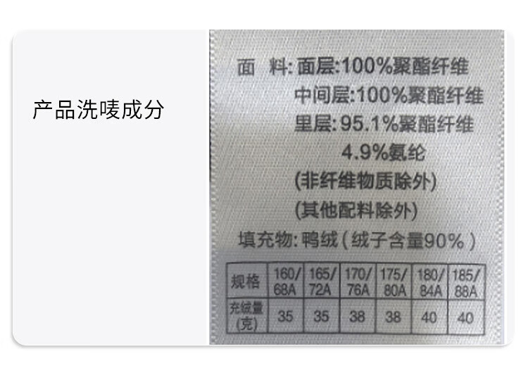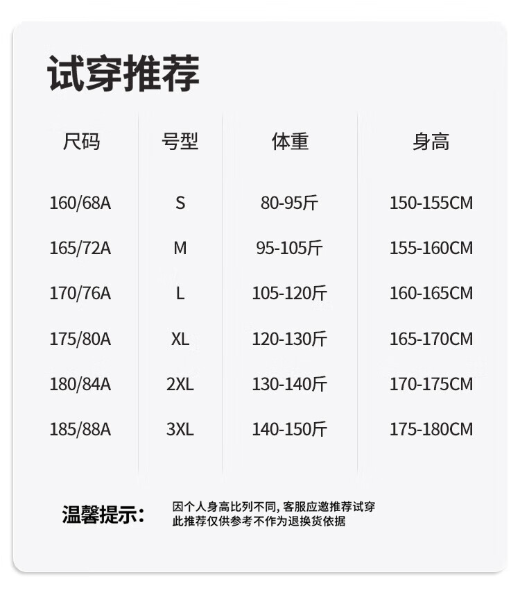 China (cm) 165 / 88-90 170 / 96-98 175 / 108-110 180 / 118-122 185 / 126-130