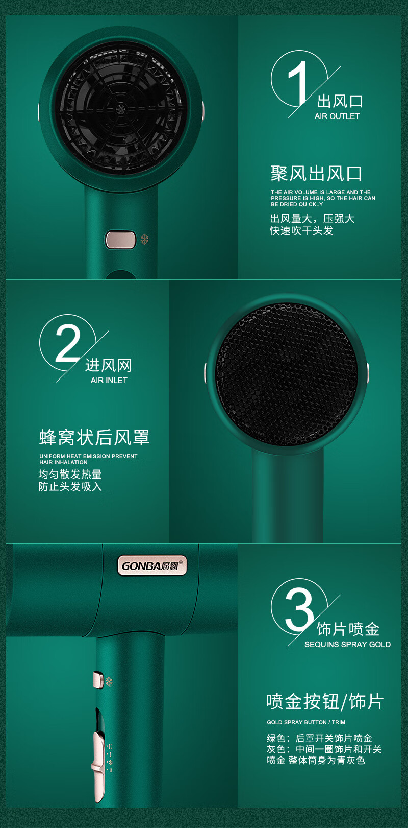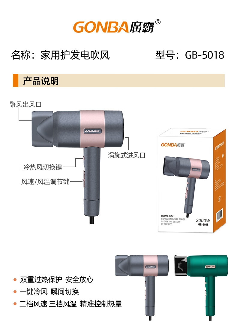 GUANGBA 2025 New National Standard High Speed Hair Dryer Quick Drying Negative Ion Home Appliance Dryer Hair Dryer Hair Care High Power Dormitory Hotel Travel Girl Gift Electrical Goods Space Gray New National Standard Safer 2000W + Full Series 2M Pure Copper Power Cord