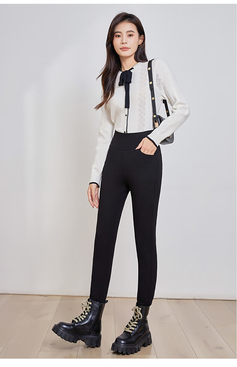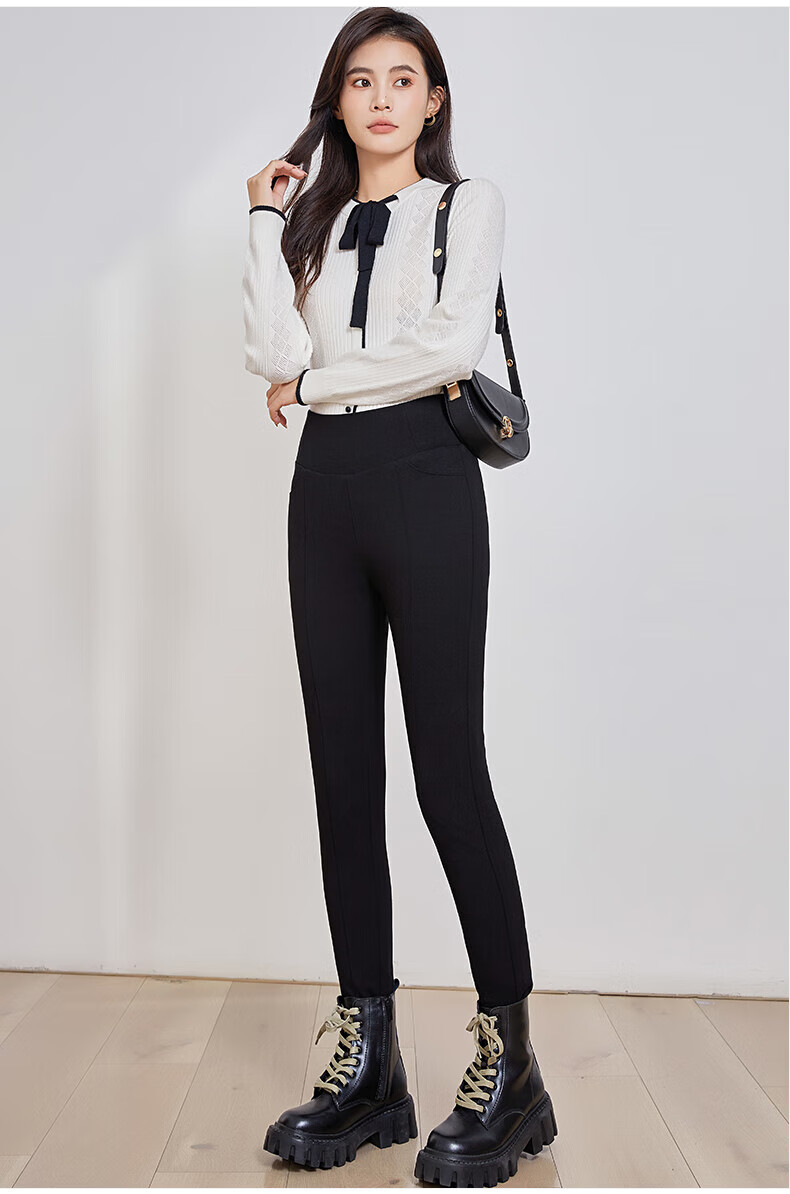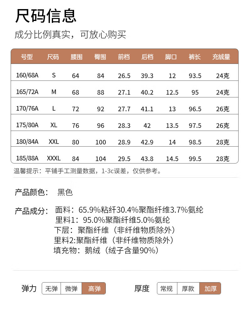 Flying in the Snow Down Pants Winter Outerwear Warm Pants Women's Three-Proof Goose Down Pants Cold-Resistant High-Waist Elastic Slim Overalls Plus Velvet Pants Black S 160/68A