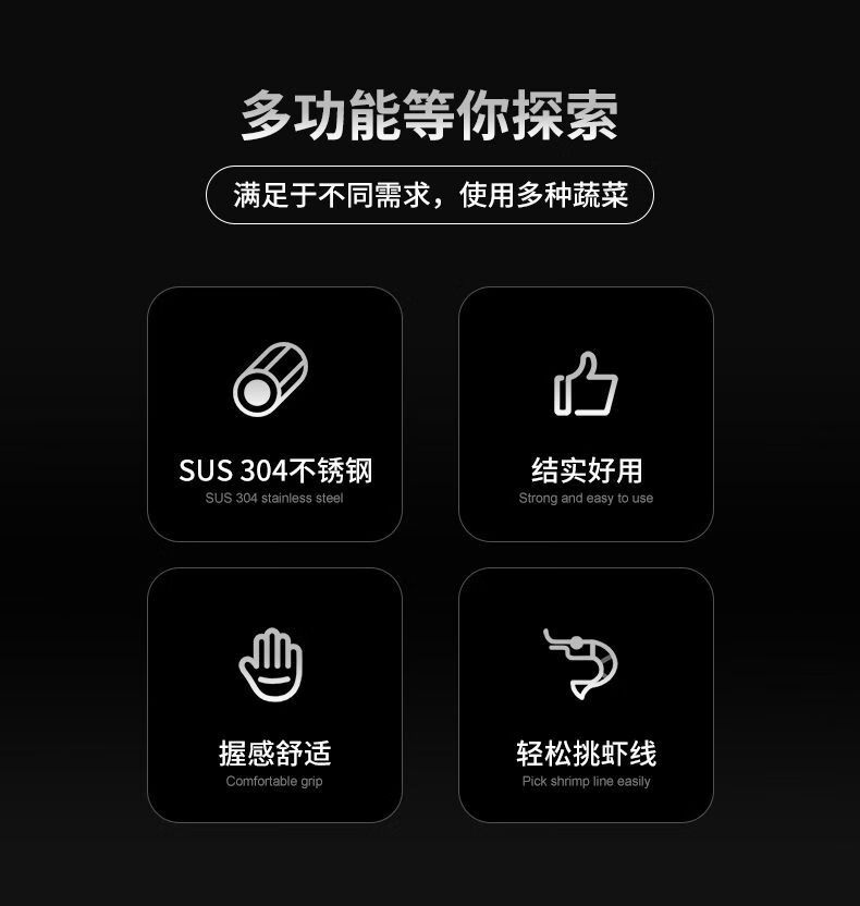 Xiongwochi multifunctional double-headed shrimp peeling artifact stainless steel shrimp line knife shrimp intestine fish belly knife picks fish intestines and fish scales multifunctional fish intestine knife with one top