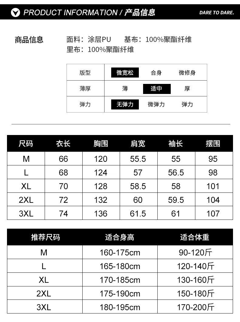 China (cm) 165 / 88-90 170 / 96-98 175 / 108-110 180 / 118-122 185 / 126-130