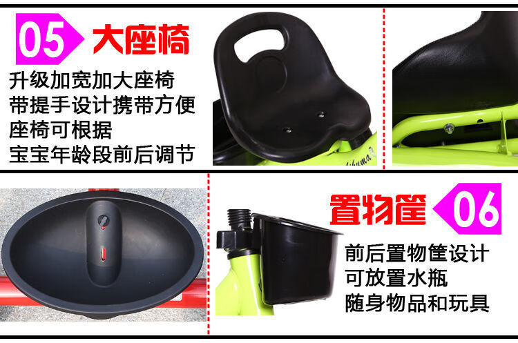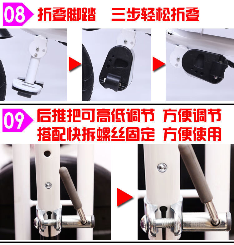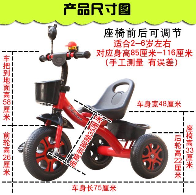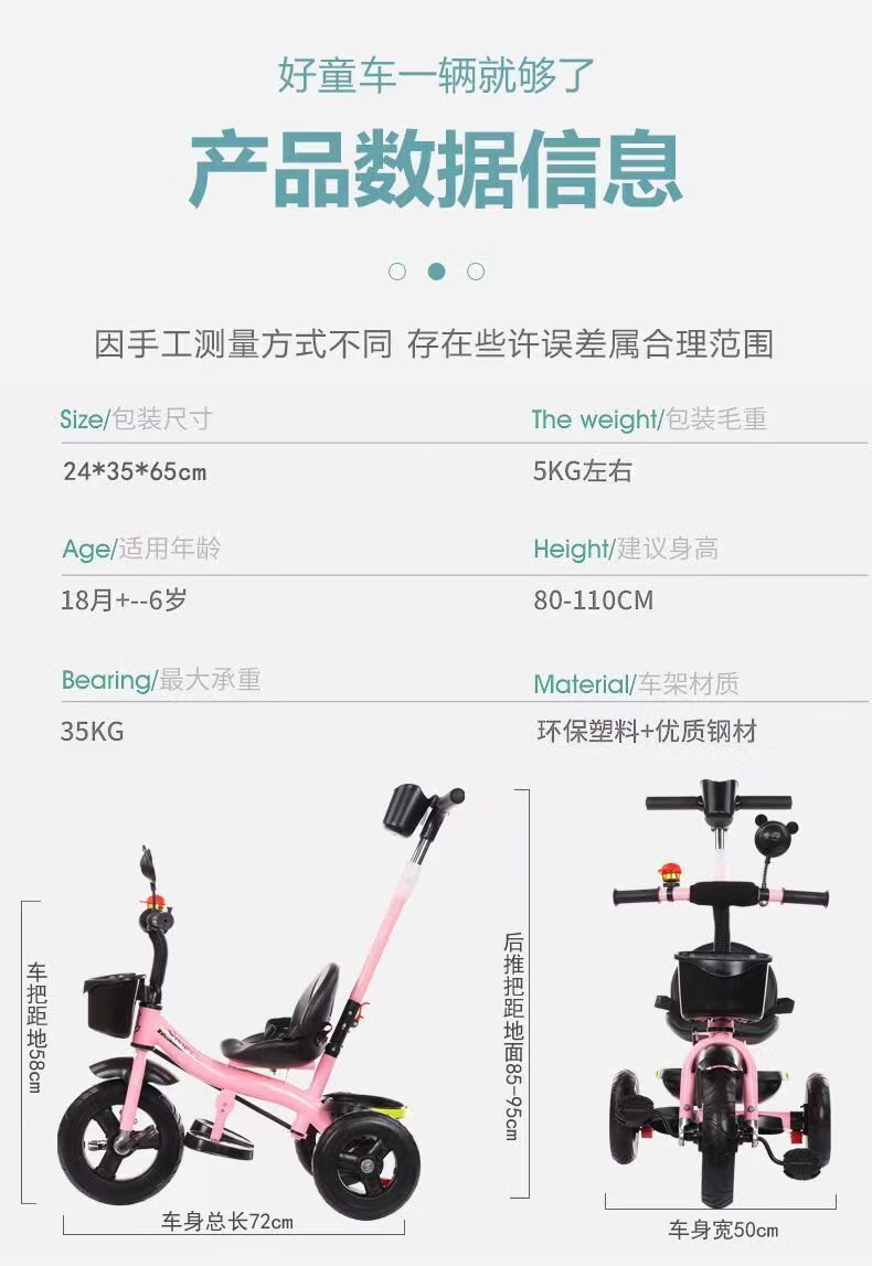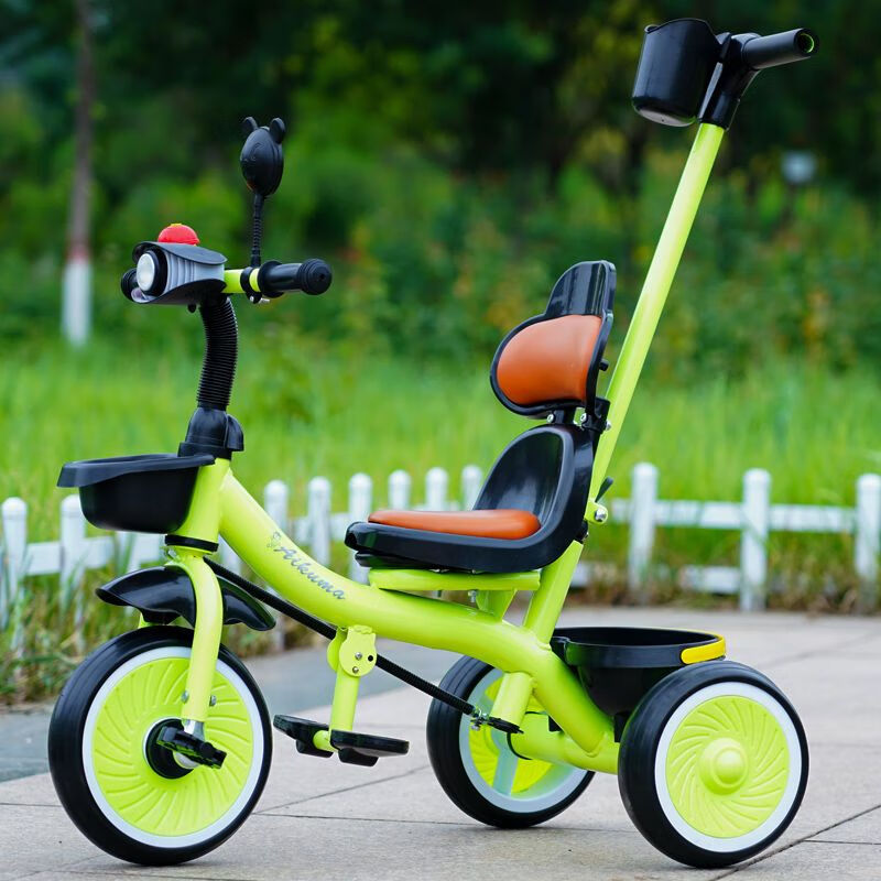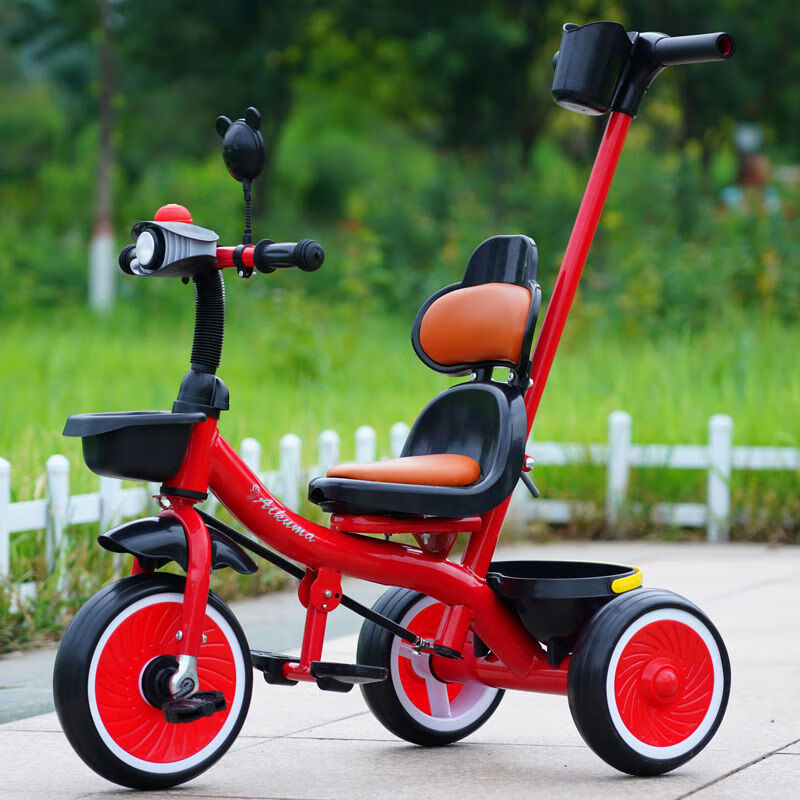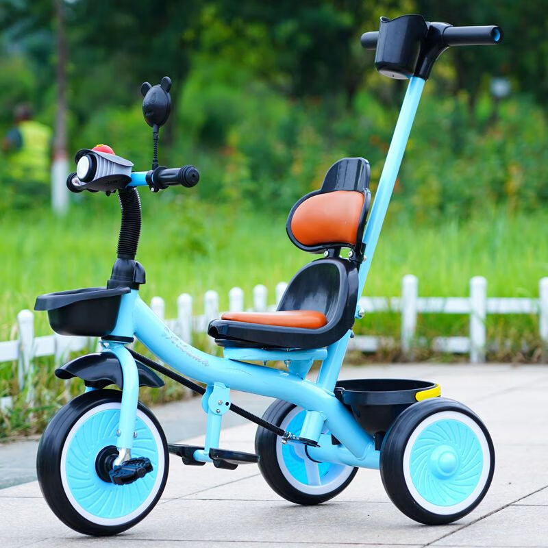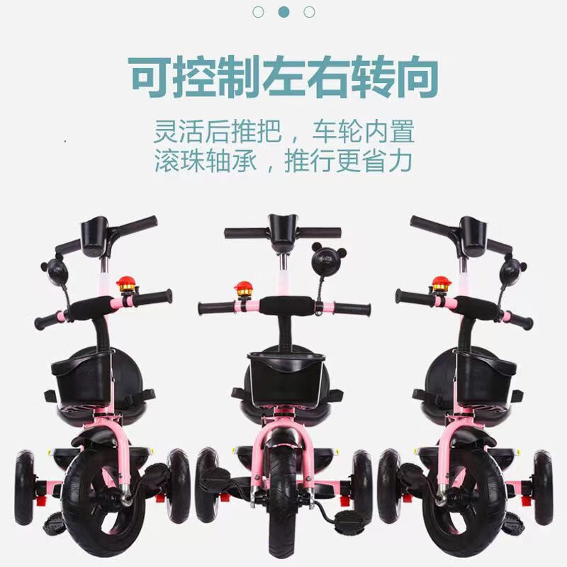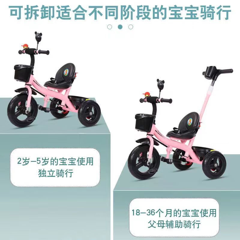 Children's tricycle bicycle with push handle baby stroller child bicycle bicycle 1-3-6 years old stroller Sakura pink model + soft seat back + music