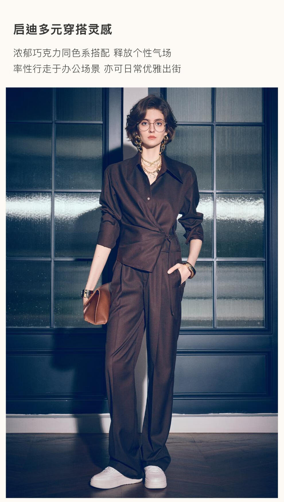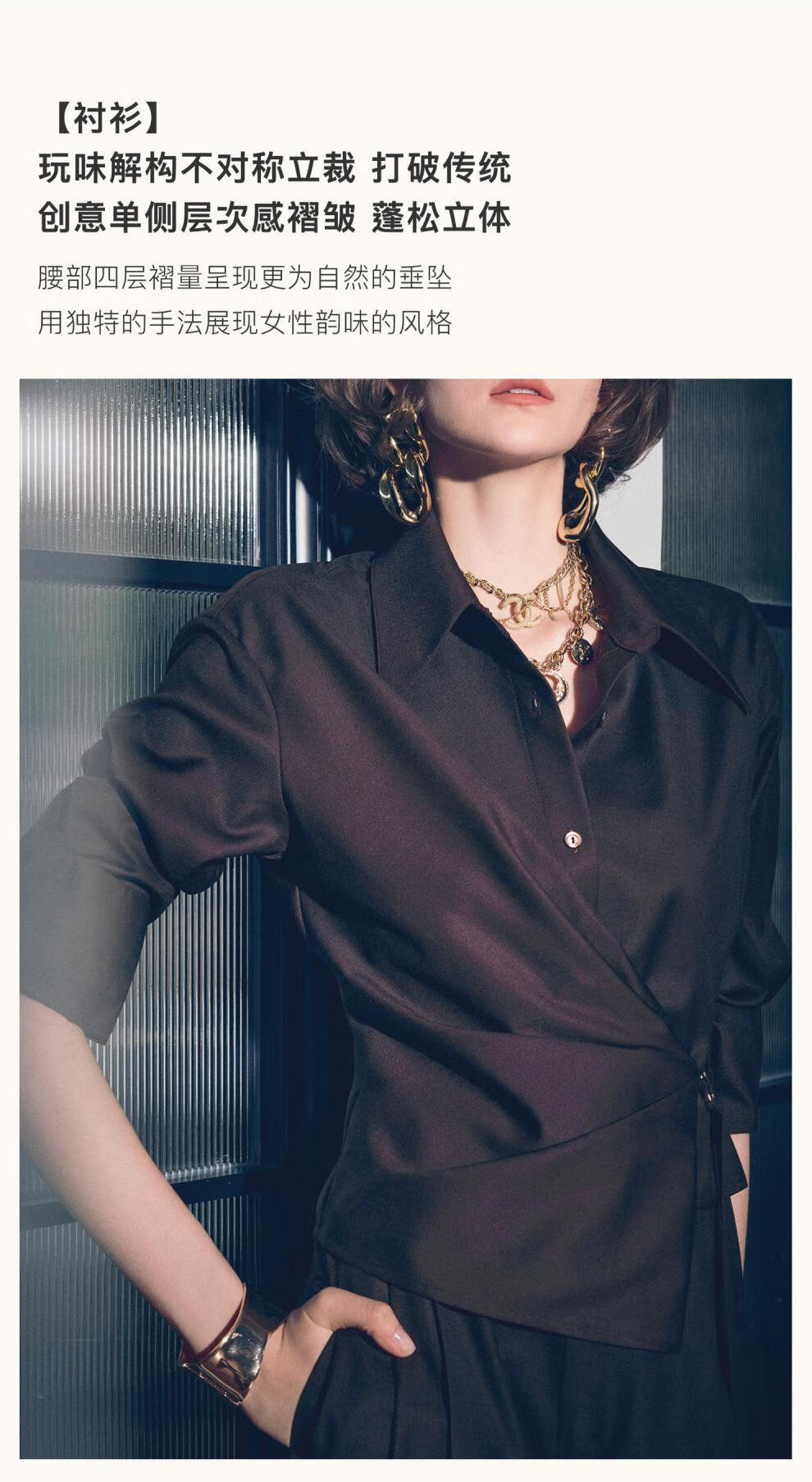 ANNASPEAK New Year's Diverse Urban Creative Multi-Wear Strappy Light Worsted Wool Shirt Dark Burgundy Top S (90-104)
