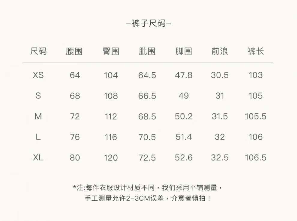 Outseam (cm) 99 cm 101.5 cm 104 cm 106.5 cm 109 cm