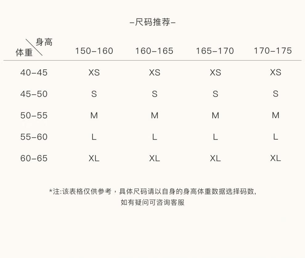 China (cm) 160-165/84-86 165-170 / 88-90 167-172 / 92-96 168-173 / 98-102 170-176 / 106-110
