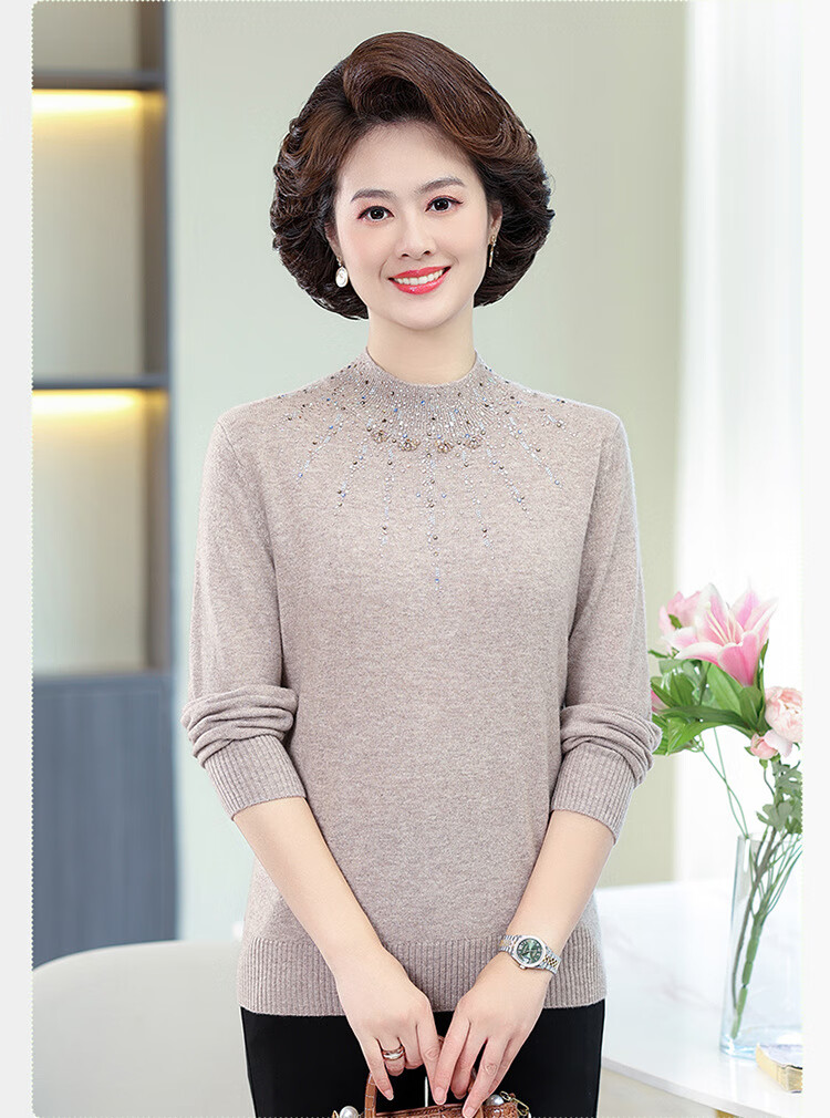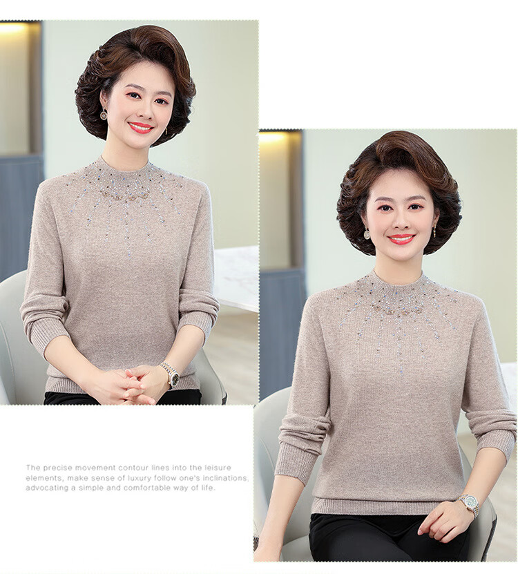 Ordos city specialty women's cashmere sweater autumn and winter new mother's sweater women's cashmere sweater with warm sweater camel 4XL 160-175Jin Jin equals 0.5 kg
