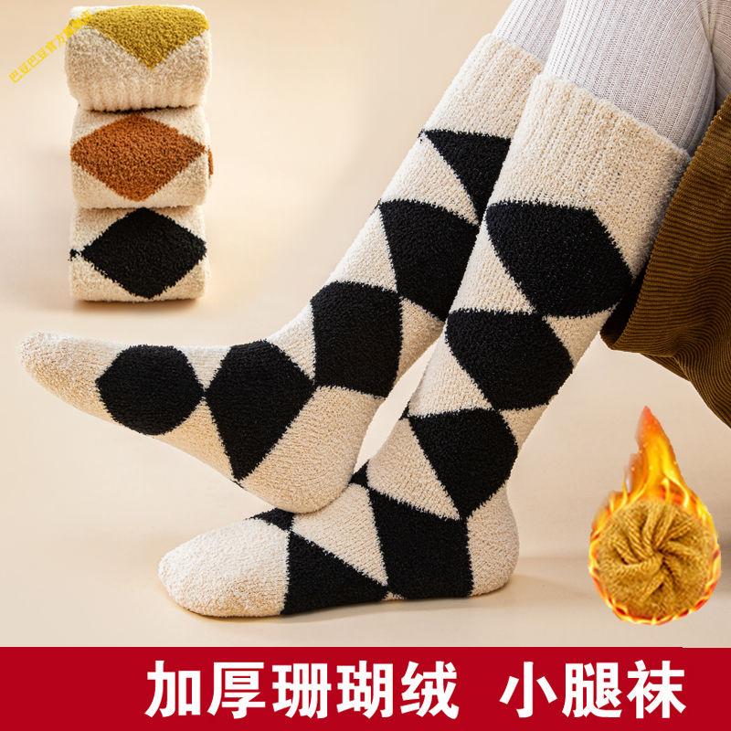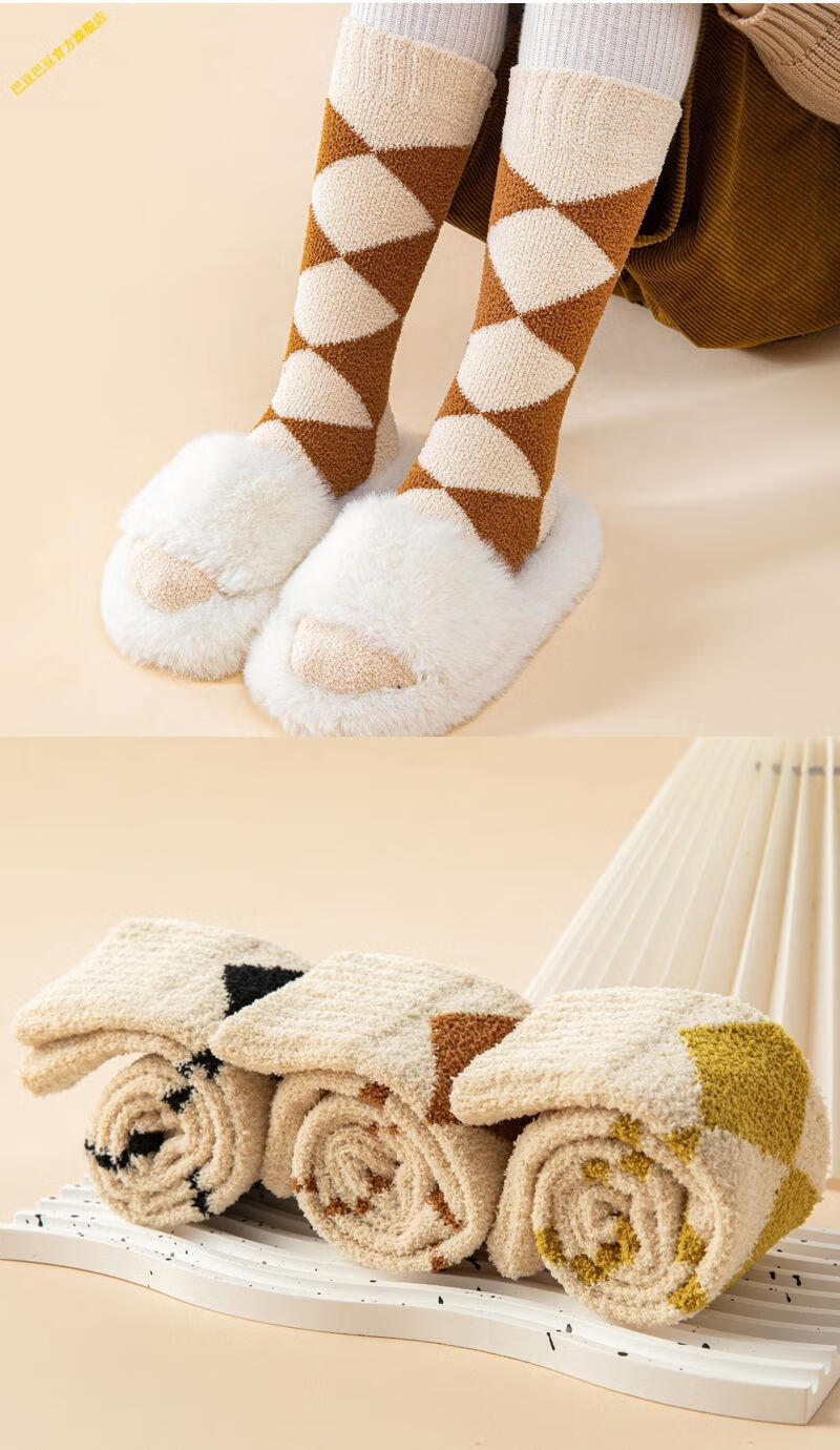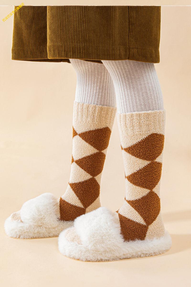 G.duck little yellow duck children's calf socks autumn and winter thickened velvet boys and girls socks tall baby stockings students thickened coral velvet leopard print set 3 pairs 1-3 years old (foot length 10-13cm)