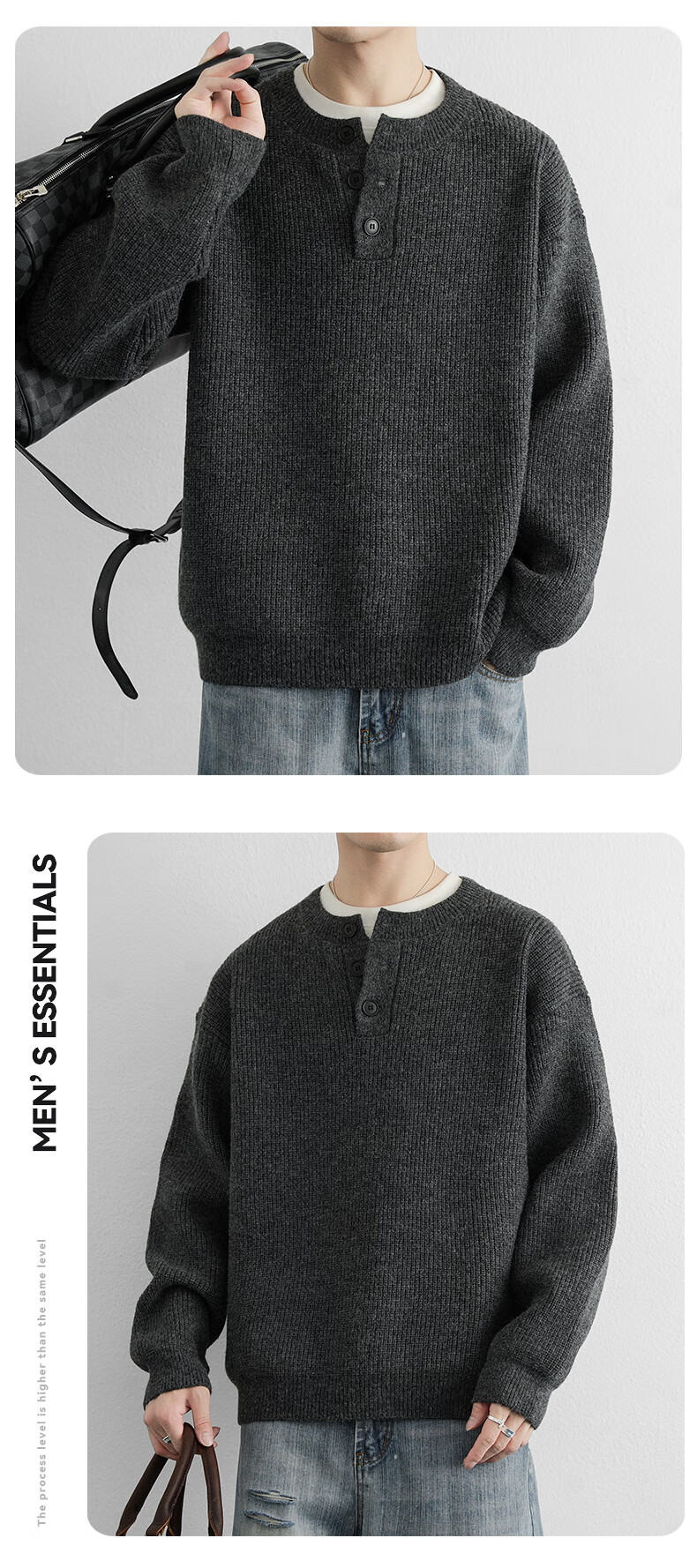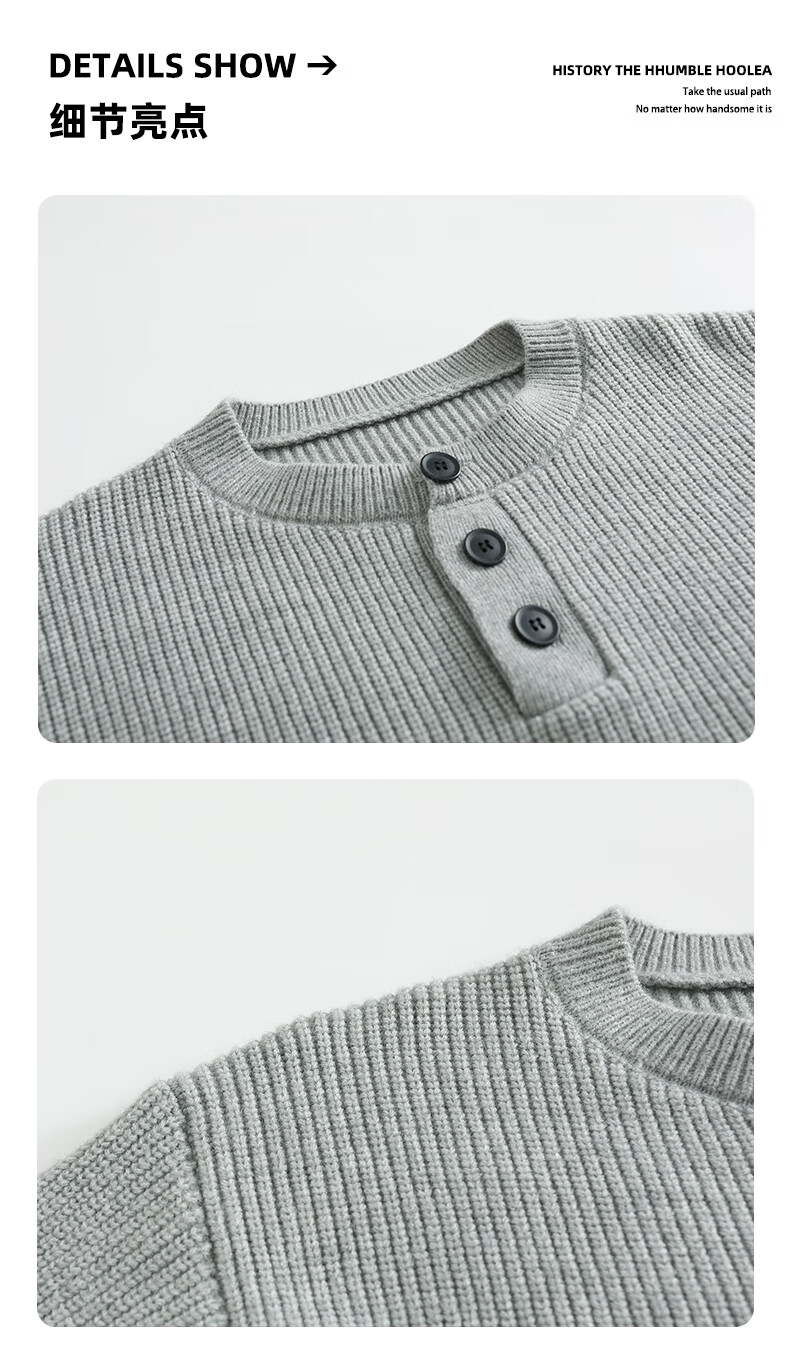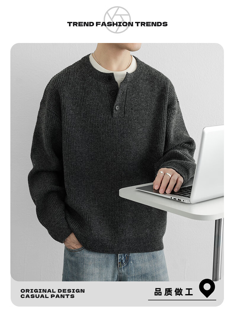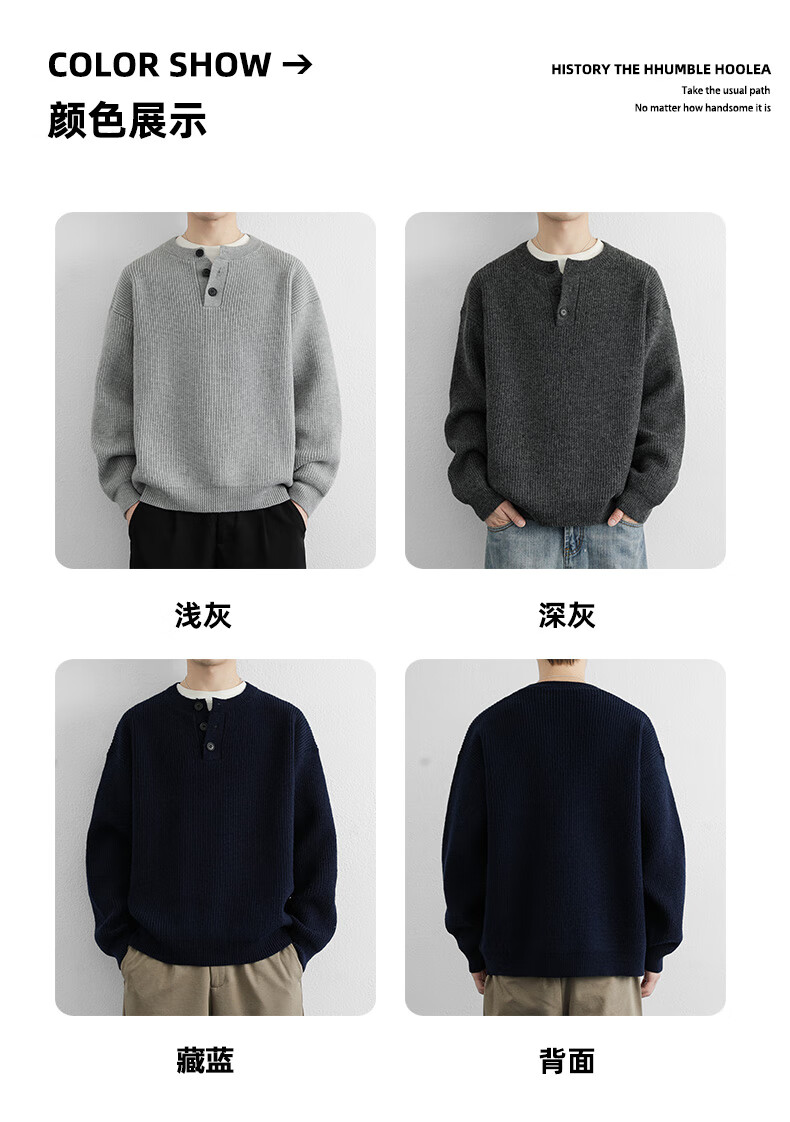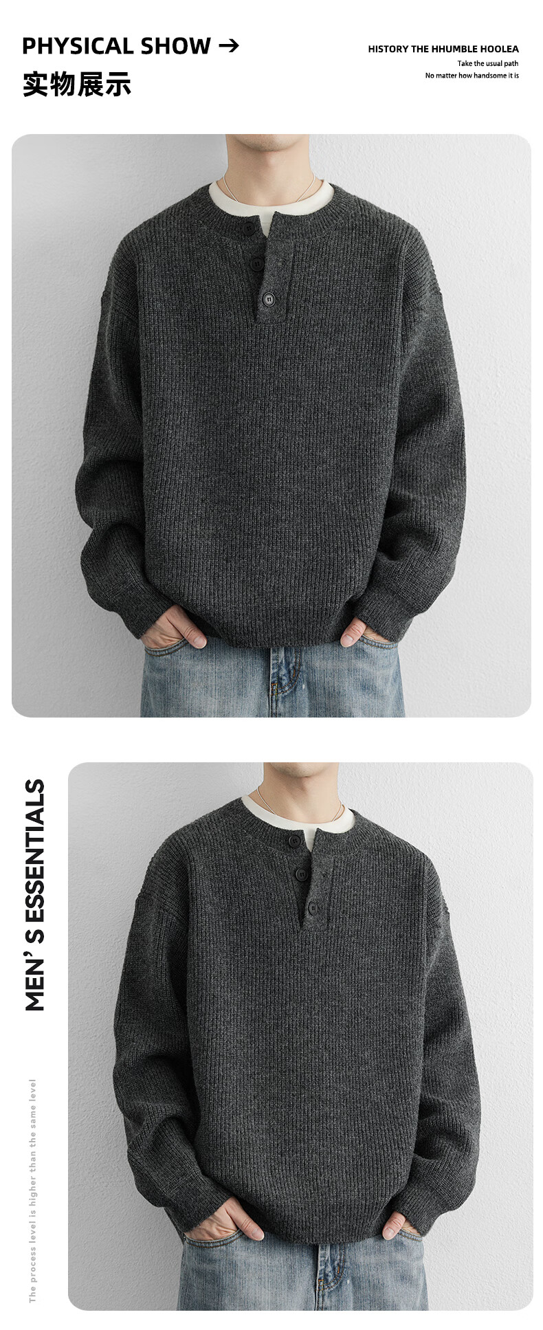 Xinyoujie Henry collar fashionable simple high-end knitted sweater for men lazy style boys sweater 2025 autumn and winter trend 2555 light gray M recommended 100-120Jin Jin equals 0.5 kg