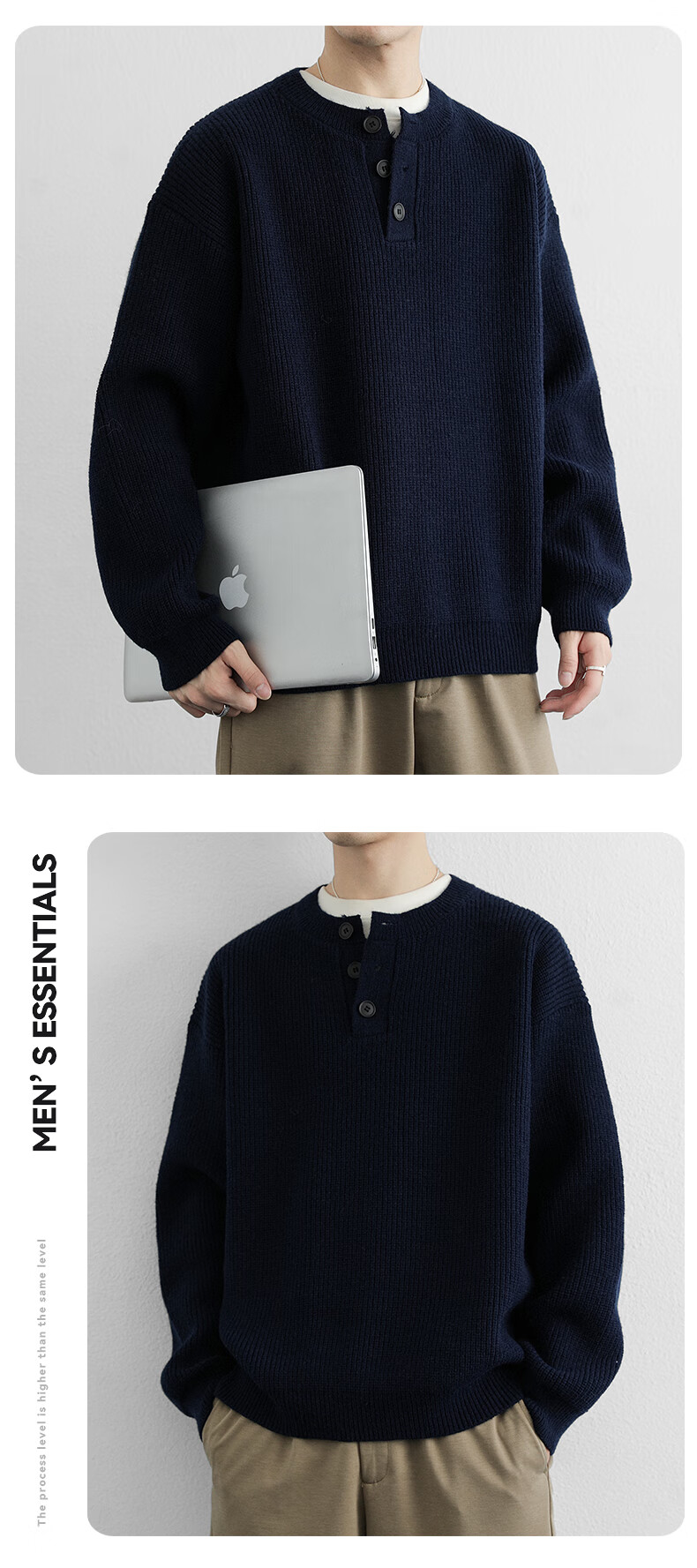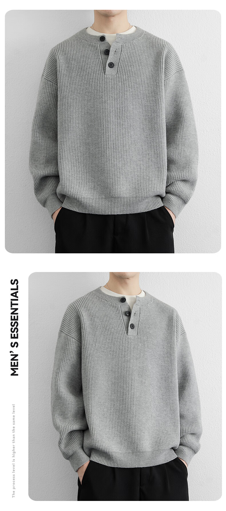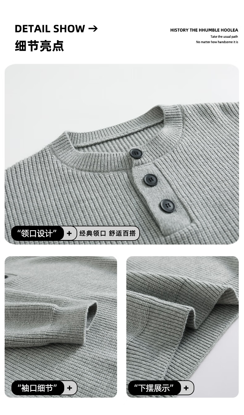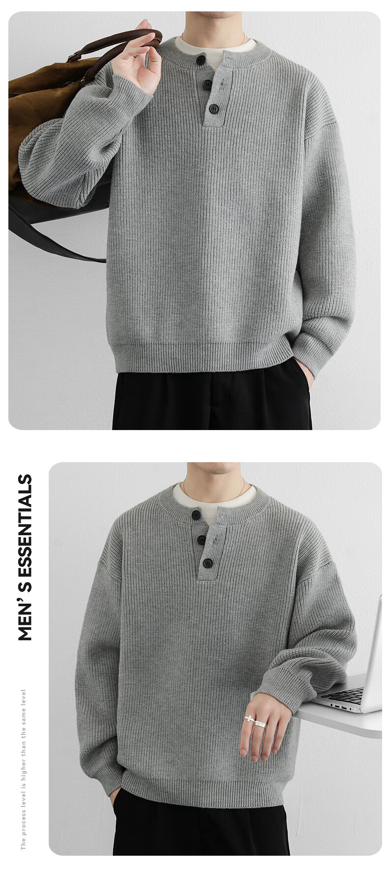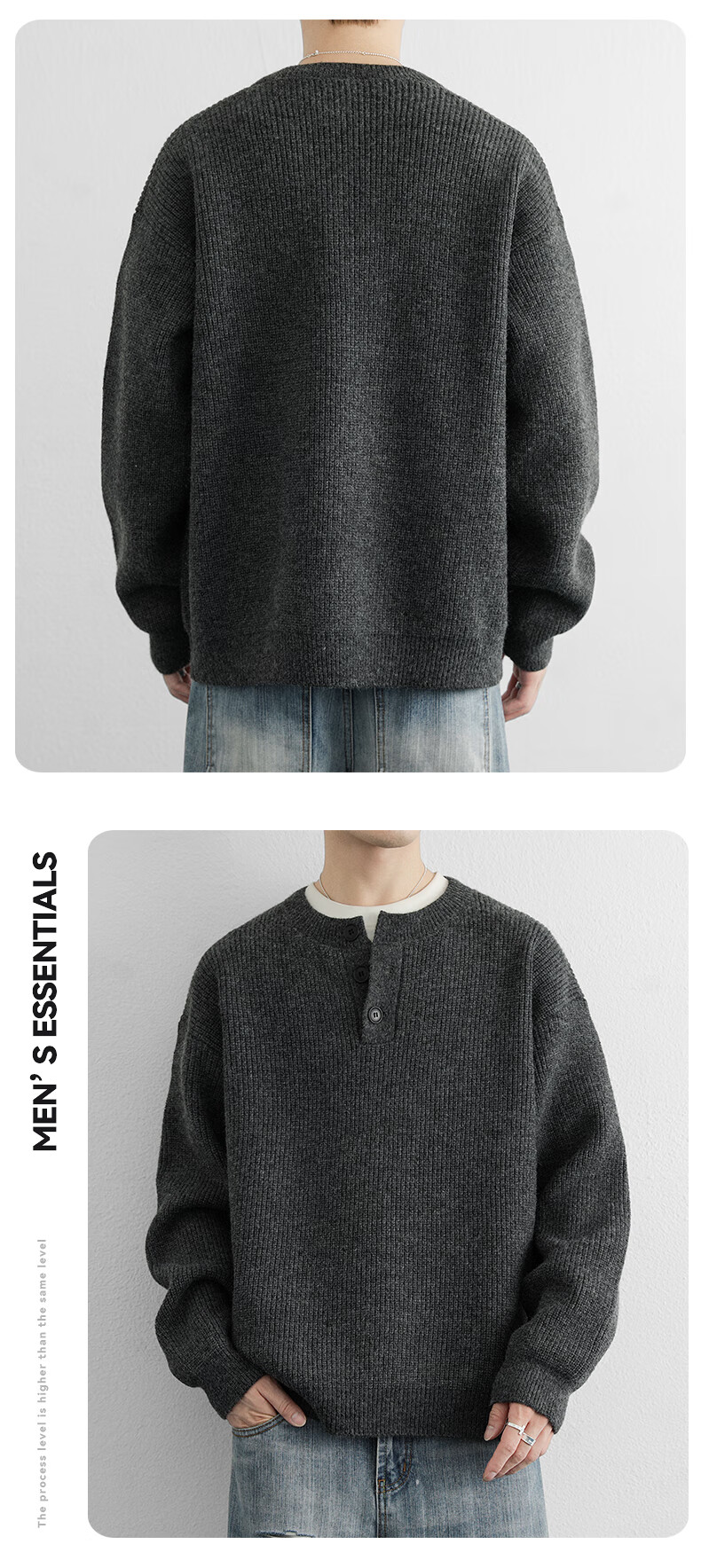 Xinyoujie Henry collar fashionable simple high-end knitted sweater for men lazy style boys sweater 2025 autumn and winter trend 2555 light gray M recommended 100-120Jin Jin equals 0.5 kg