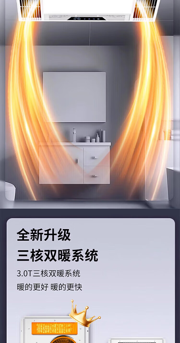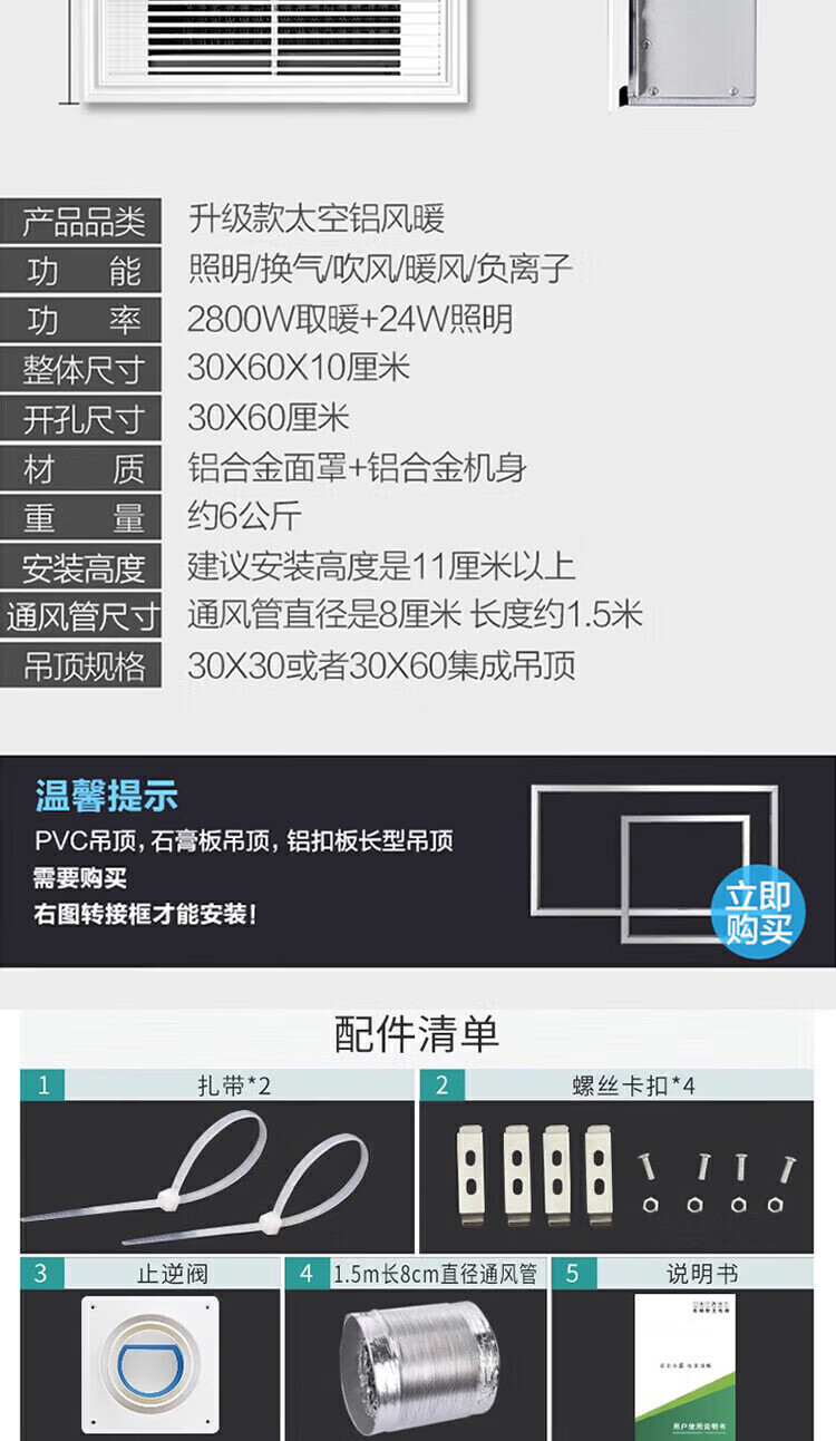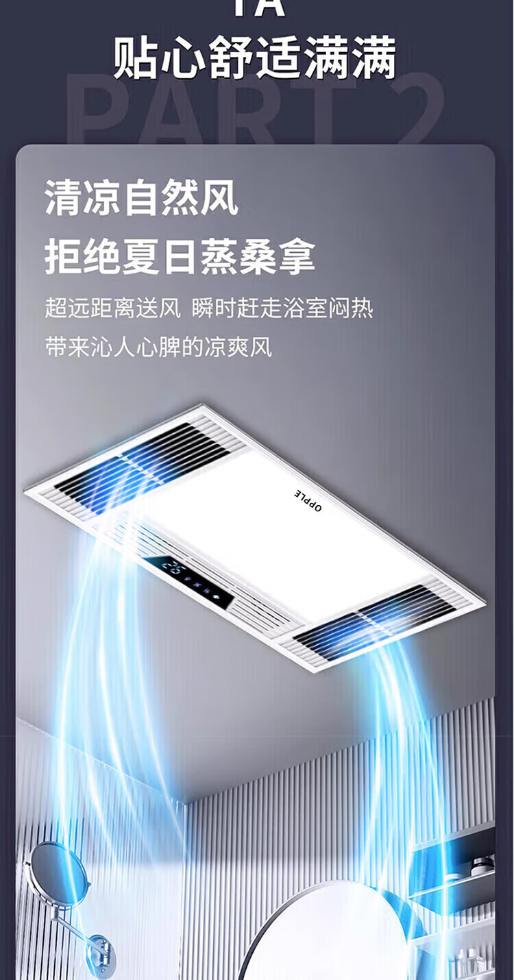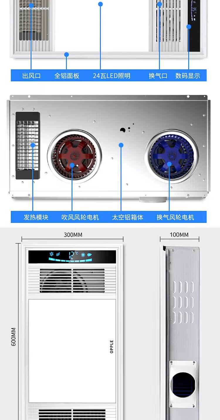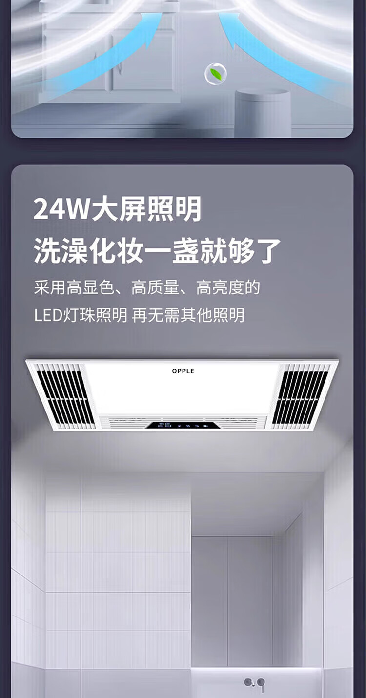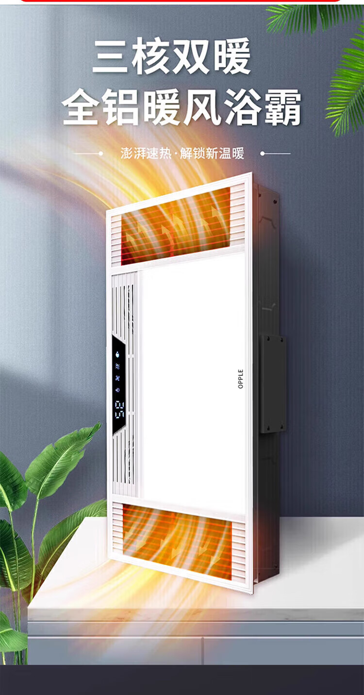 OPPLE Integrated Ceiling Air Heating Bath Heater 30*60 Five-in-One Exhaust Lighting Bathroom Heater Bathroom Kitchen Light (Full Plastic Triple Core) White Piano Key Switch