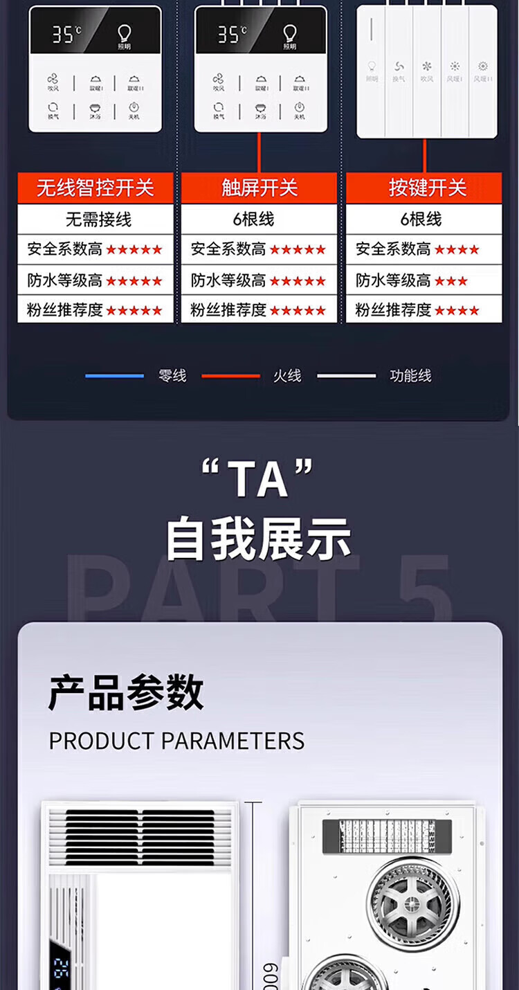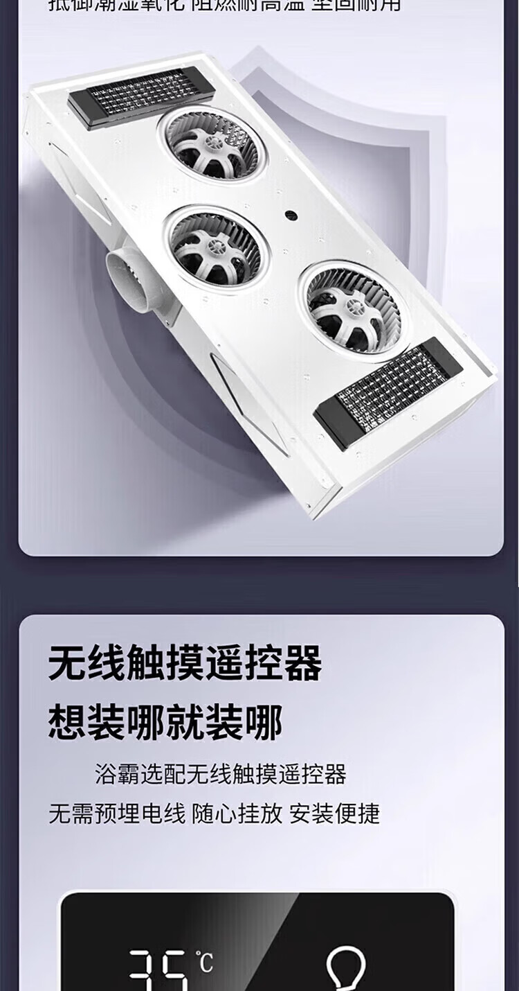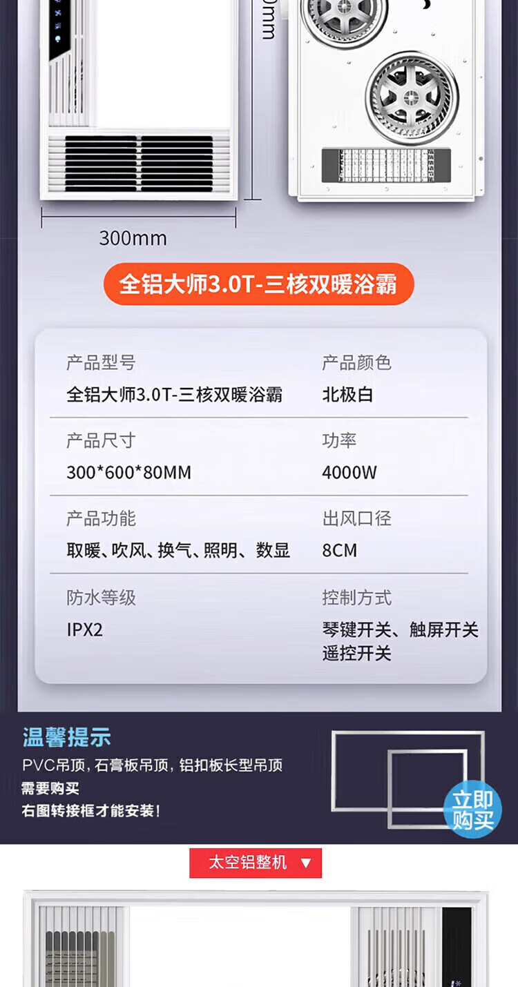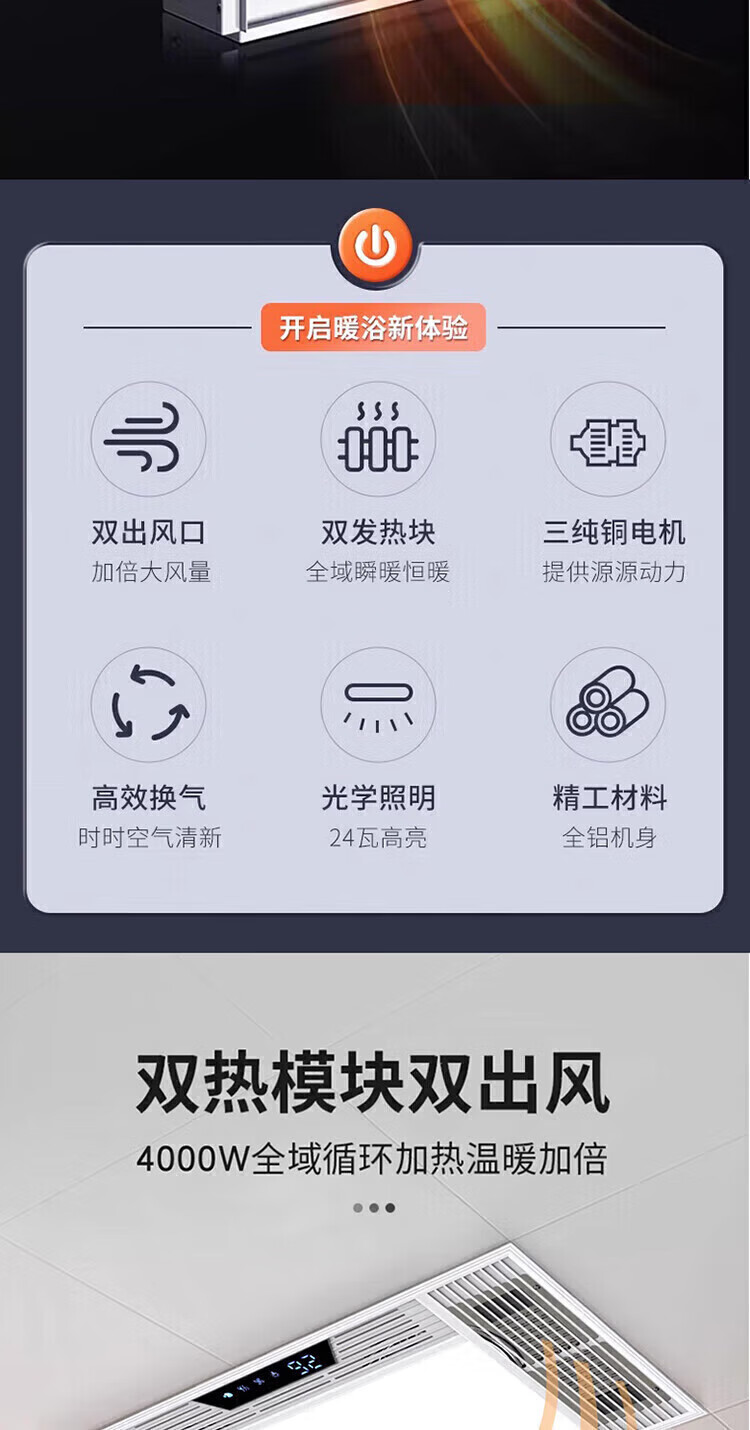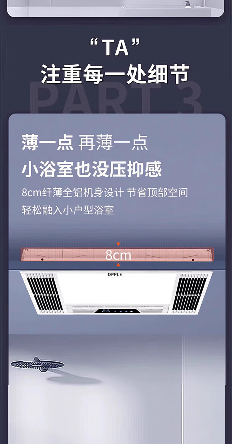 OPPLE Integrated Ceiling Air Heating Bath Heater 30*60 Five-in-One Exhaust Lighting Bathroom Heater Bathroom Kitchen Light (Full Plastic Triple Core) White Piano Key Switch