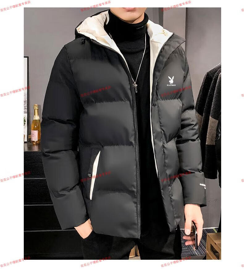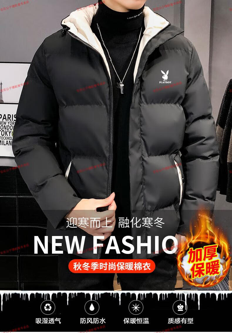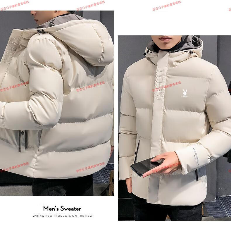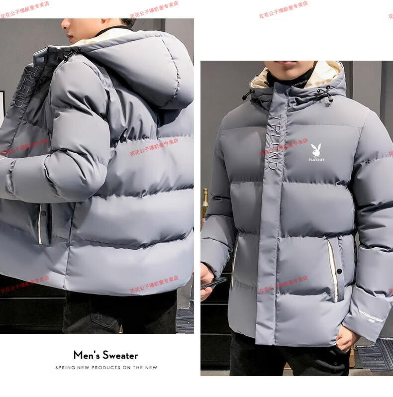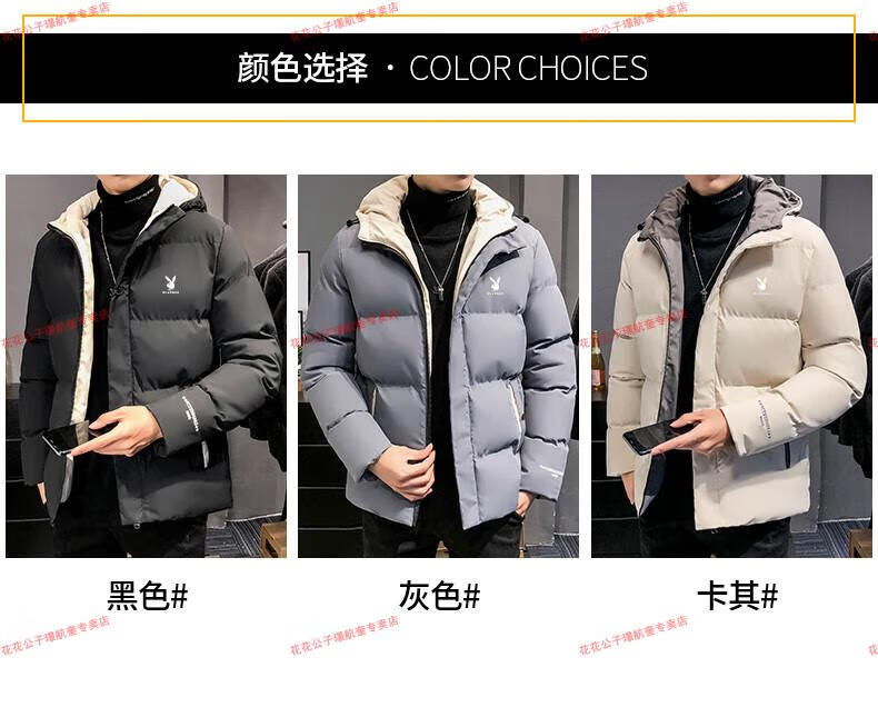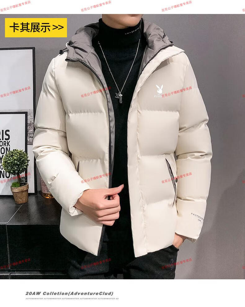 Playboy cotton-padded jacket for men, autumn and winter new trendy brand down-padded jacket, thickened hooded winter jacket, men's jacket, Khaki 8998 M Recommended 90Jin Jin is equal to 0.5kg -105Jin Jin is equal to 0.5kg