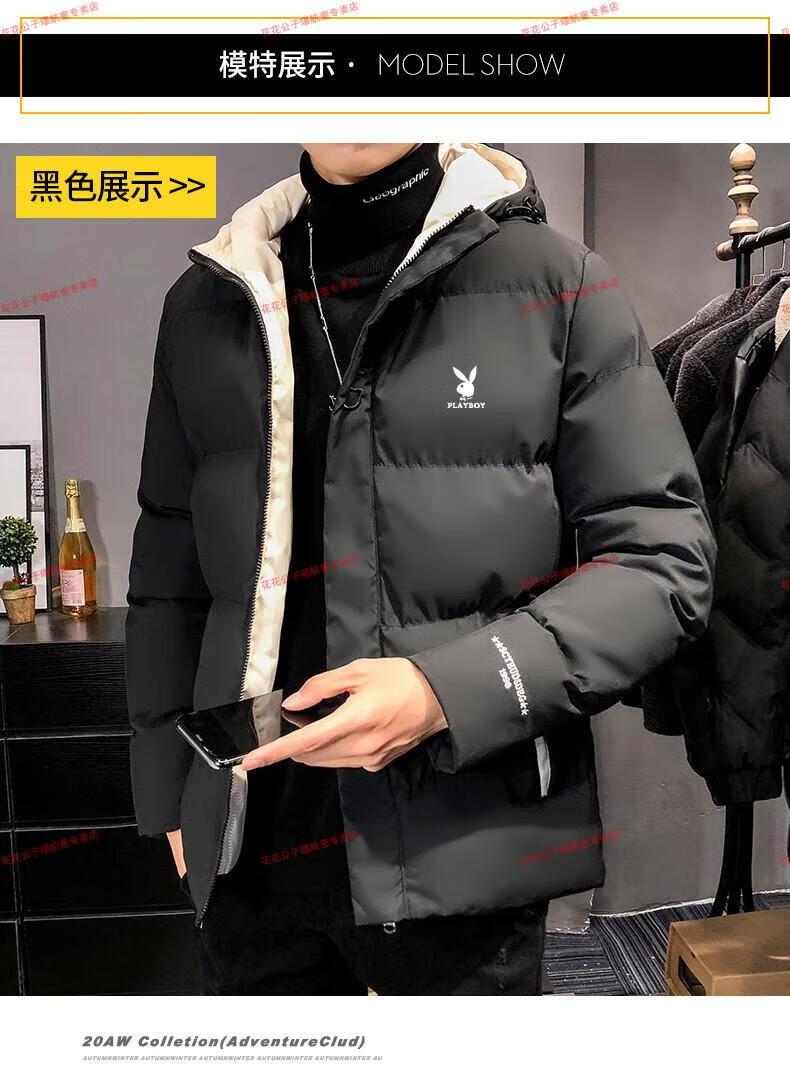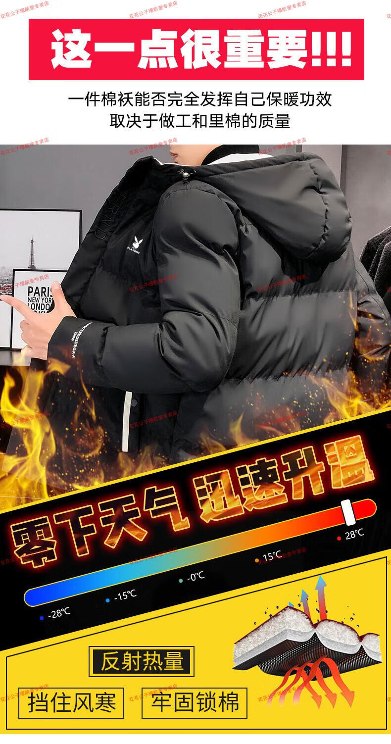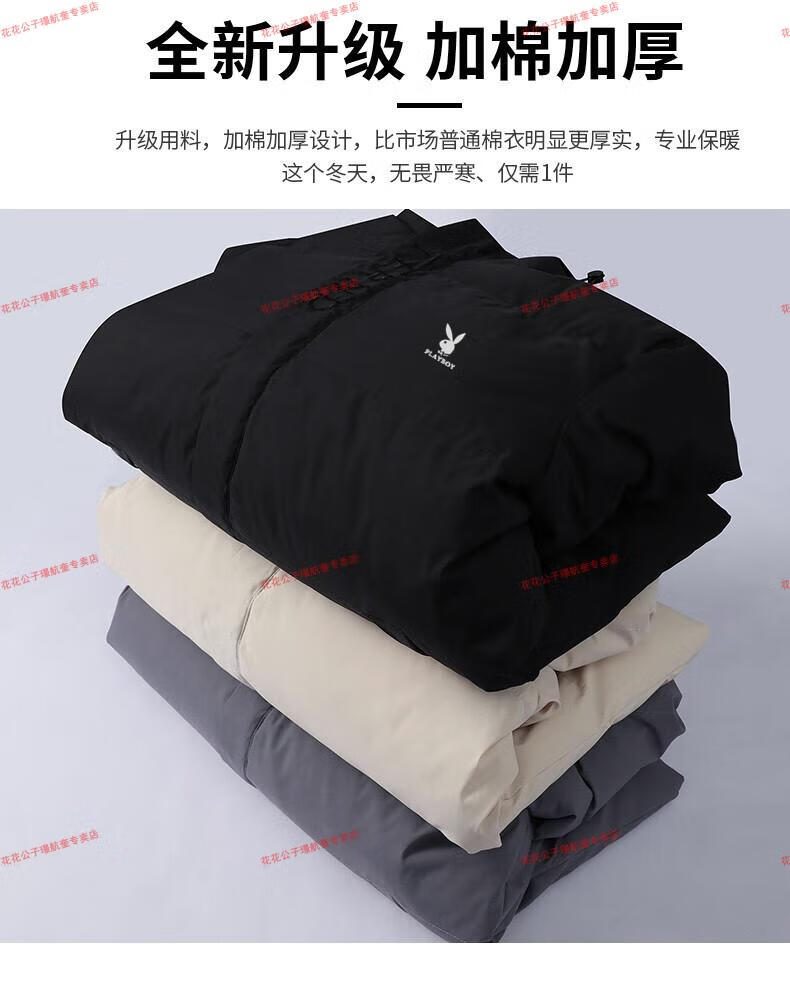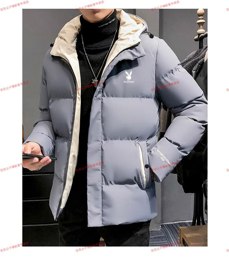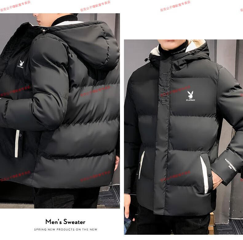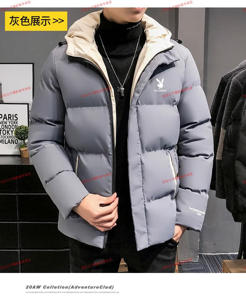 Playboy cotton-padded jacket for men, autumn and winter new trendy brand down-padded jacket, thickened hooded winter jacket, men's jacket, Khaki 8998 M Recommended 90Jin Jin is equal to 0.5kg -105Jin Jin is equal to 0.5kg