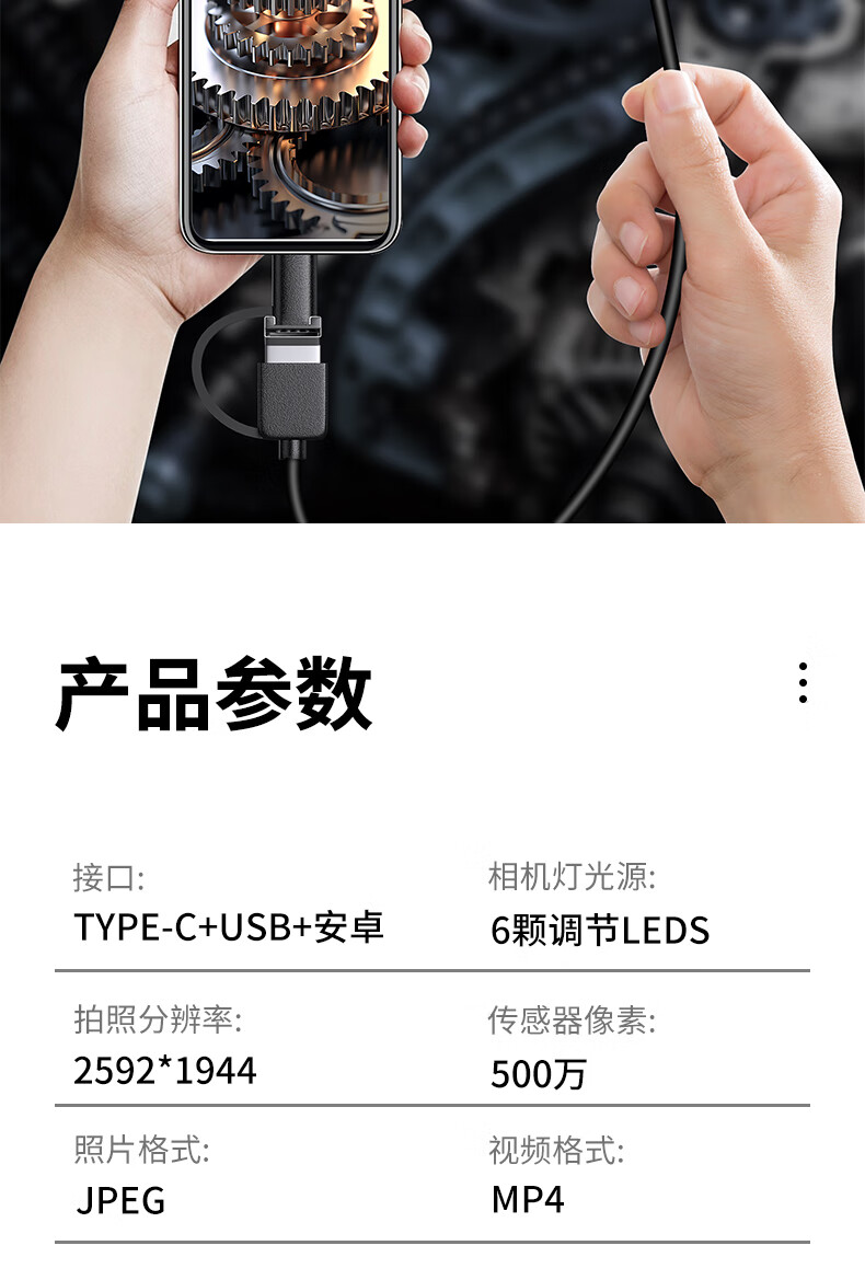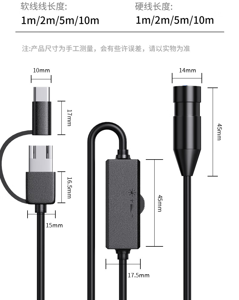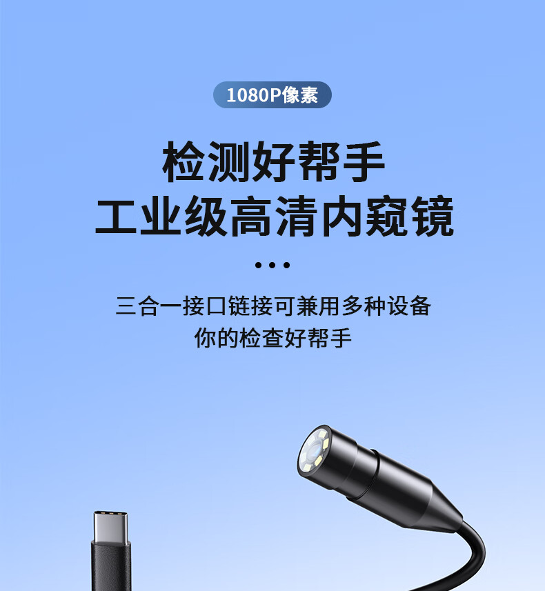 ZCF HD 5 million Android mobile phone industrial endoscope HD camera sewer car maintenance detection probe 5 million auto focus 1 meter hard line