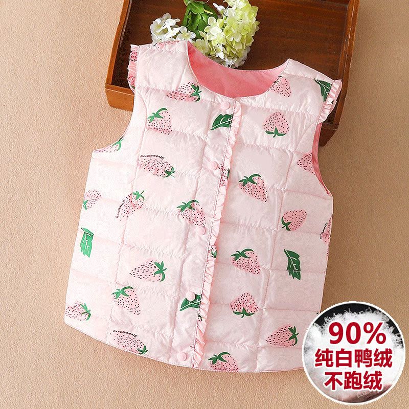 Disney (Disney) down vest children's vest outer wear girls' down jacket inner liner autumn and winter white duck down baby girl light and warm pink 110