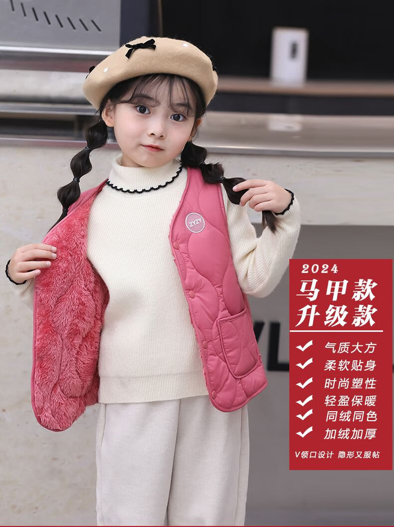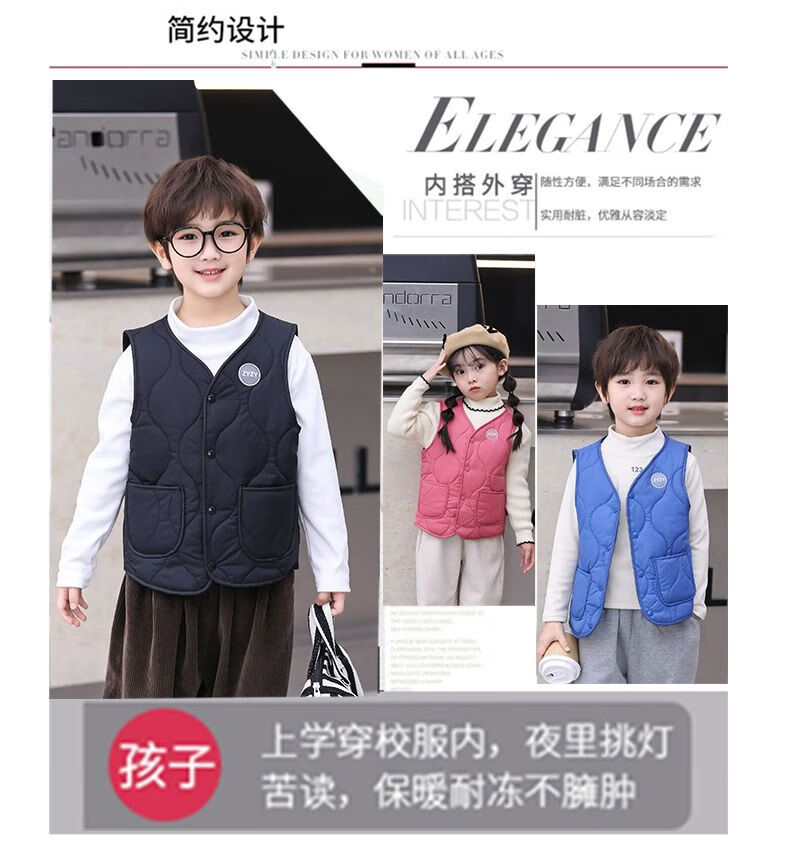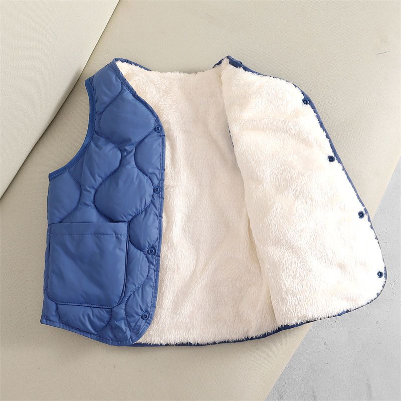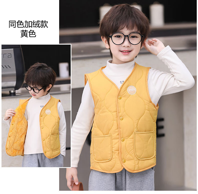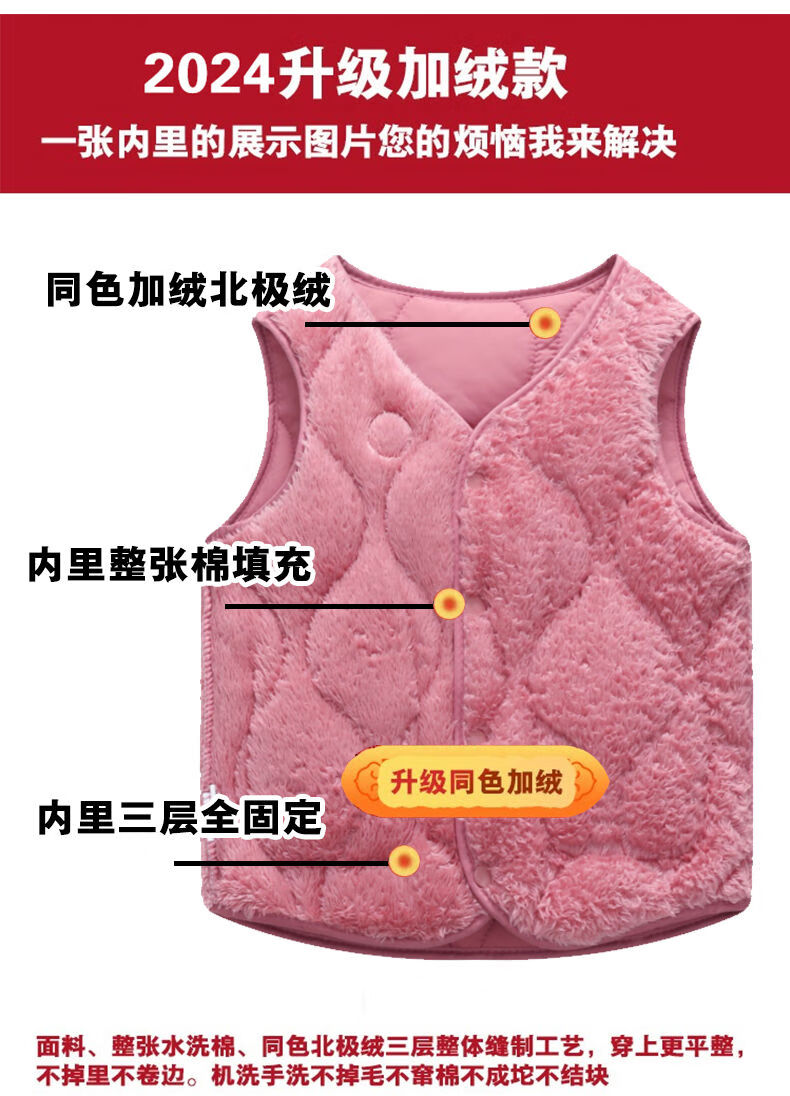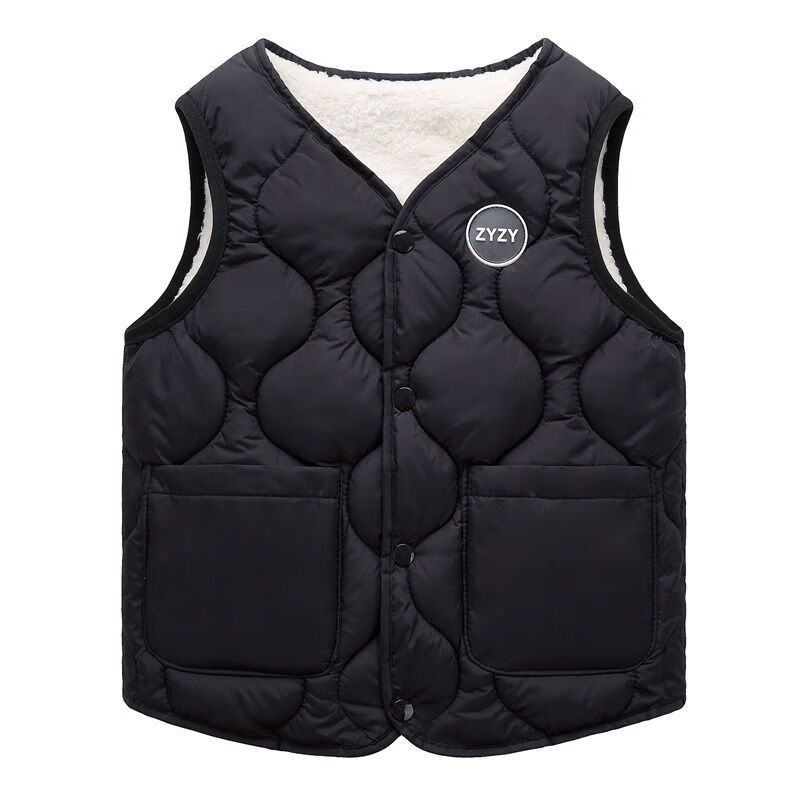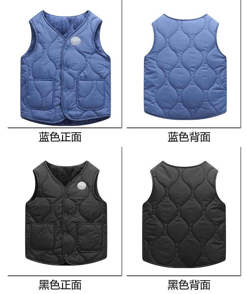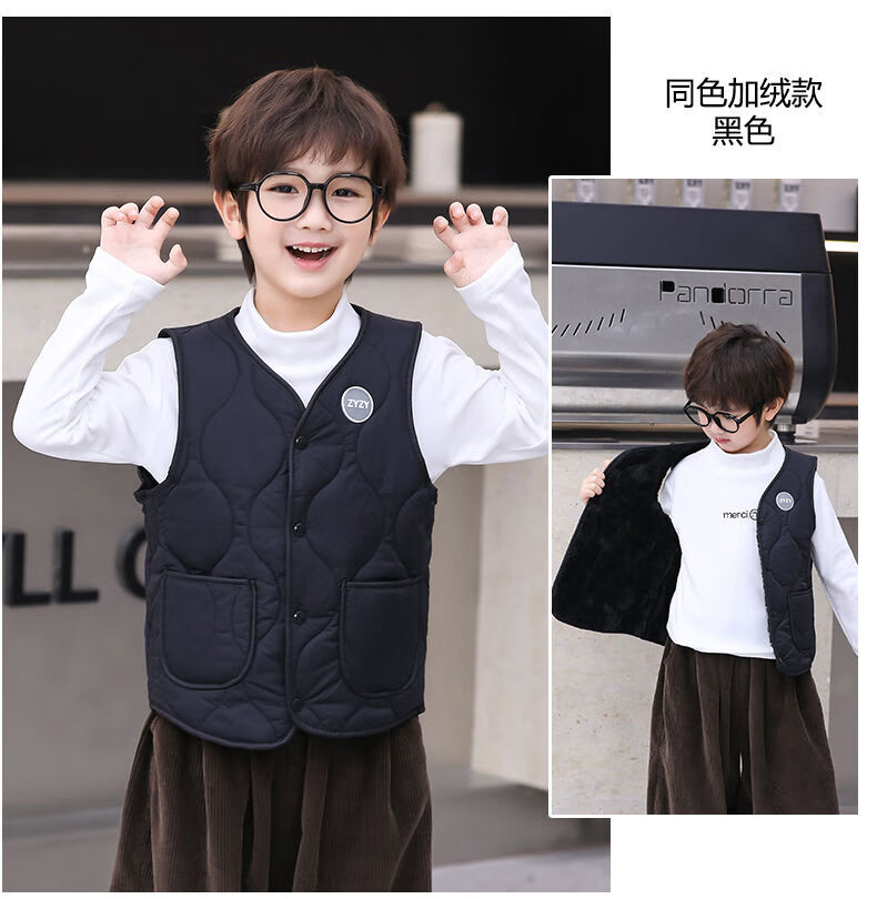 Disney (Disney) children's vest baby boys and girls plus velvet thickened baby vest spring, autumn and winter wear inside and outside down cotton vest black plus velvet 100