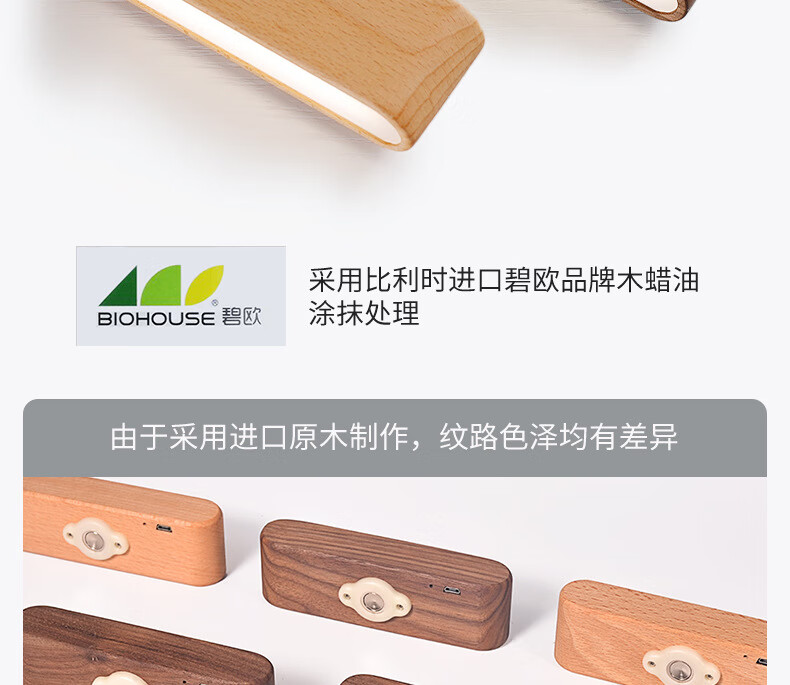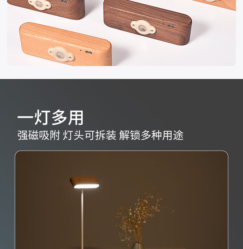 SMVP is suitable for minimalist solid wood small table lamps, charging bedside lamps, magnetic wall lamps, creative gift table lamps, student dormitory computer desk lamps, mini table lamps, beech wood - 2 pieces 4W