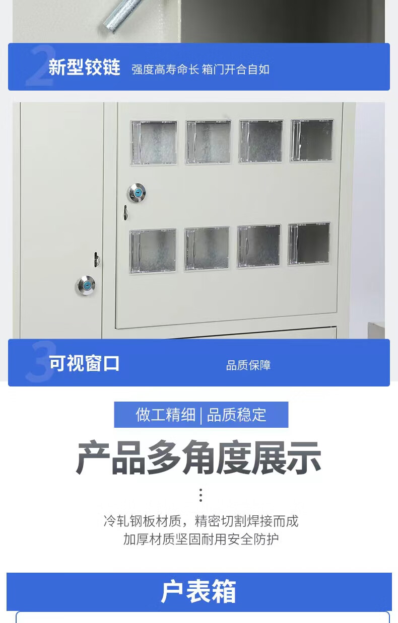 Multi-household exposed iron-electric meter box 2 households 4 meters 6 households 8 households 10 meters 12 digits 15 households concealed three-phase stainless steel meter box 10 households 950*700*170 concealed installation