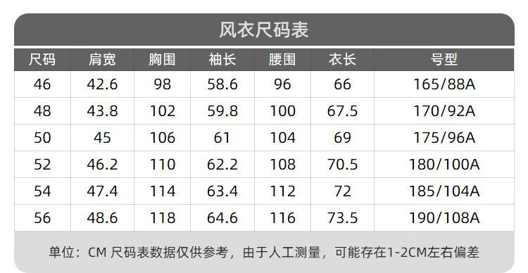 China (cm) 160-165/84-86 165-170 / 88-90 167-172 / 92-96 168-173 / 98-102 170-176 / 106-110