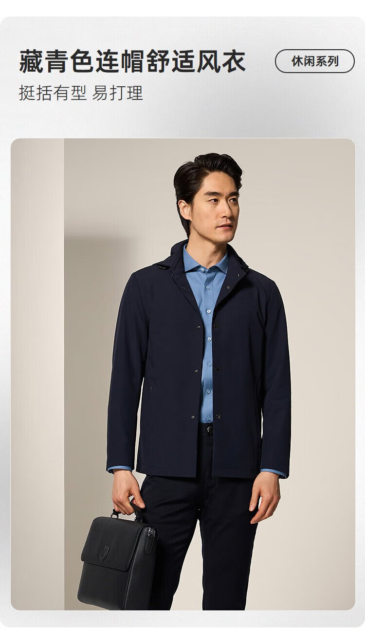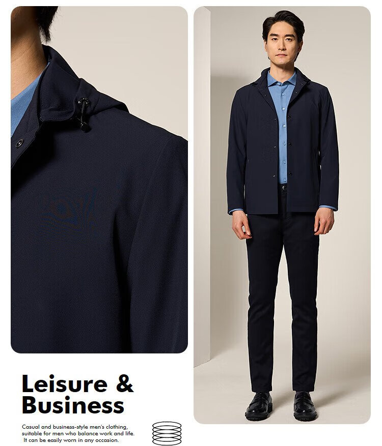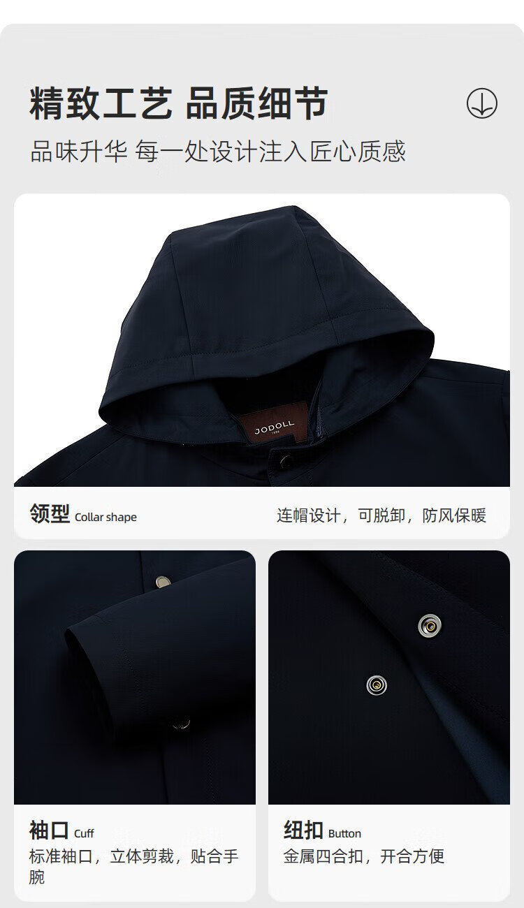 JODOLL navy blue hooded comfortable long-sleeved windbreaker men's business casual all-match urban commuter windbreaker navy blue XL 52