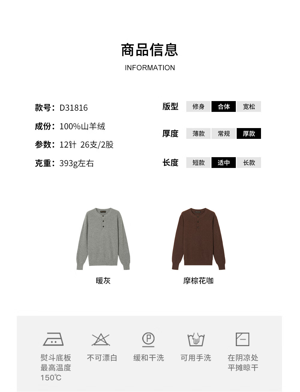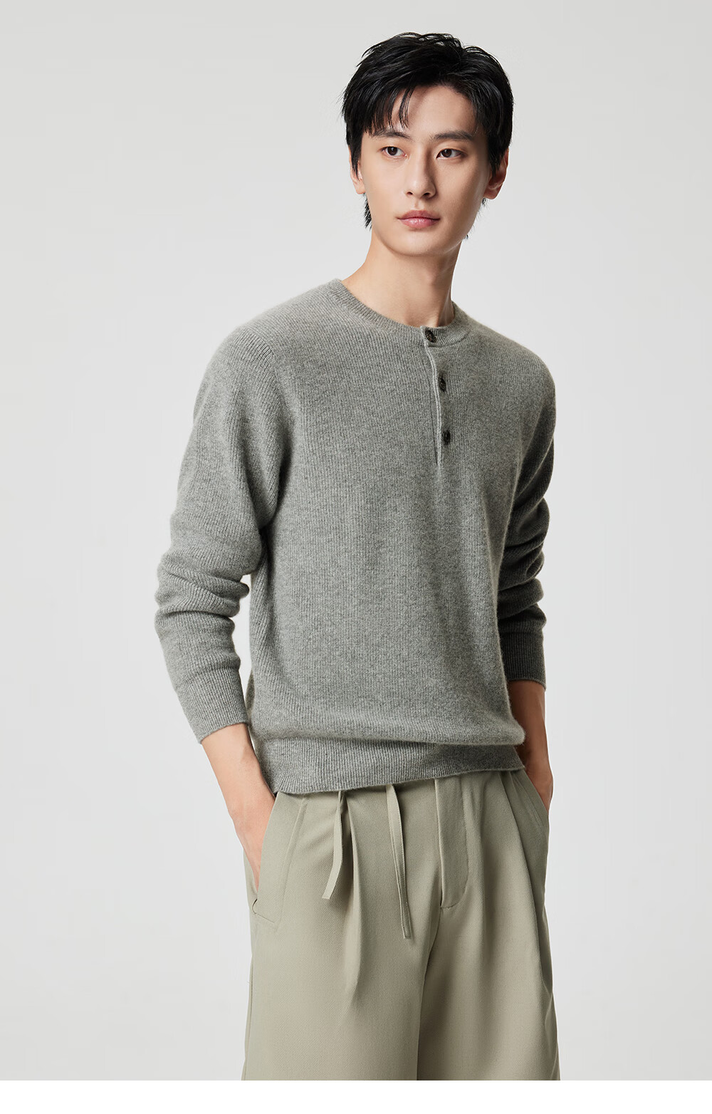 Zhenbei ZB/Zhenbei winter new pure cashmere sweater men's casual commuting Henry collar knitted pullover sweater thick section 31816 warm gray thick section 2XL (125)