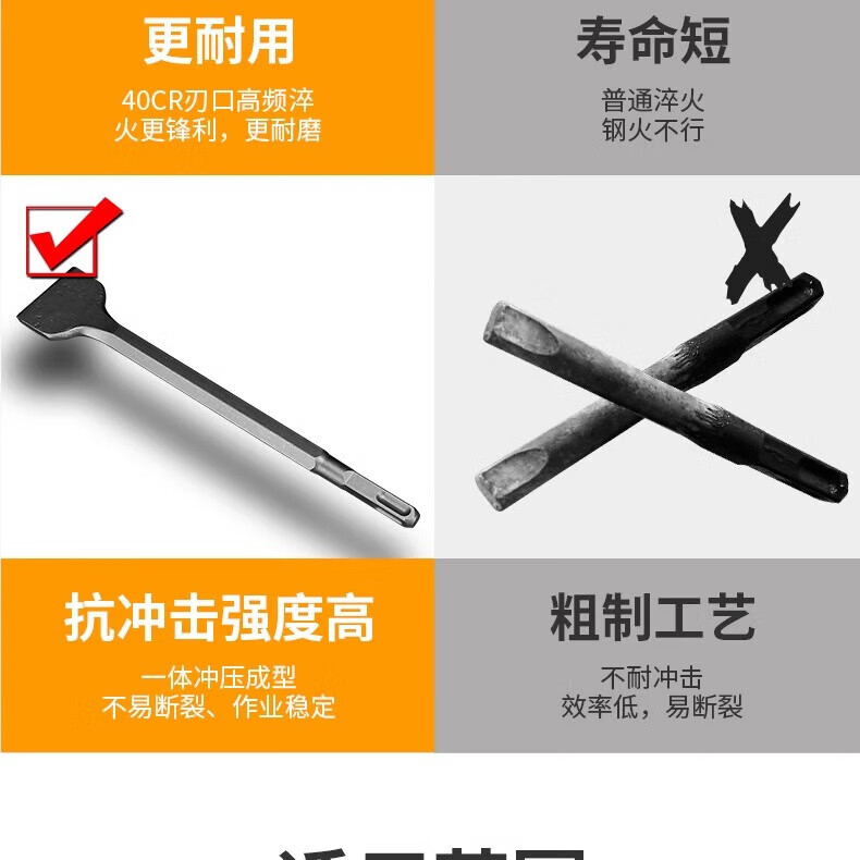 Shengxinhui electric hammer 95 electric pick chisel tip flat chisel shovel wall pick tip pick head square handle widened concrete slotted flat shovel large flat shovel special steel tip chisel