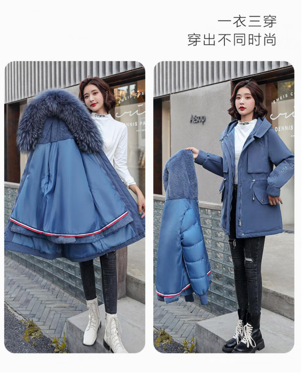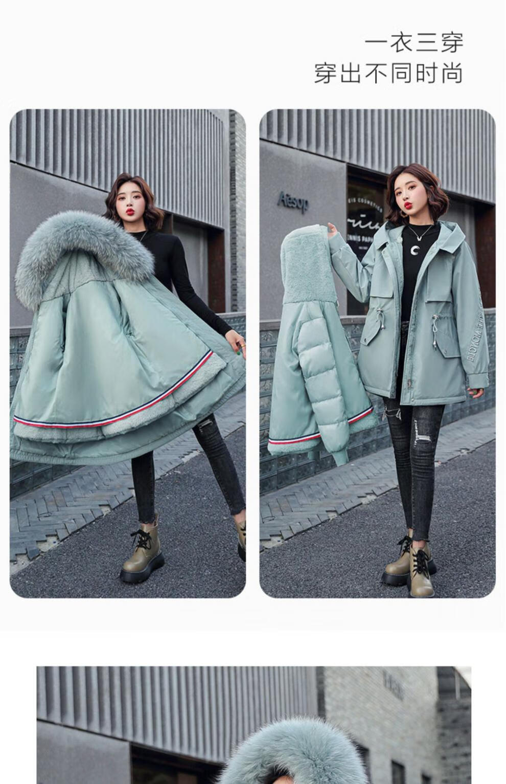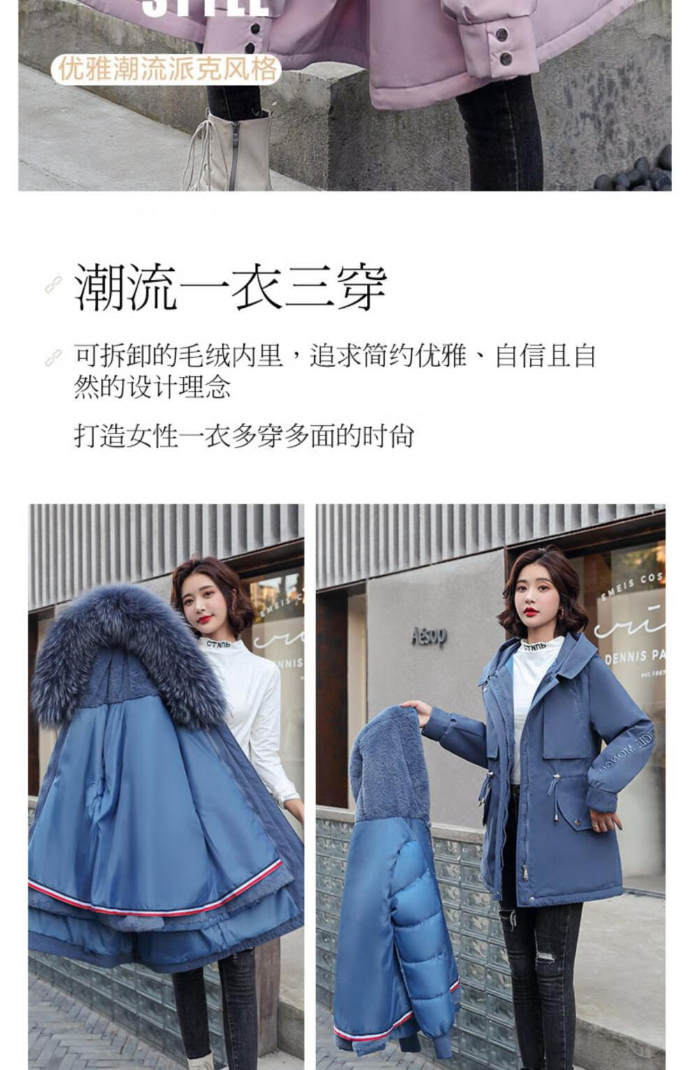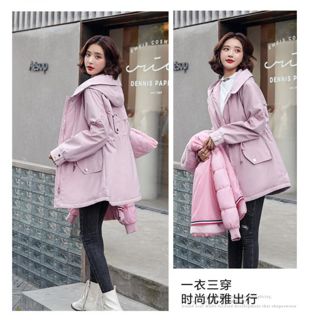 Pierre Cardin Pajama Women's 2025 New Autumn and Winter Small People's Cotton Clothes Detachable Cotton Clothes and Velvet Thickened Jackets 923 Bean Green Detachable Velvet and Thickened Style L 100-115Jin Jin is equal to 0.5 kg