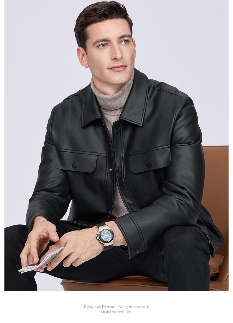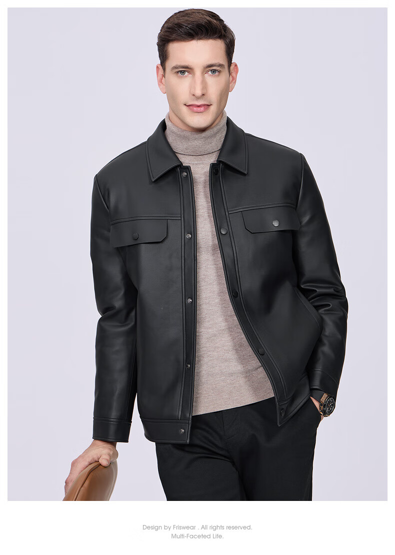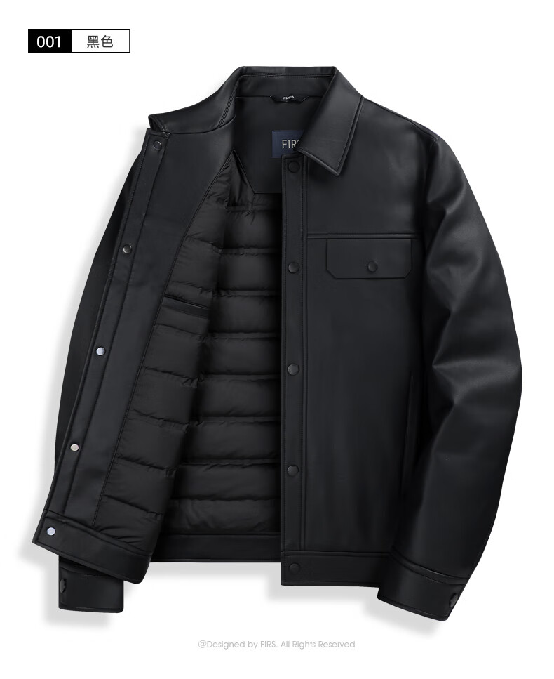 Shanshan (FIRS) Down Liner Leather Jacket Men's 2025 Winter New Business Commuting Warm Casual Jacket 366 Black 2XL 185/100A (Recommended 155-170Jin Jin equals 0.5kg)