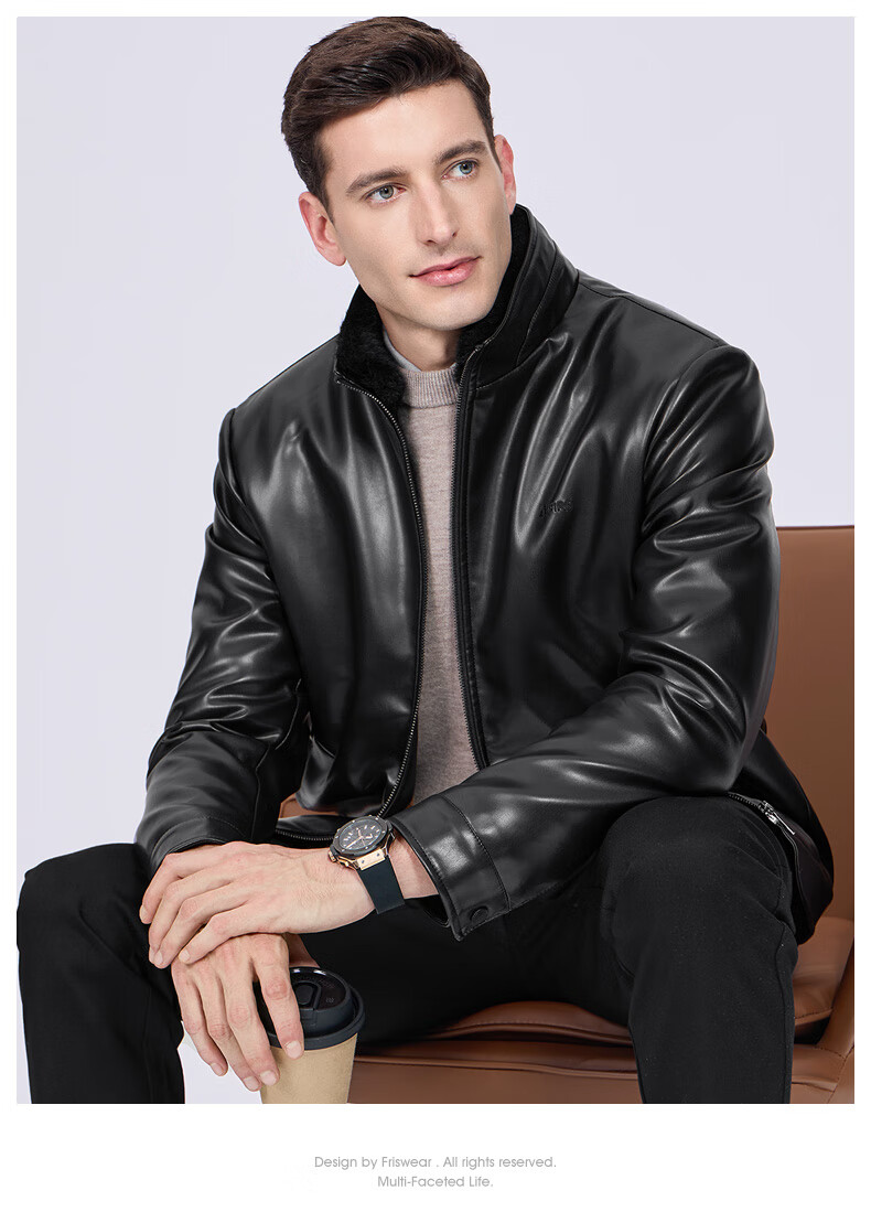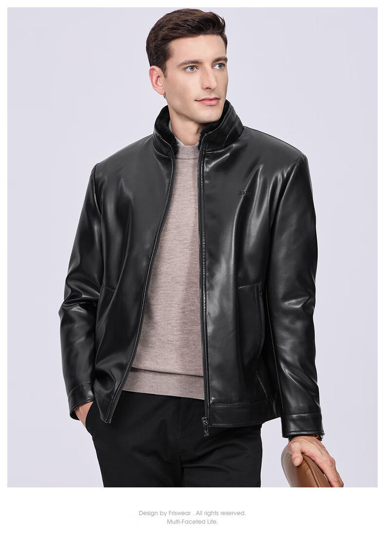 Shanshan (FIRS) Imitation Mink Collar Velvet Leather Jacket Men's 2025 Winter New Thick Warm Business Commuting Jacket 372 Black S 165/84A (Recommended 80-110Jin Jin equals 0.5kg)