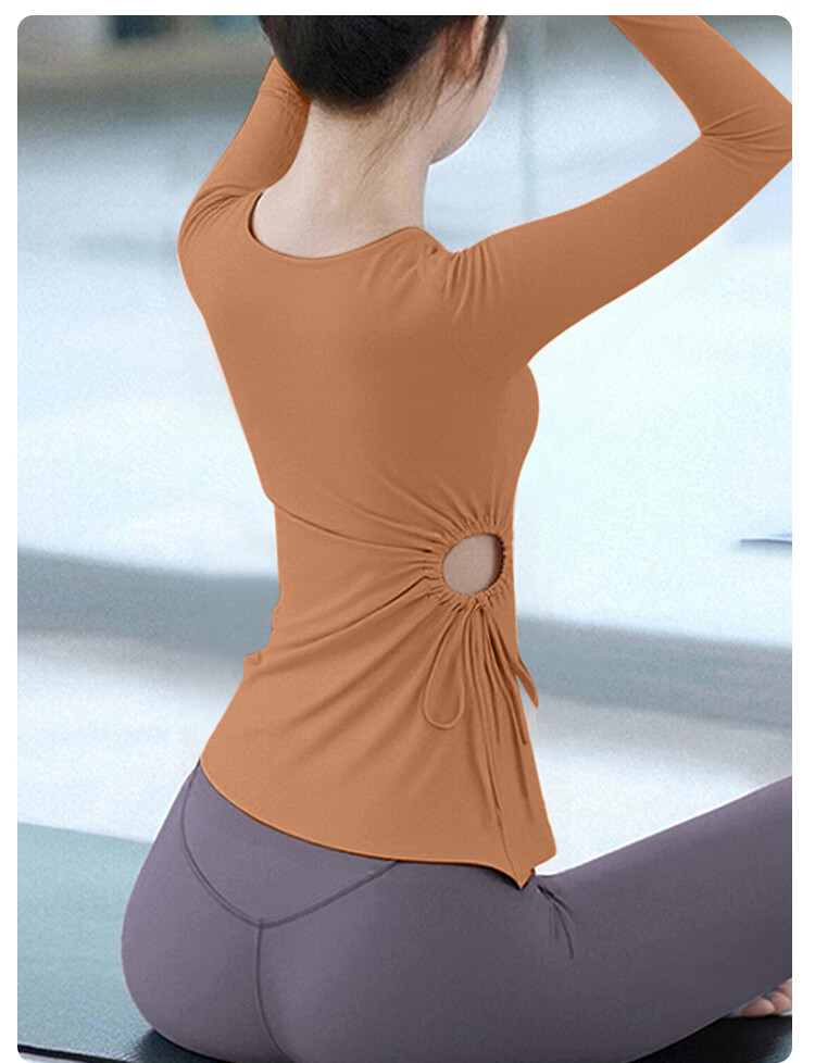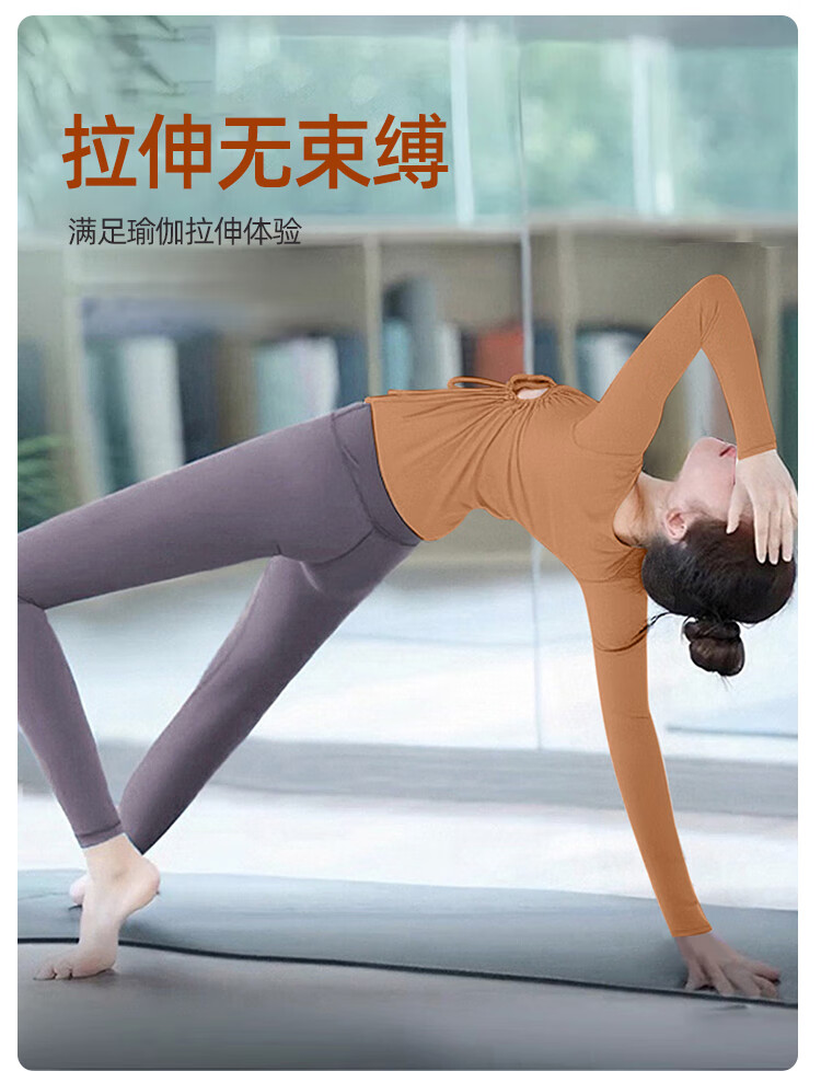 Shuangxiu Yoga Wear Suit for Women 2025 New Style Covering Buttocks and Beautiful Sports Top Professional Pilates Training Fitness Wear Log Brown Top + Dove Gray Pants M 100-110