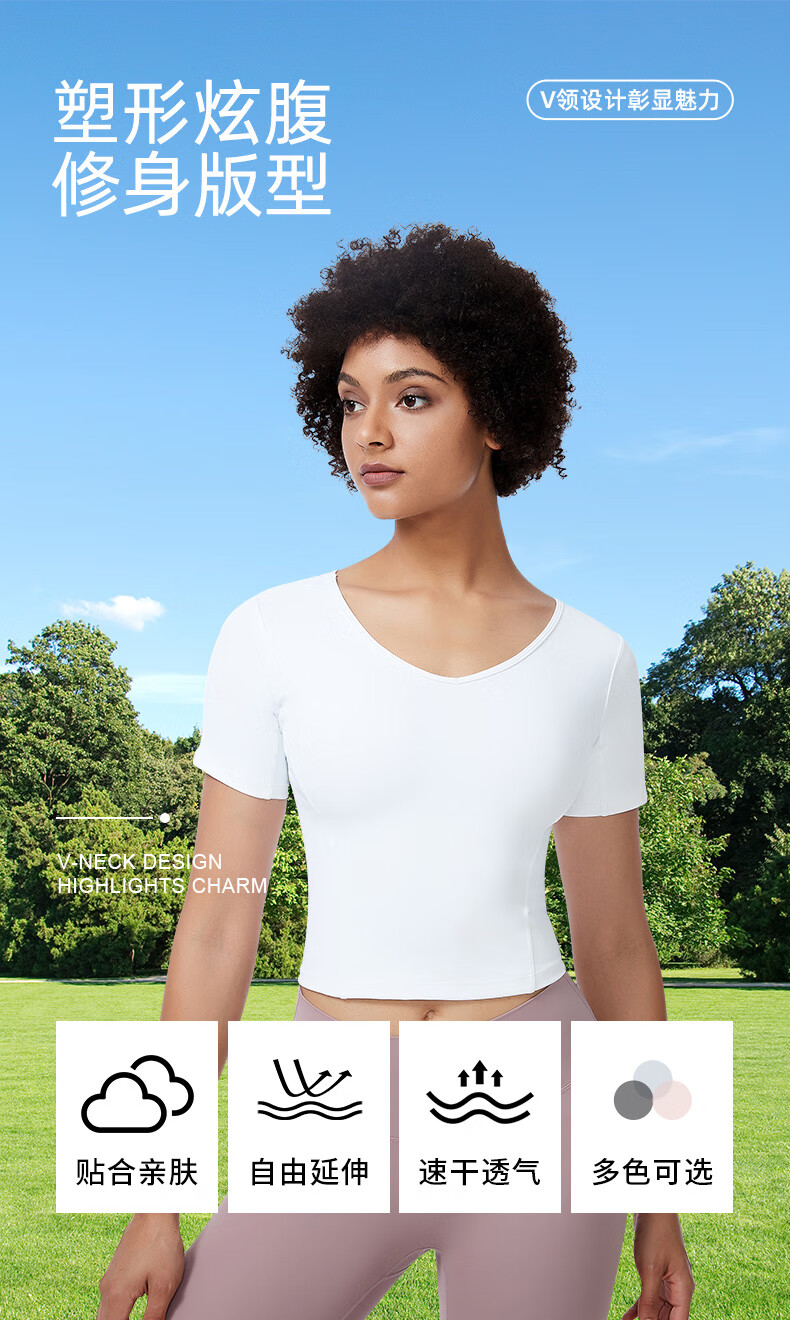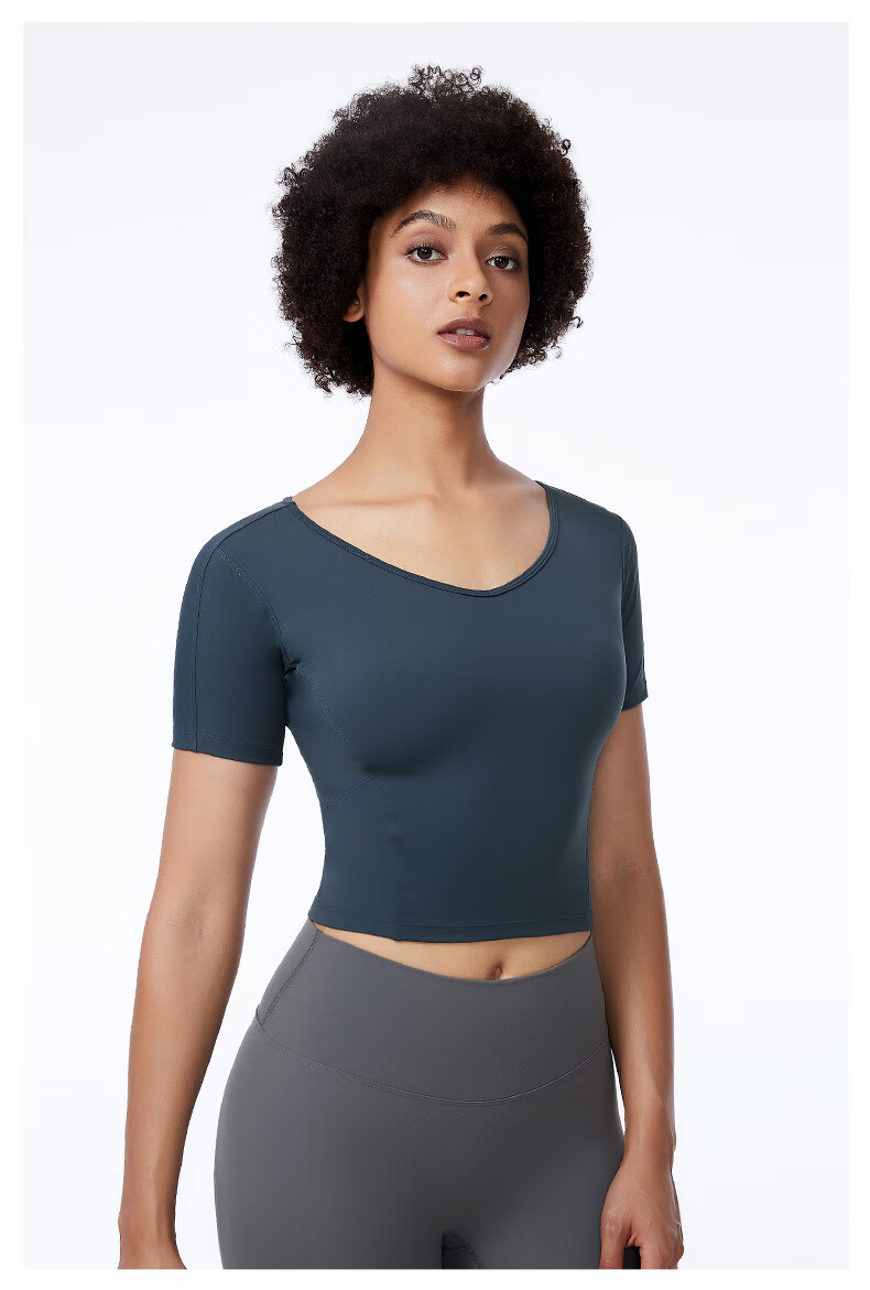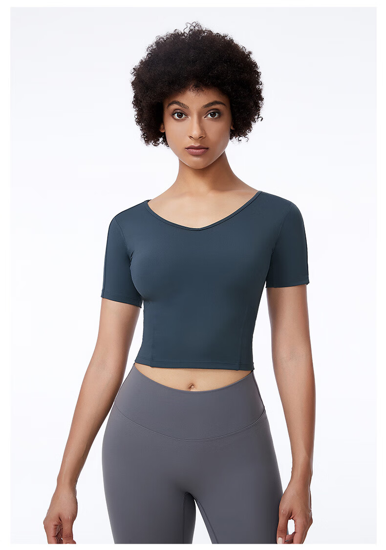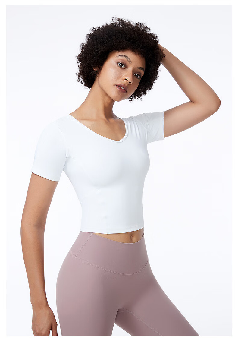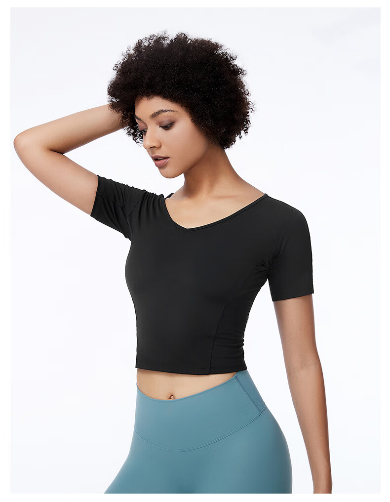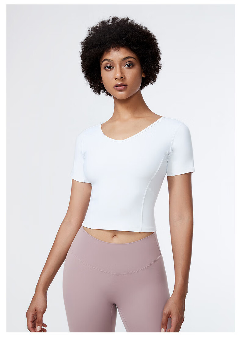 V-neck slim slimming yoga wear top for women professional Pilates short-sleeved T-shirt high elastic breathable sports fitness wear pink (YJY21-10-4) M
