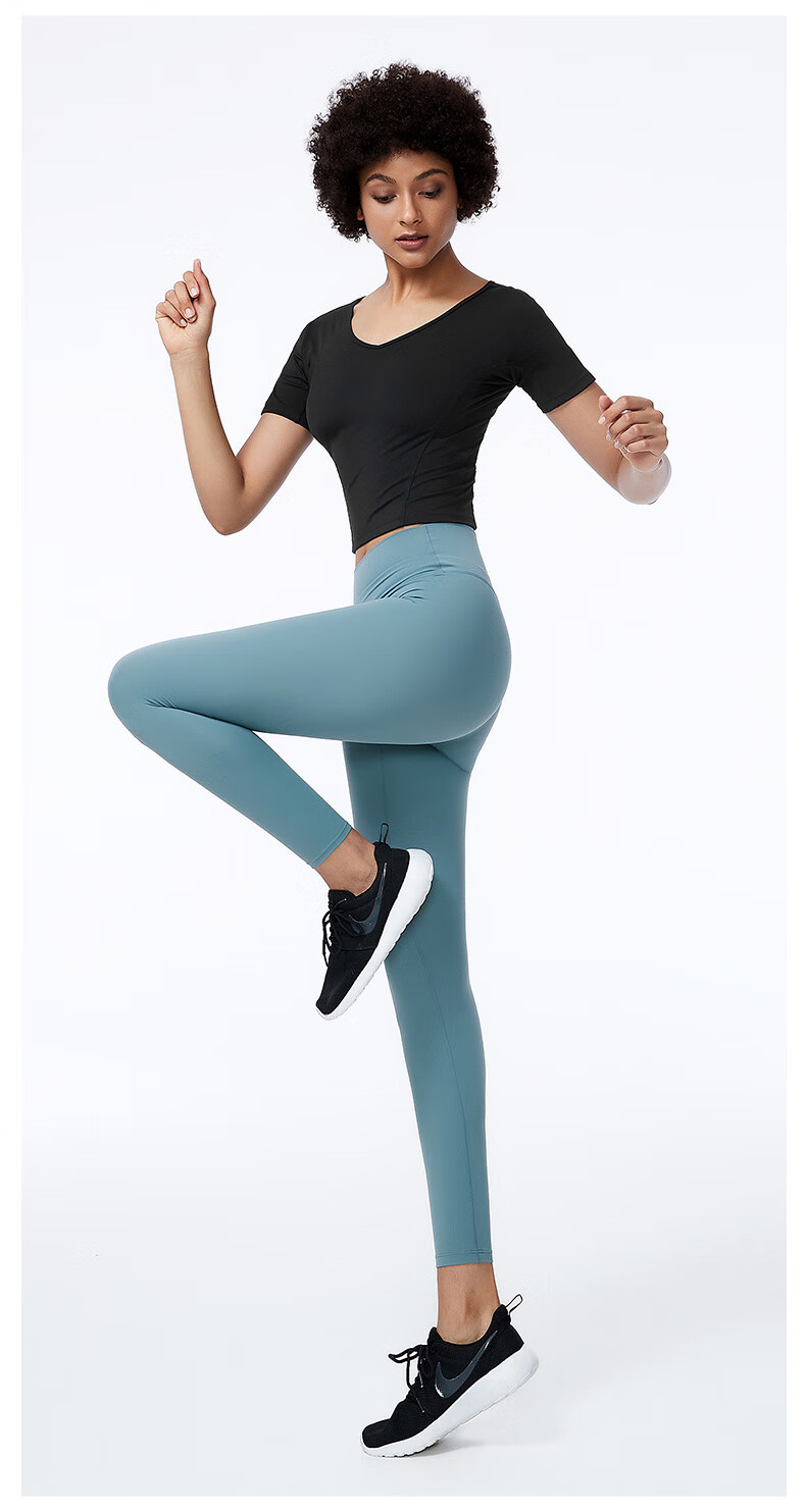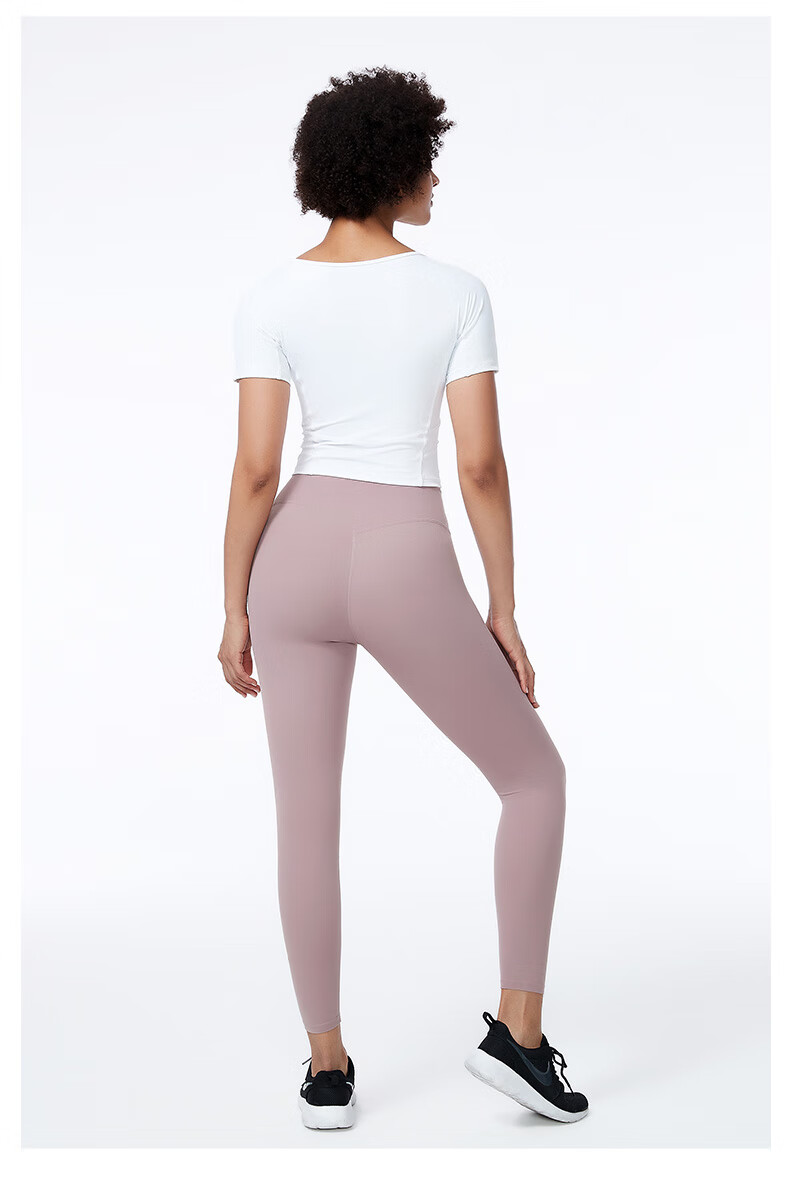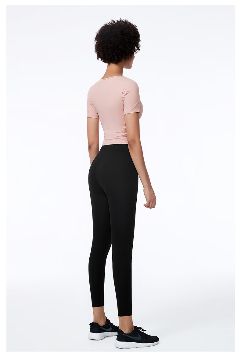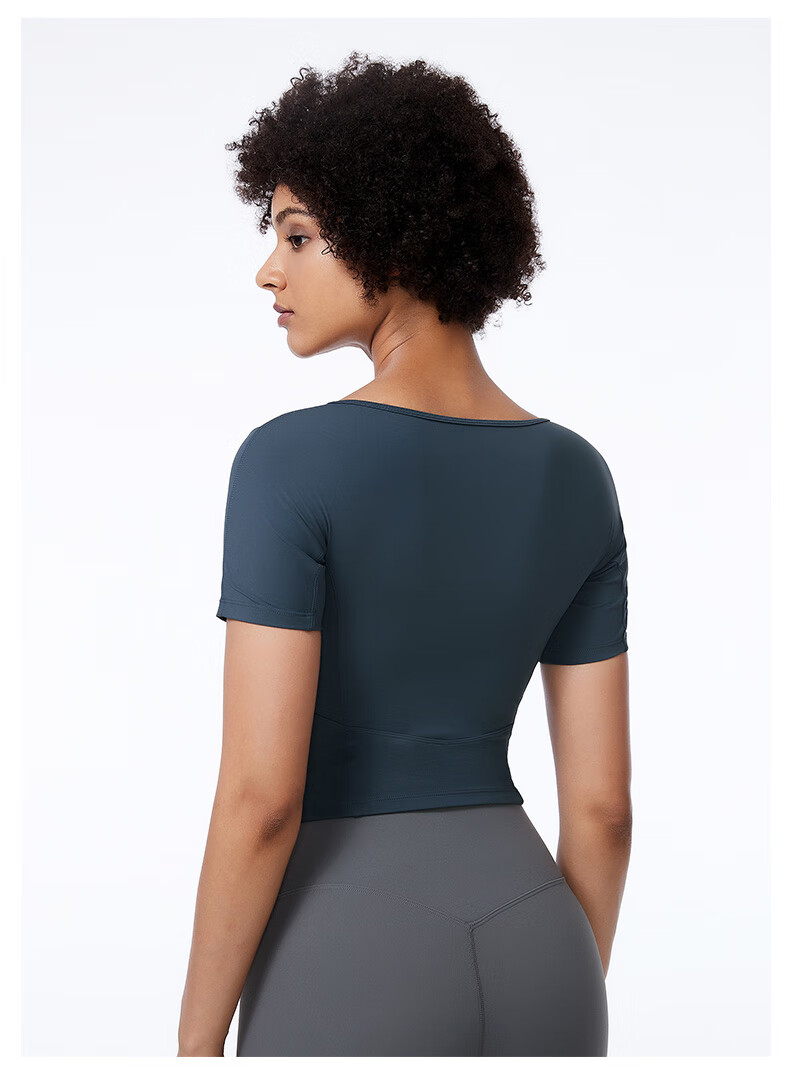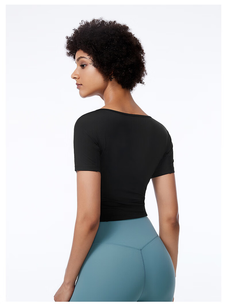 V-neck slim slimming yoga wear top for women professional Pilates short-sleeved T-shirt high elastic breathable sports fitness wear pink (YJY21-10-4) M