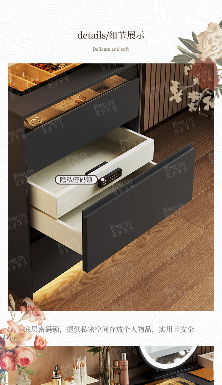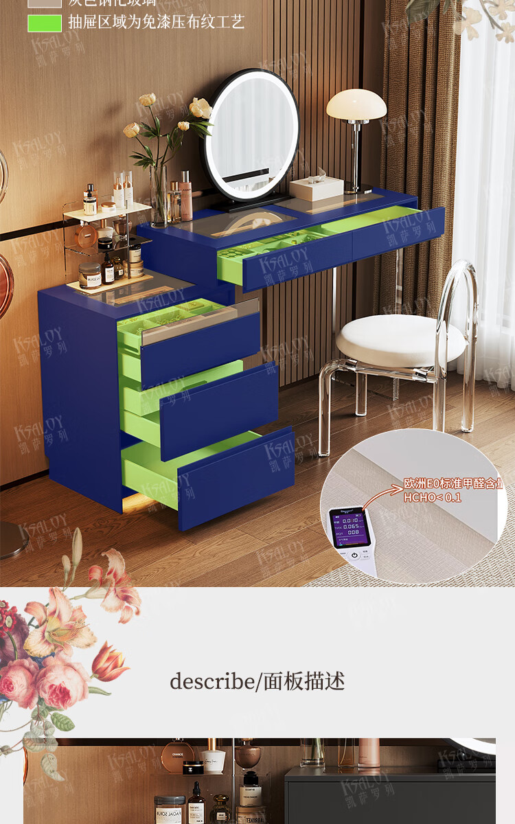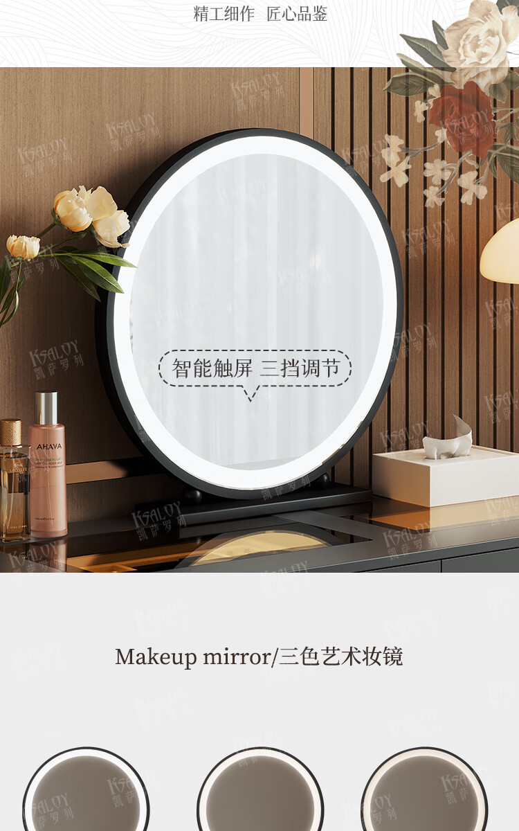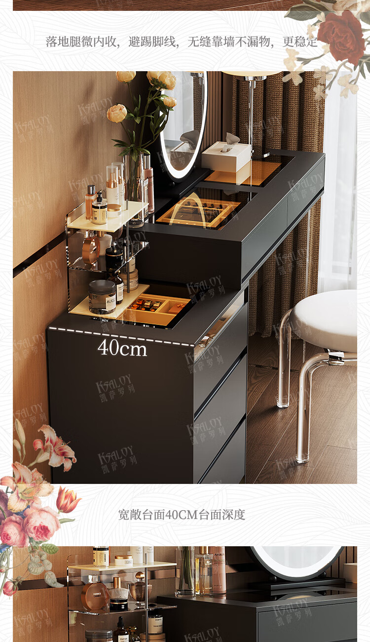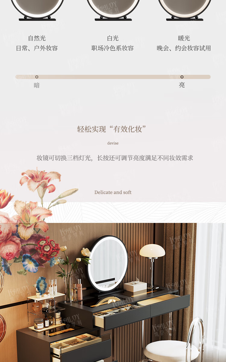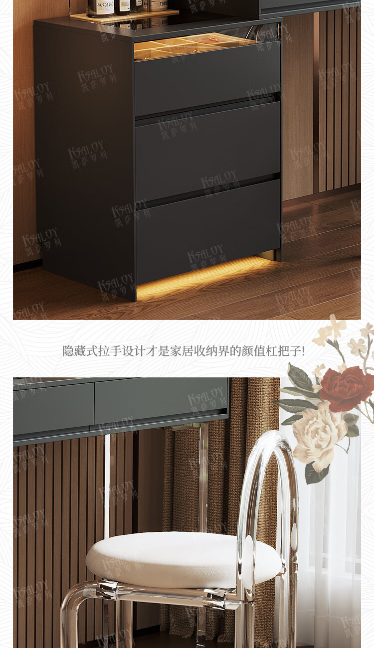 KSALOY Italian dressing table and drawer integrated bedroom small apartment storage cabinet light luxury high-end dressing table jewelry display cabinet warm white dressing table + 0.5 meter three drawer cabinet + LED round mirror + acrylic chair 100cm dressing table overall solid wood multi-layer