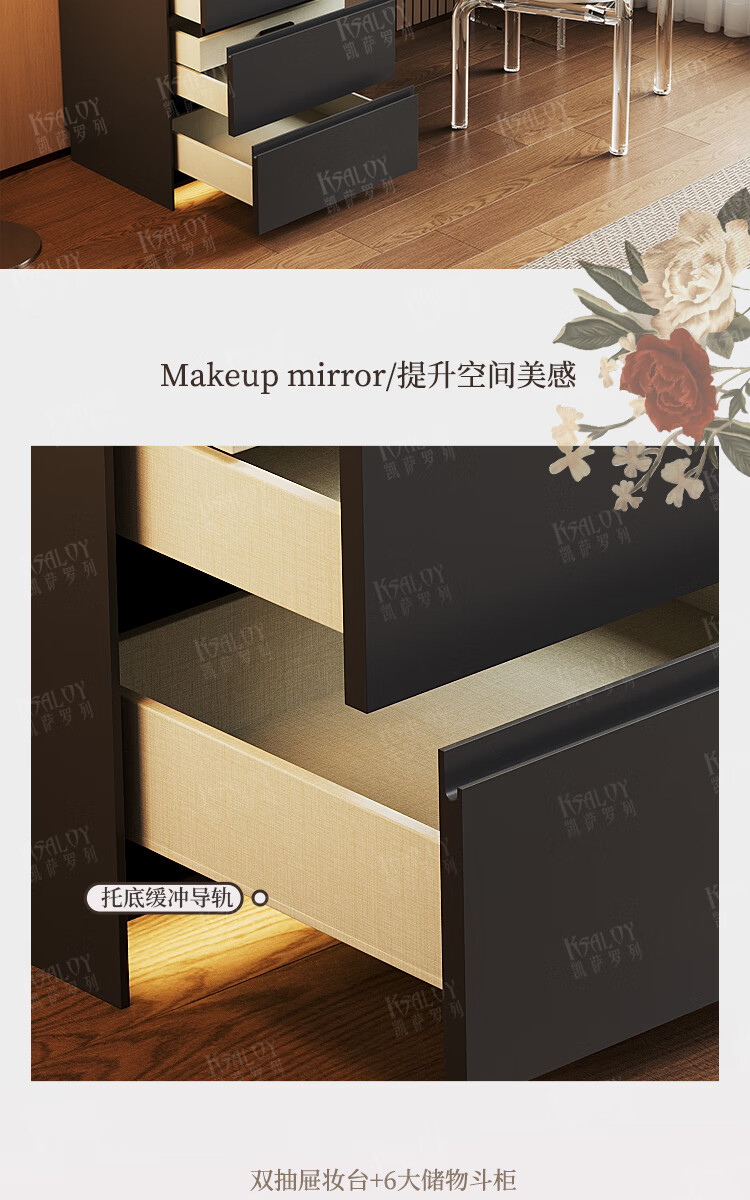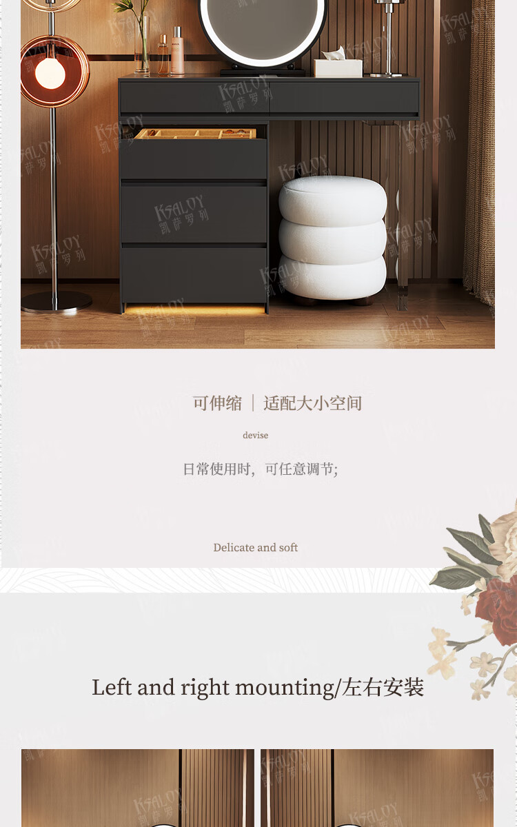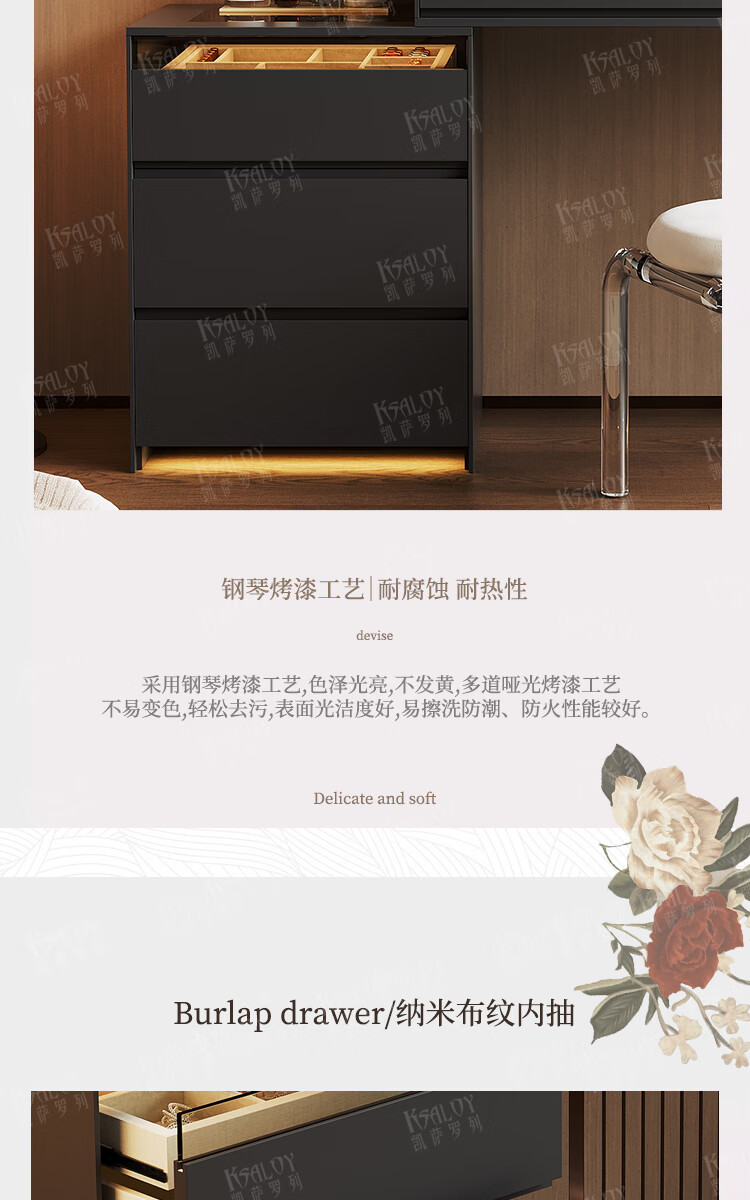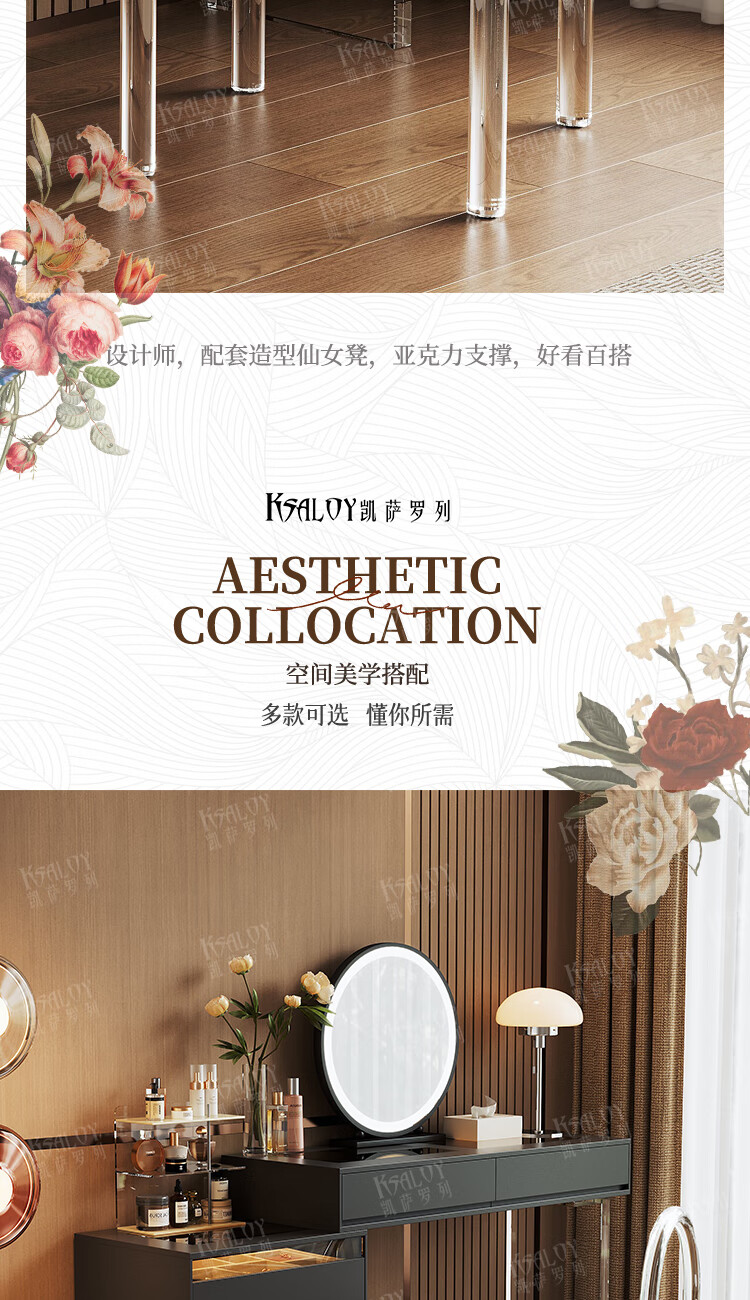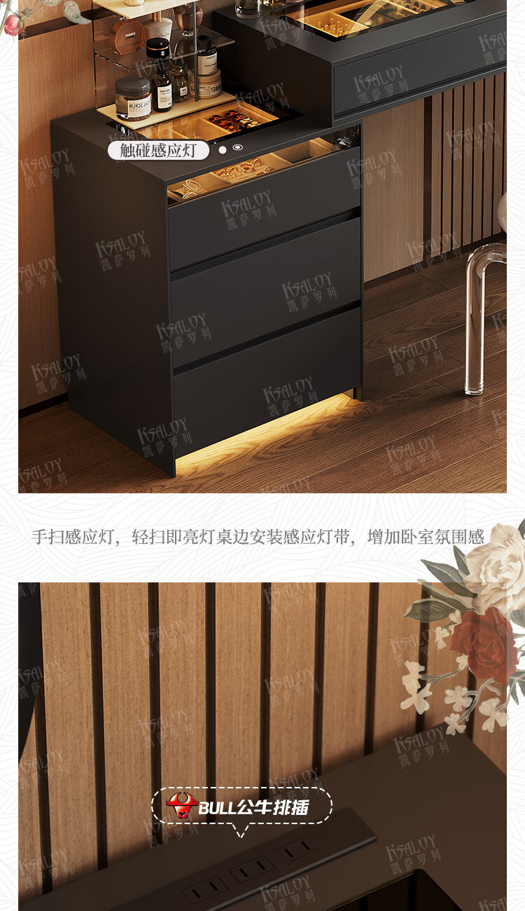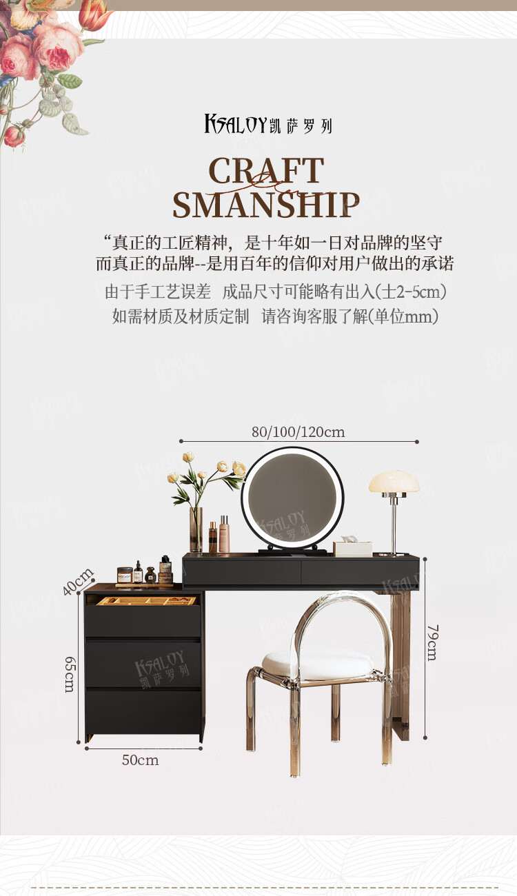 KSALOY Italian dressing table and drawer integrated bedroom small apartment storage cabinet light luxury high-end dressing table jewelry display cabinet warm white dressing table + 0.5 meter three drawer cabinet + LED round mirror + acrylic chair 100cm dressing table overall solid wood multi-layer