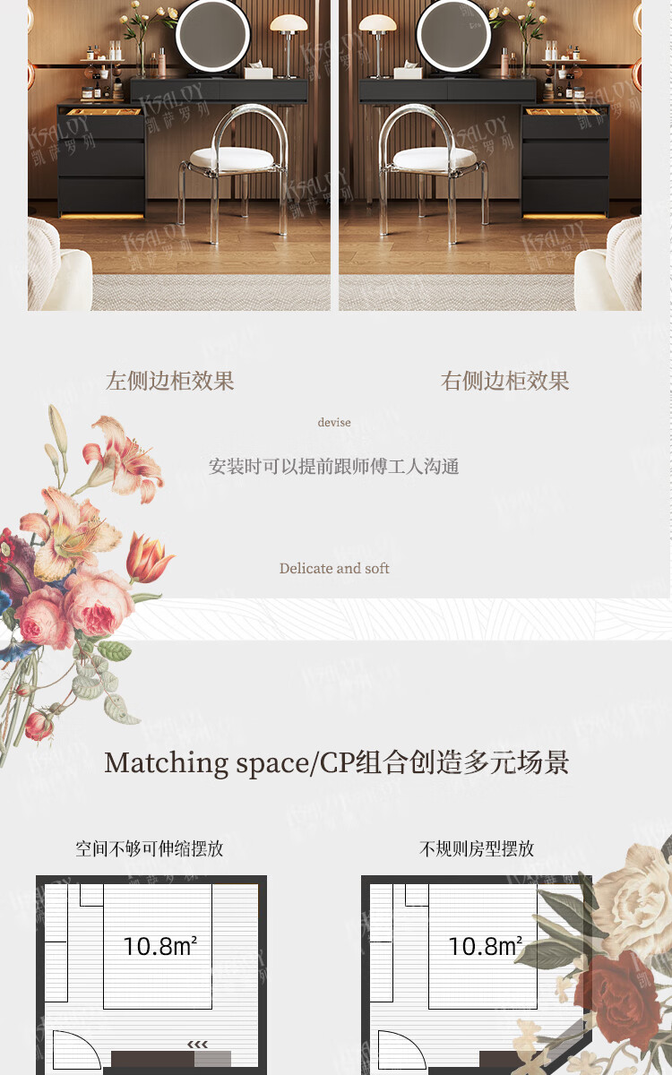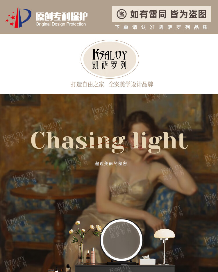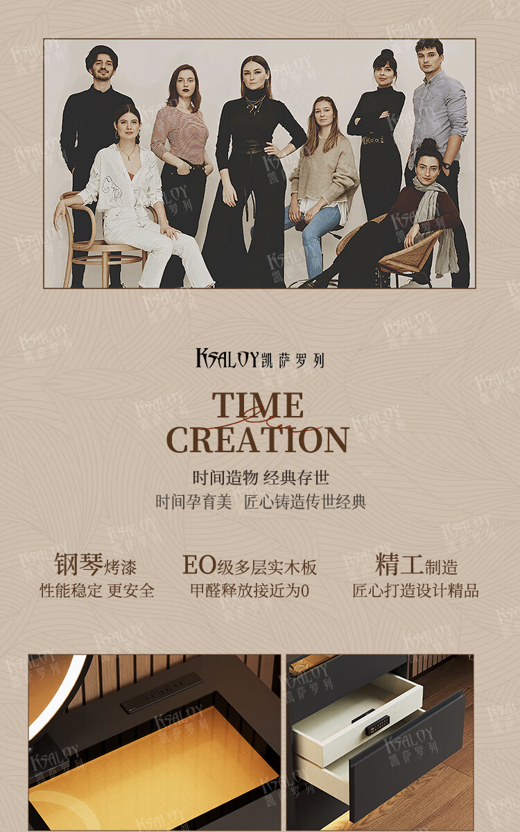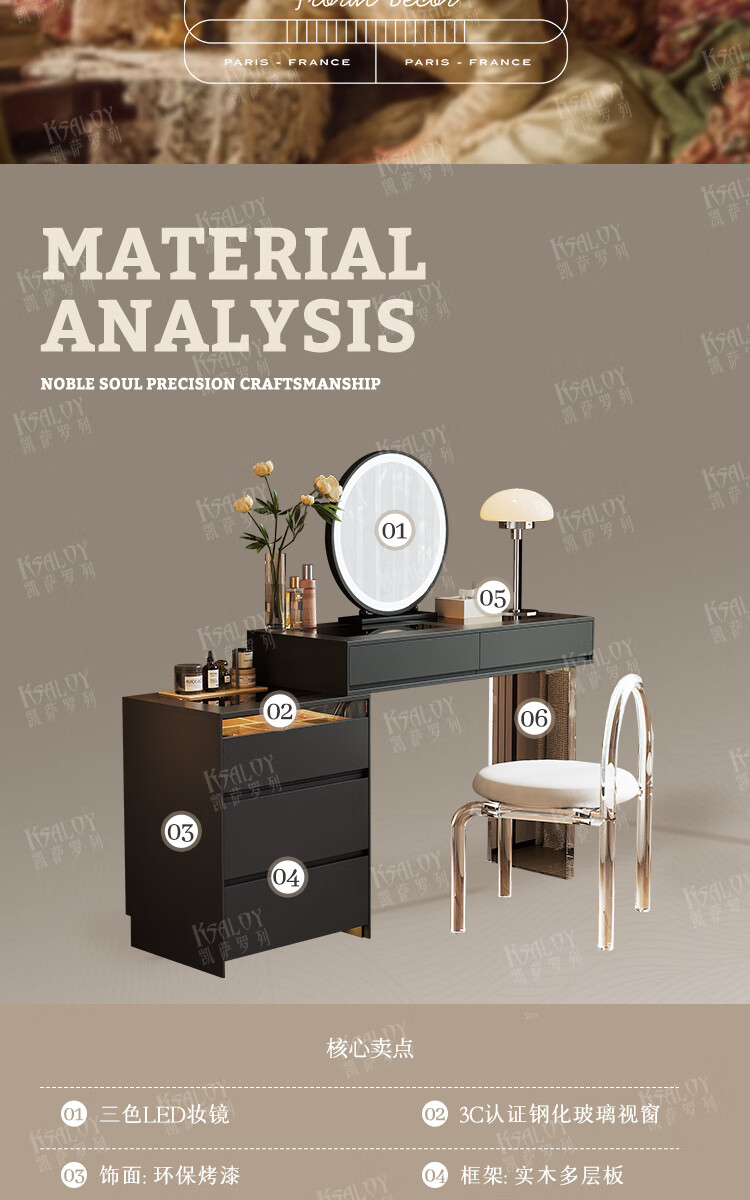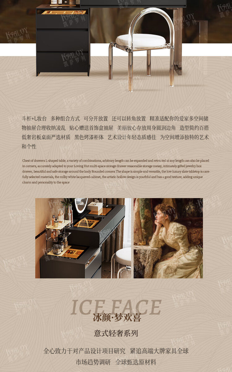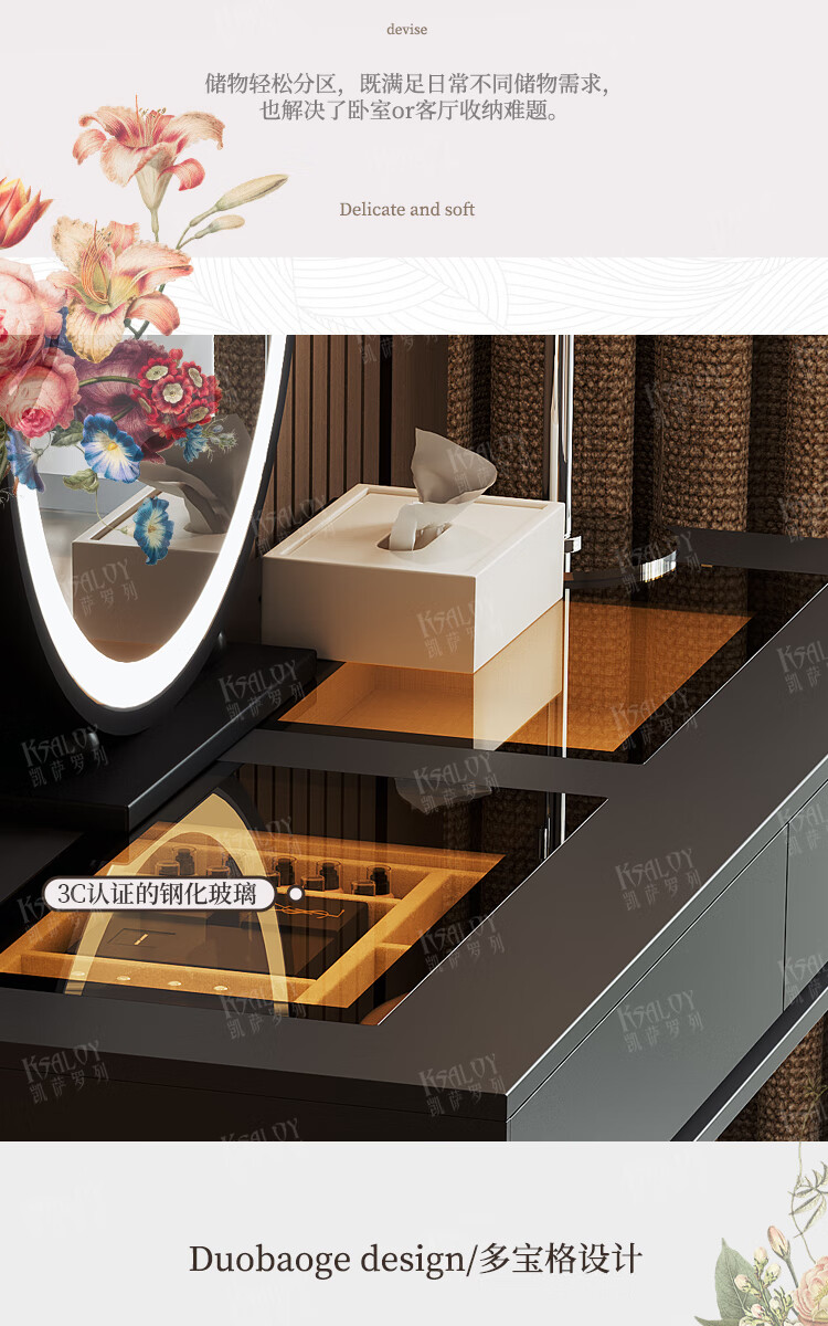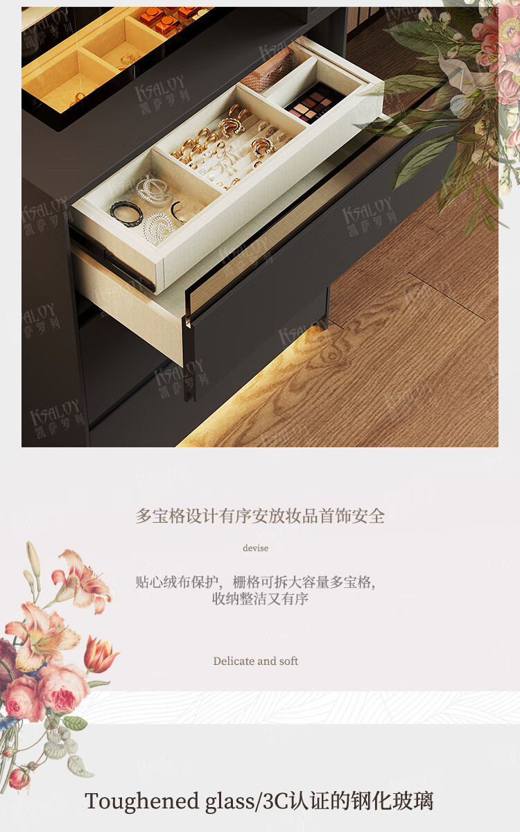 KSALOY Italian dressing table and drawer integrated bedroom small apartment storage cabinet light luxury high-end dressing table jewelry display cabinet warm white dressing table + 0.5 meter three drawer cabinet + LED round mirror + acrylic chair 100cm dressing table overall solid wood multi-layer