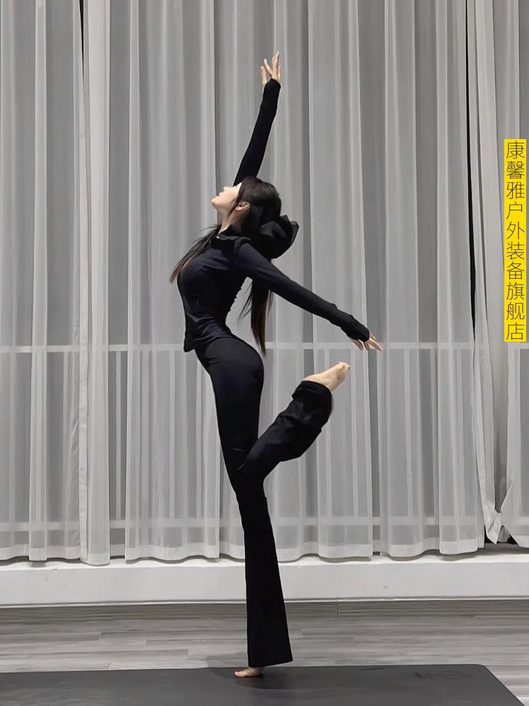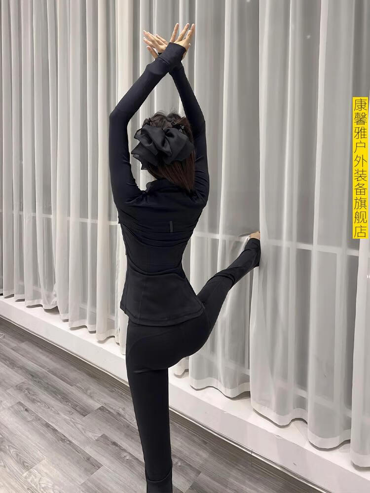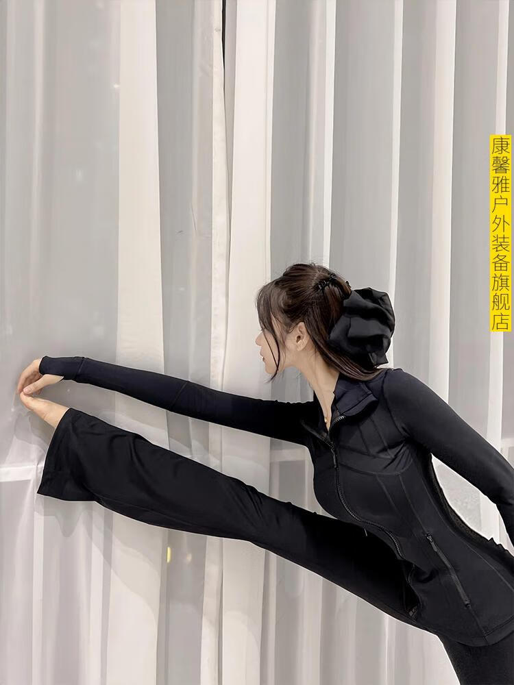 Aoyanlai autumn and winter yoga clothes for women 2025 new fitness sports tops Pilates training clothes set black jacket + black bell-bottom pants - official flagship new authentic S (85-100)