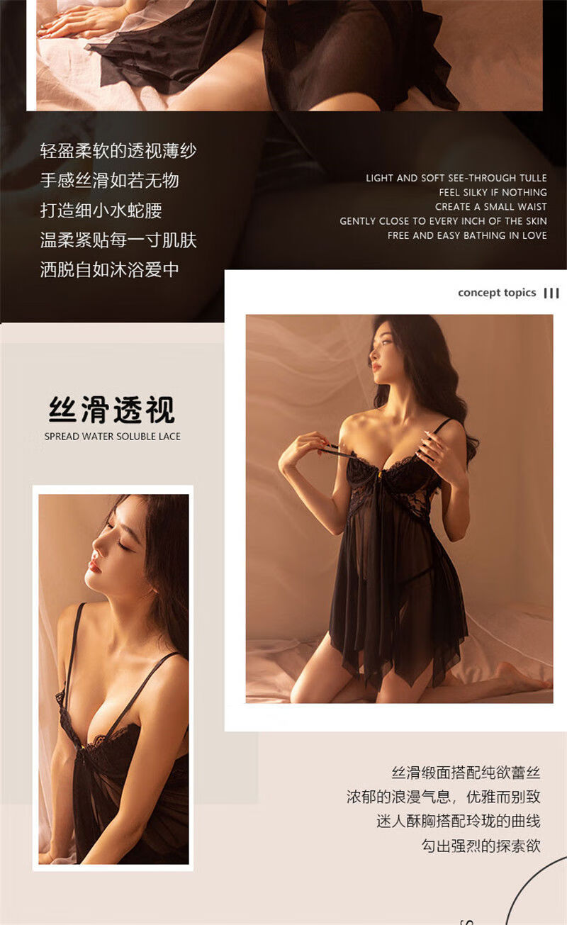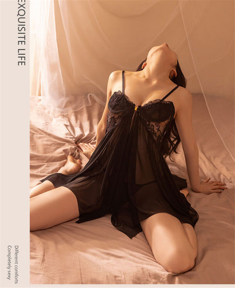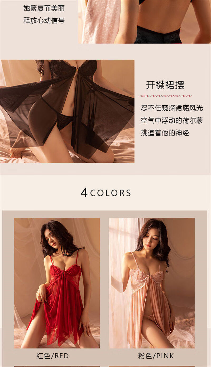 Large size pleasurable lingerie sexy lace pajamas women's underwire push-up front slit hot uniform 200Jin Jin equals 0.5kg fat burgundy underwire nightgown thong one size