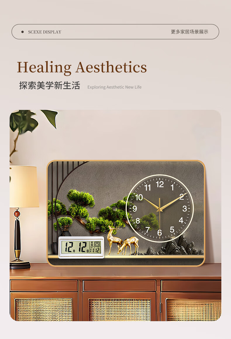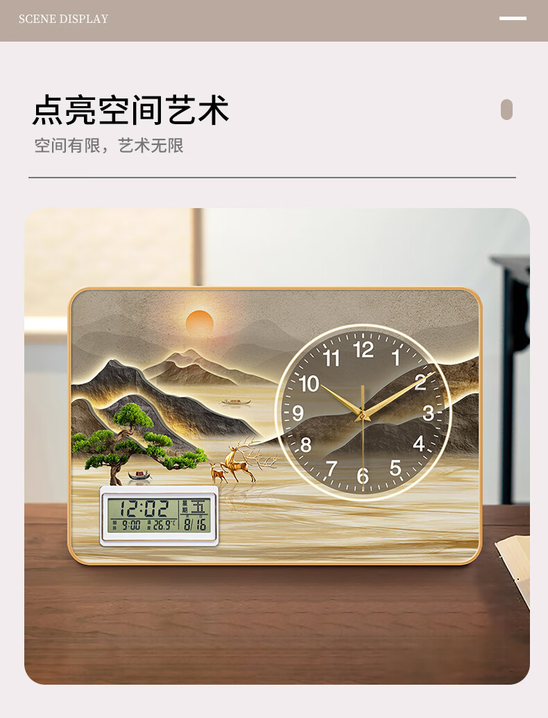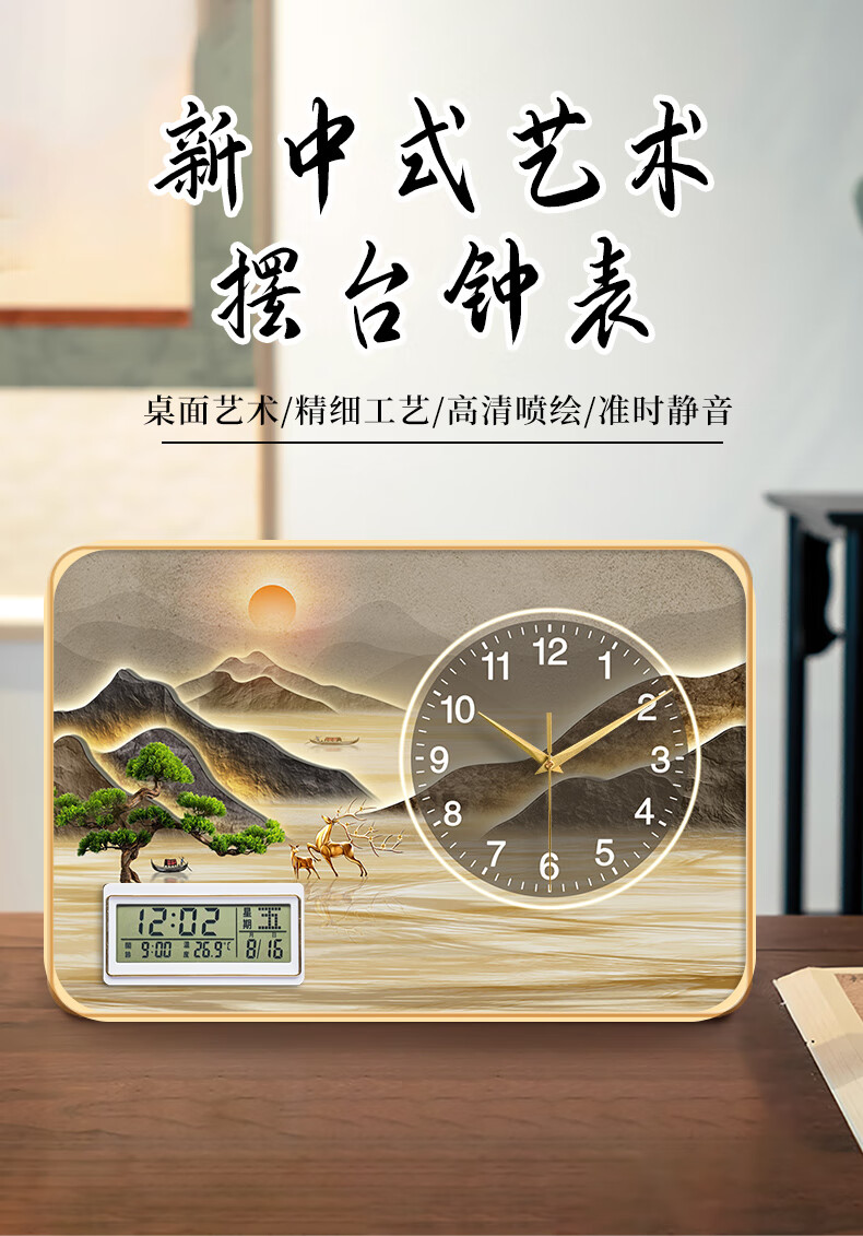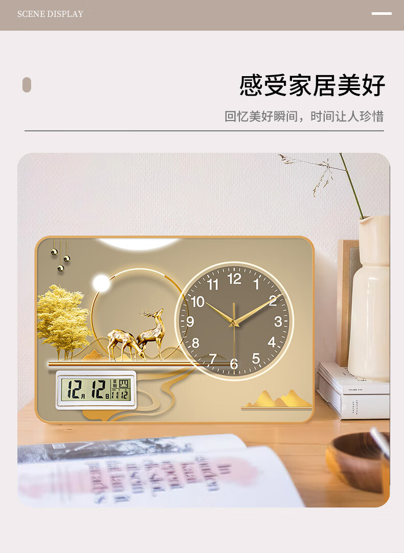 KODO Creative Simple Desktop Clock Office Ornaments Perpetual Calendar Bedroom Living Room Table Clock Silent Home Desktop Clock Alpine Flowing Water Alarm Clock 20*30cm No Specifications