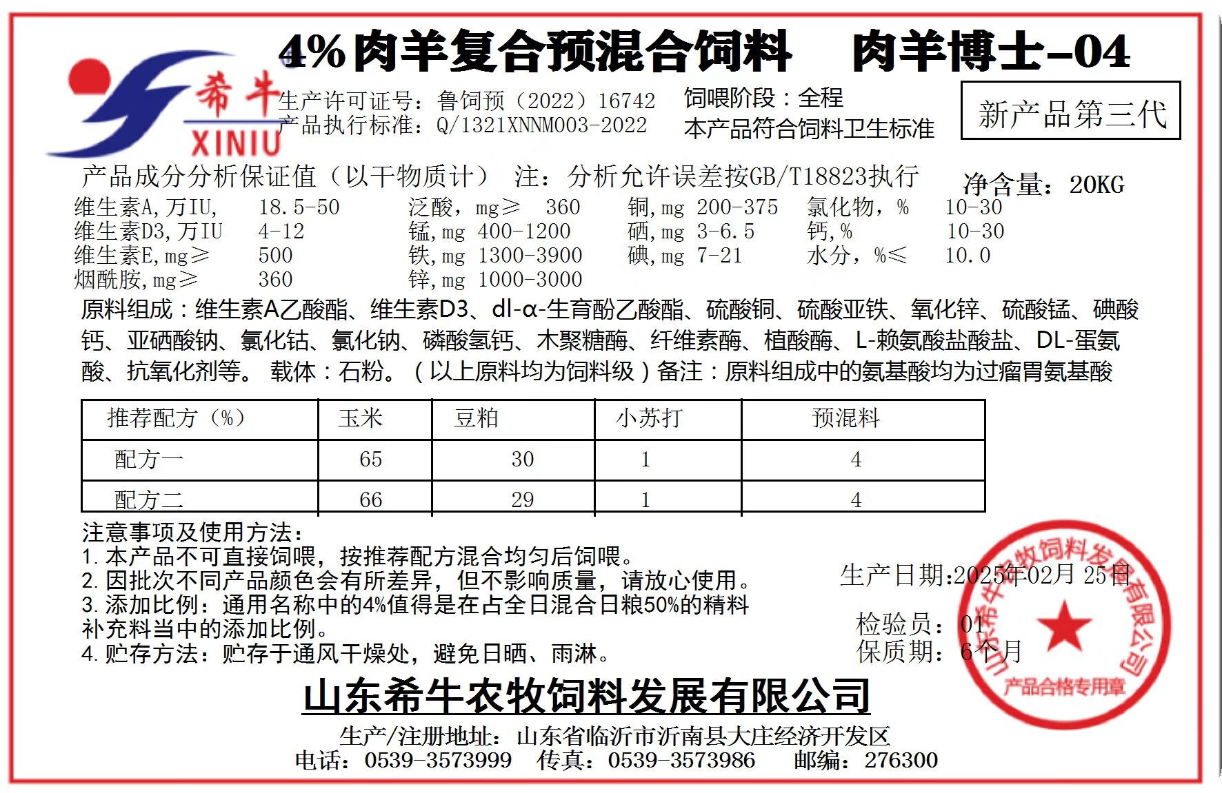 Xi cattle feed 4% mutton sheep premix fattening sheep premix mutton sheep special feed fattening period sheep feed 4% mutton sheep premix 1 bag/20KG