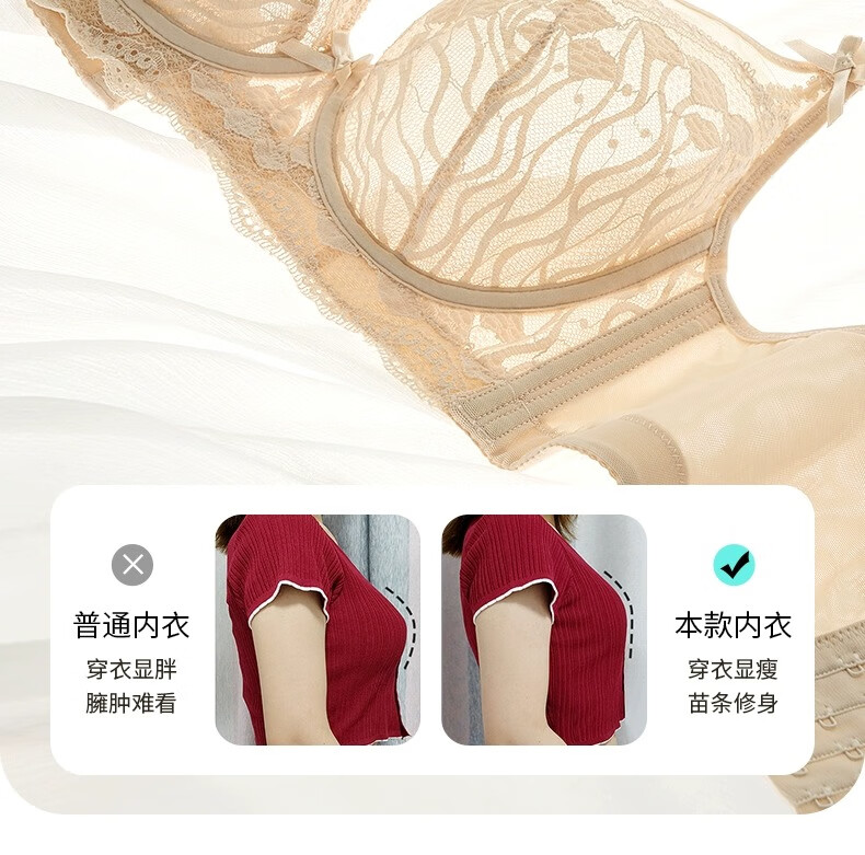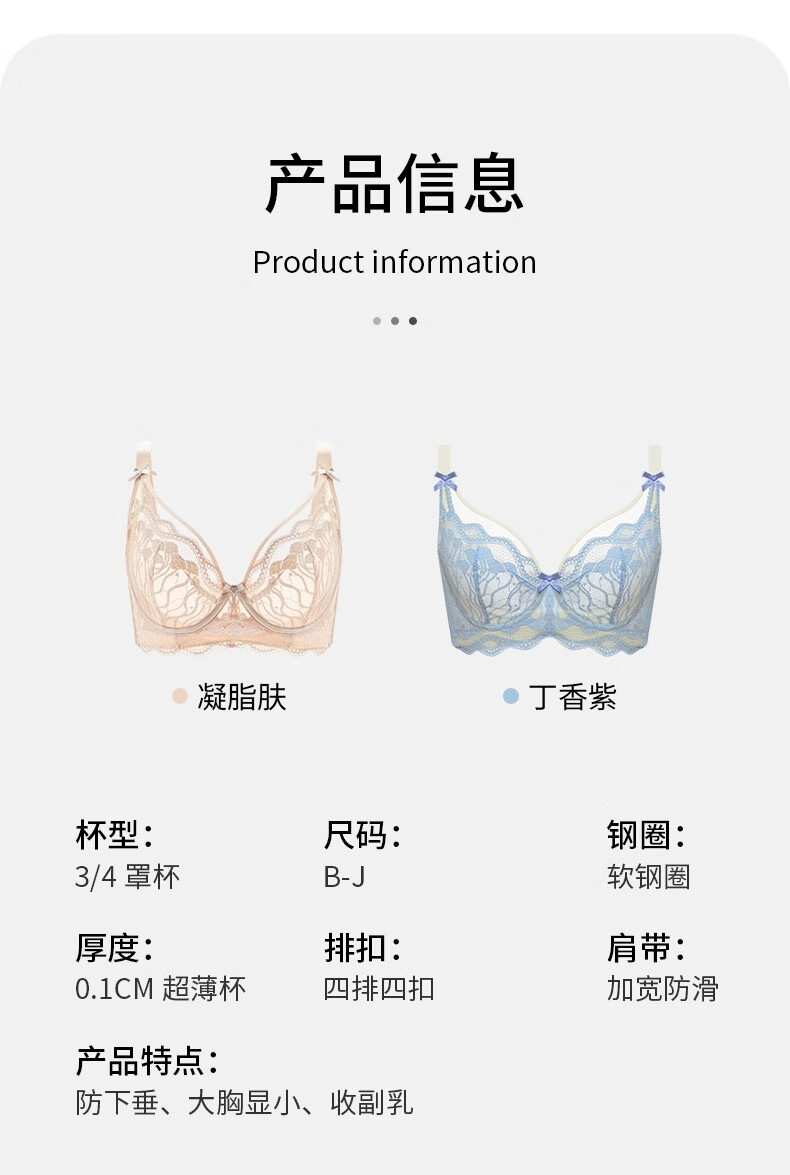 Sugar grain bra for women, ultra-thin, big breasts, large size, push up, support secondary breasts, anti-sagging, soft steel ring bra, lilac purple 70B